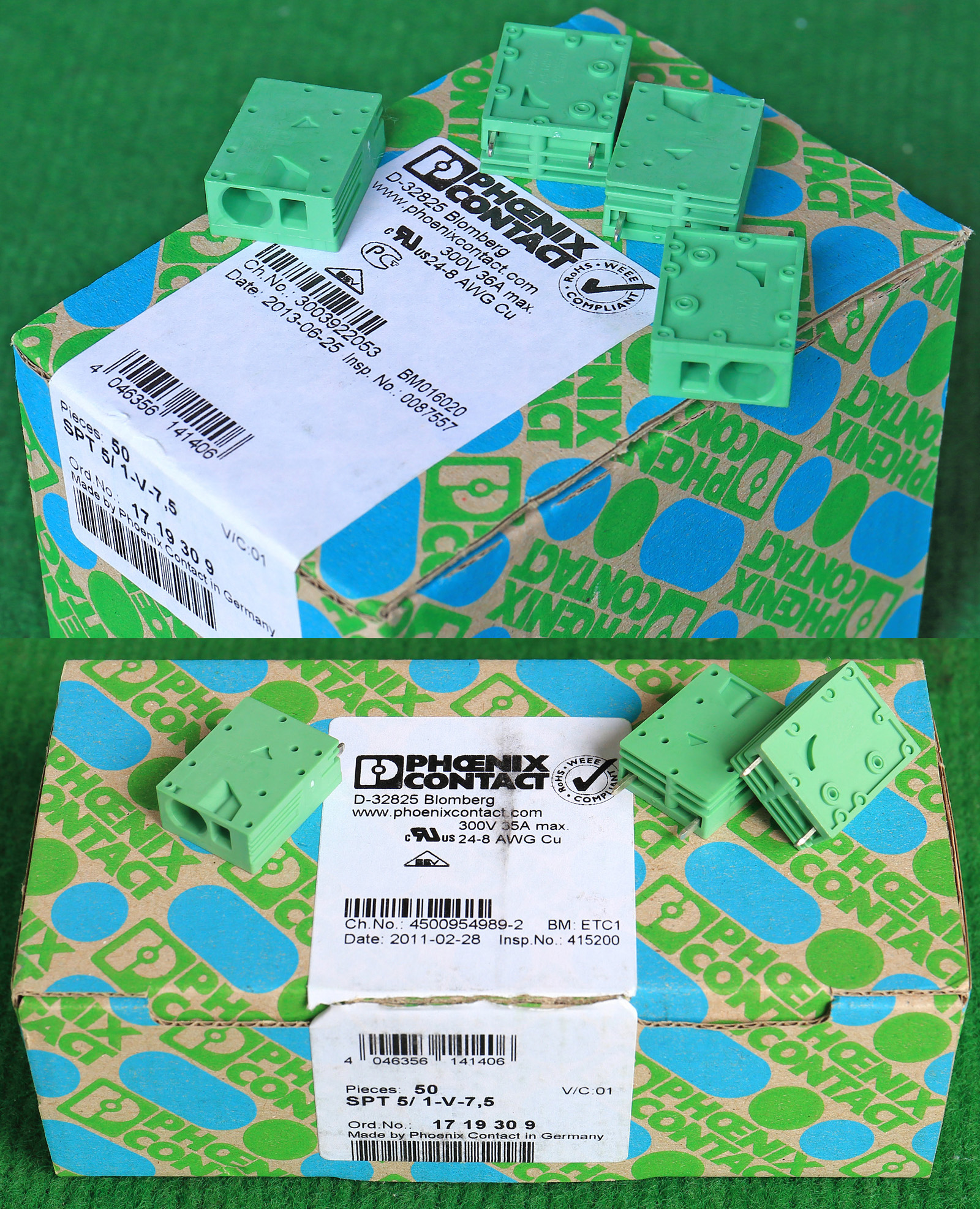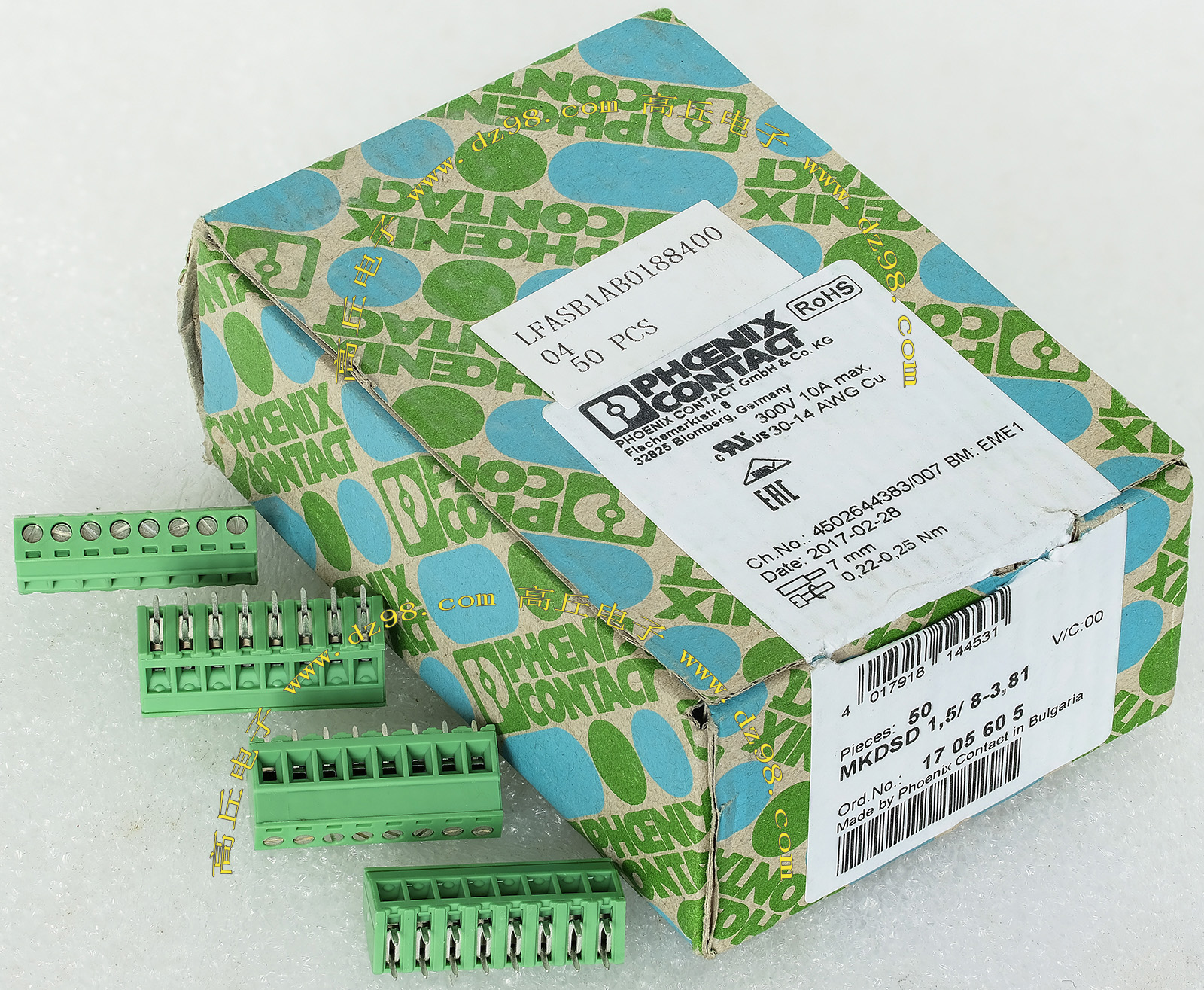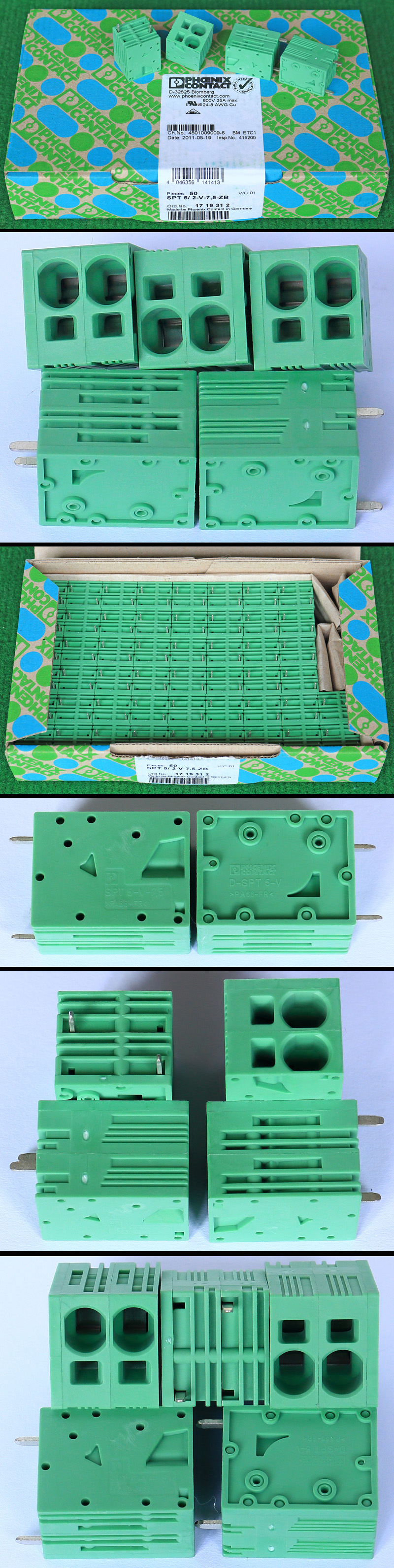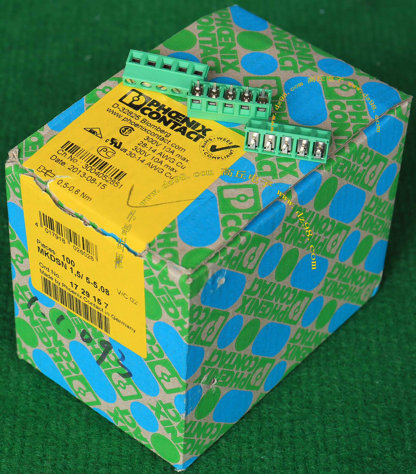 PHOENIX CONTACT菲尼克斯UPBV4/5 600V 30A 26-10AWG接线端子插头BQD595 数量450只 |