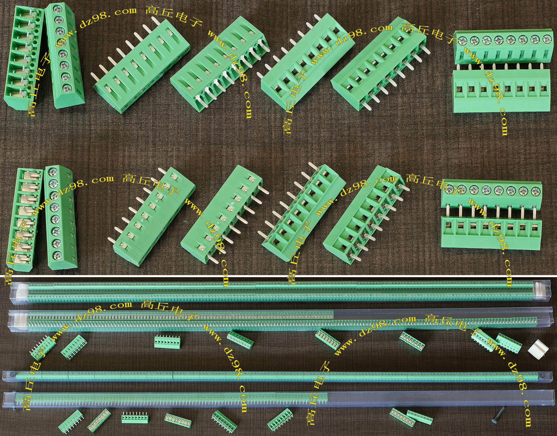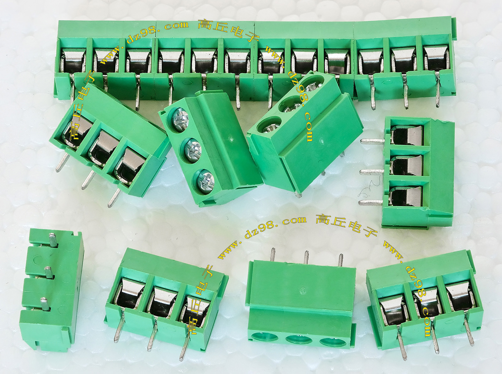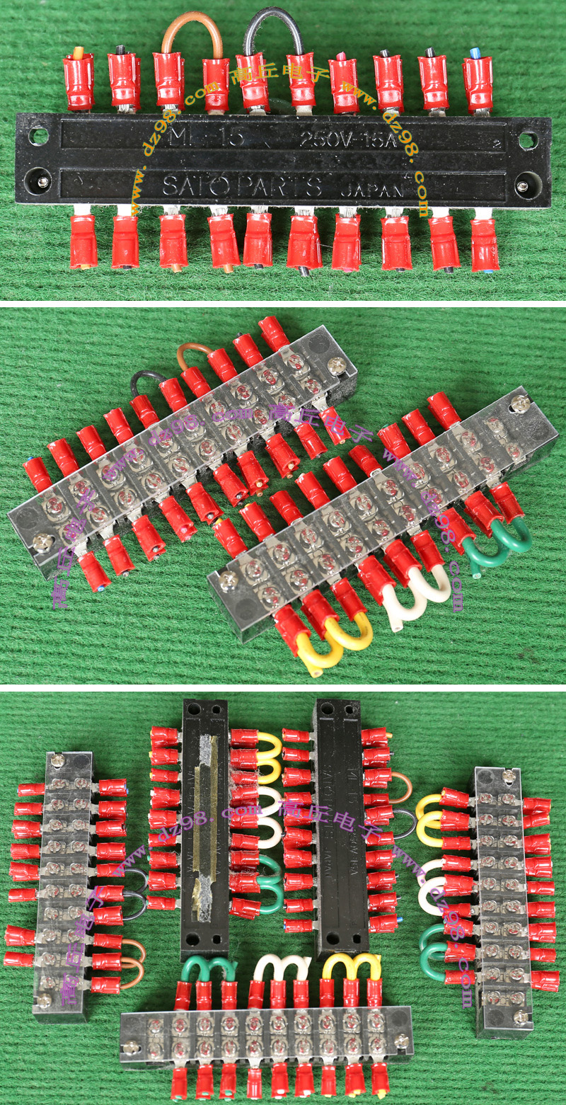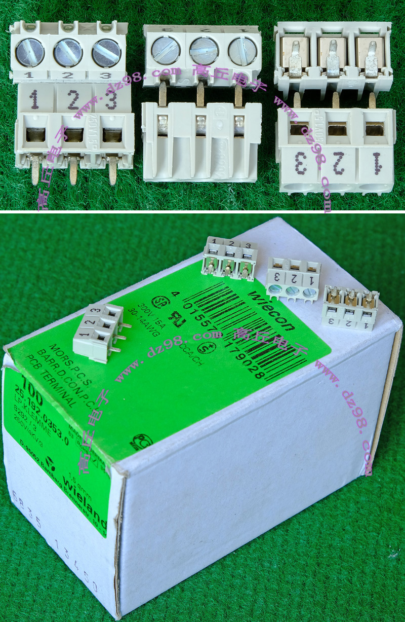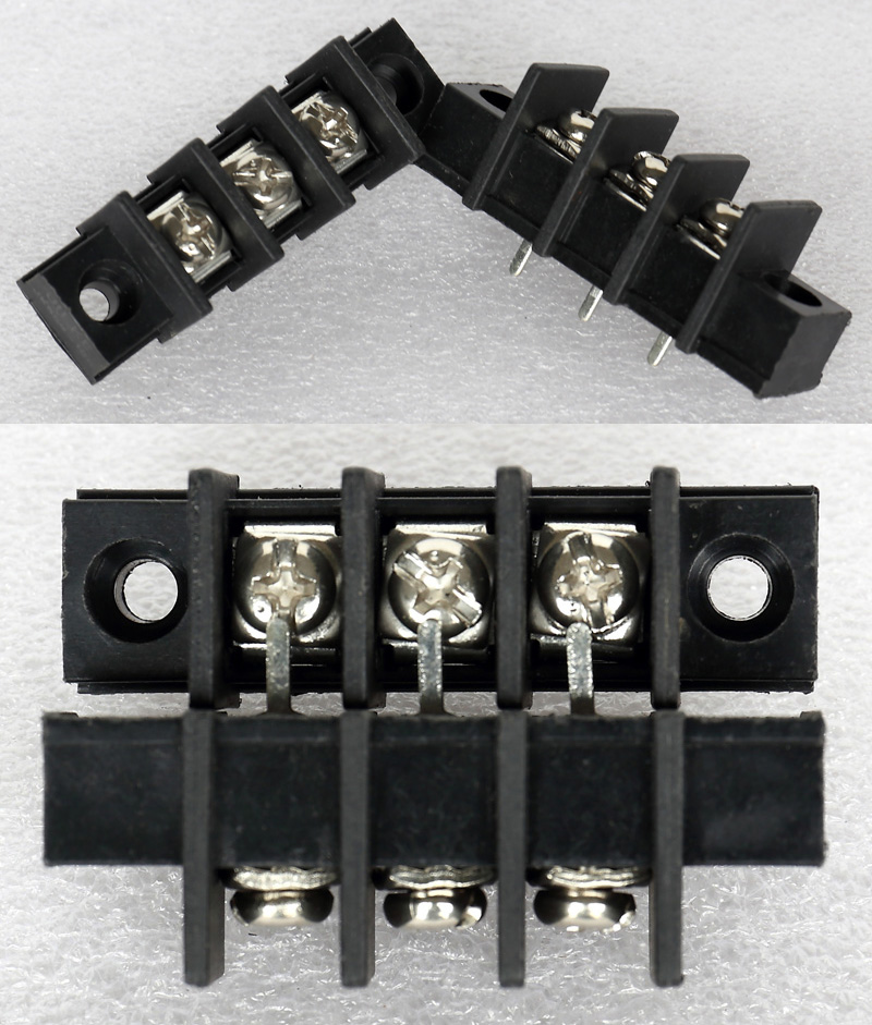 全新3档焊板式接线端子,脚距5.08mm。可以奇数无限组合延长,最大通过电流5A。 |