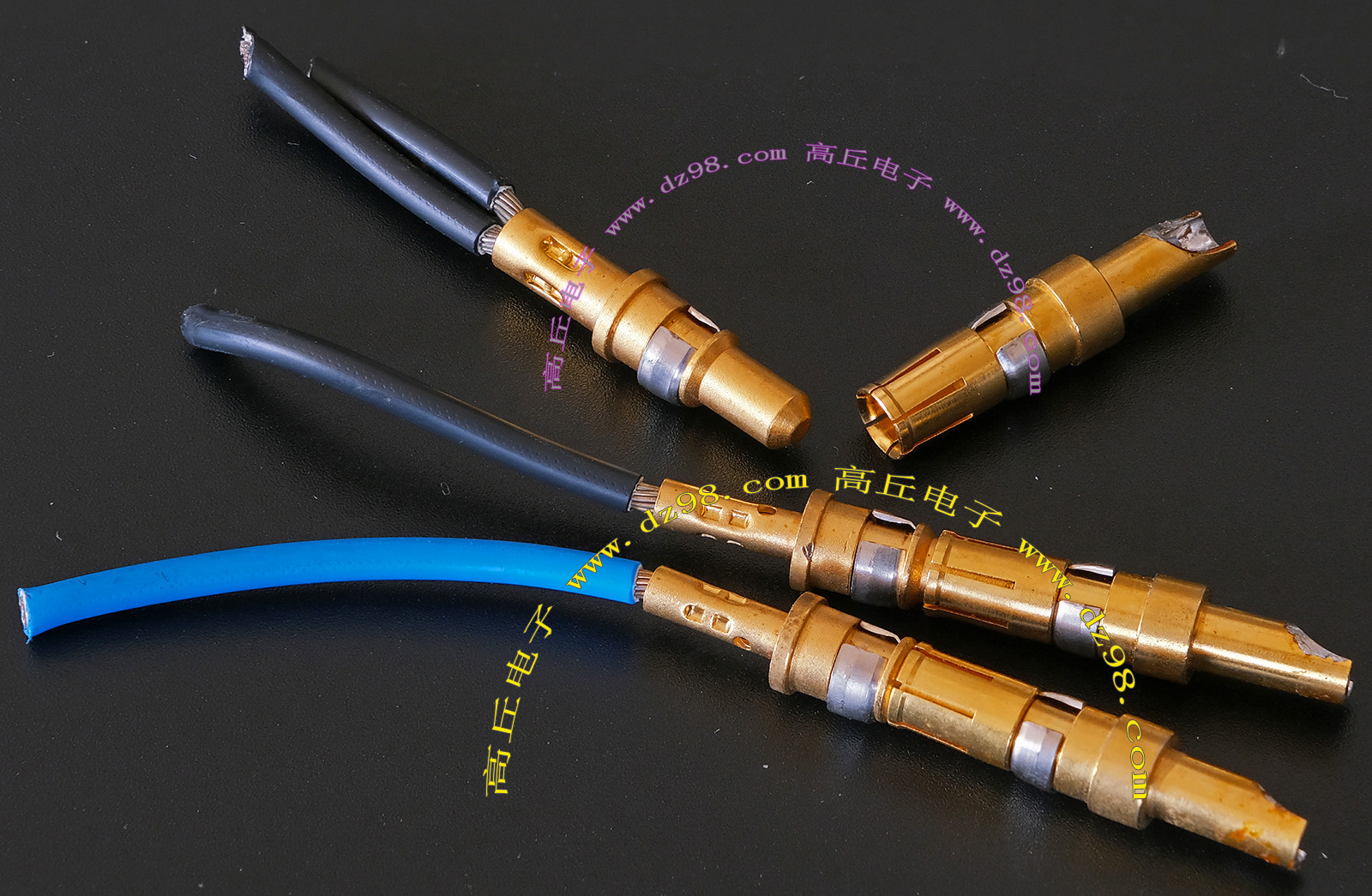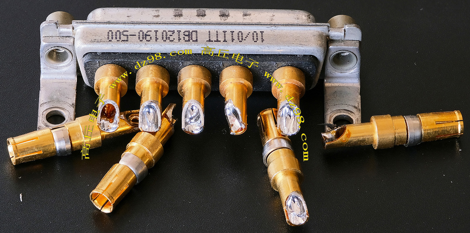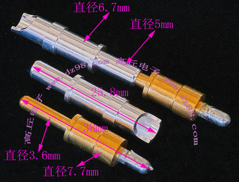 | 镀金公插针+镀银母插针 大电流连接件BQD569 | 实物参照图片,镀的是真金白银,尺寸看图片描述,估计50A电流,每一个公+母连接重量约13.8克。 |