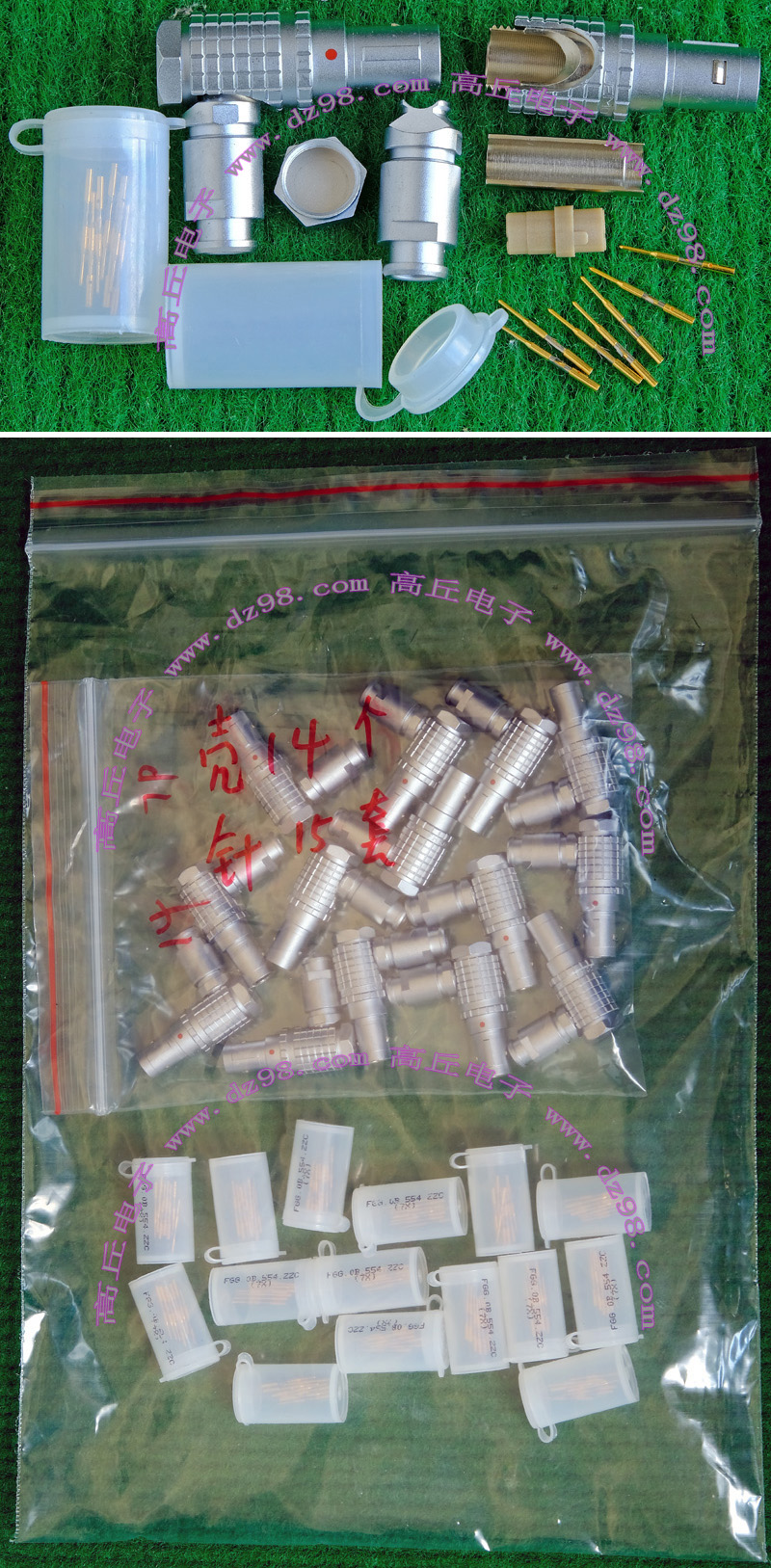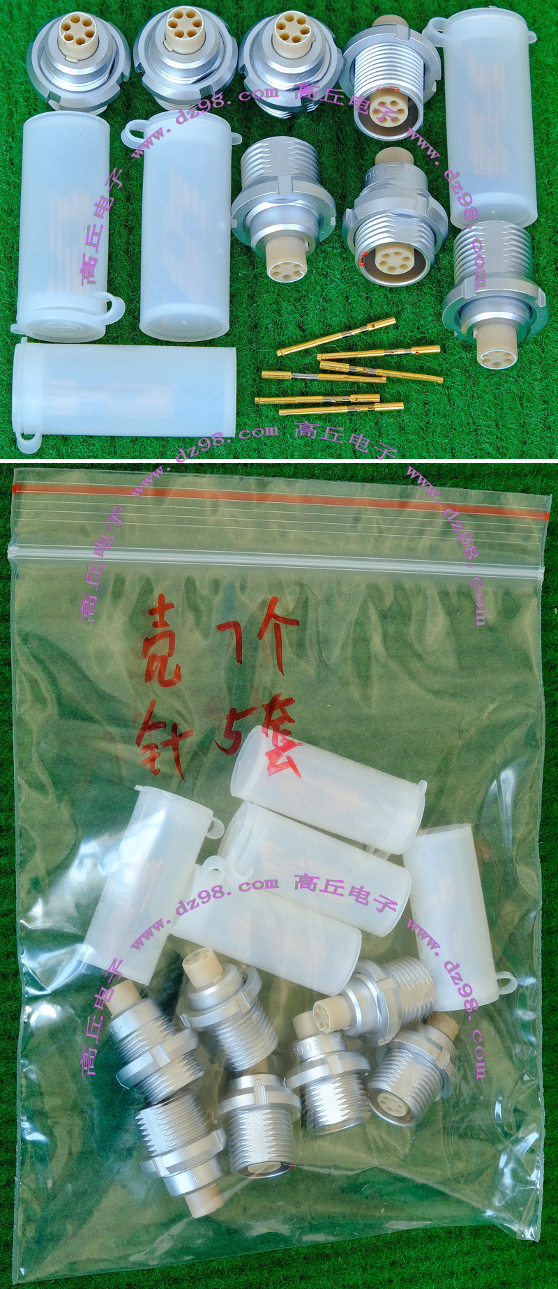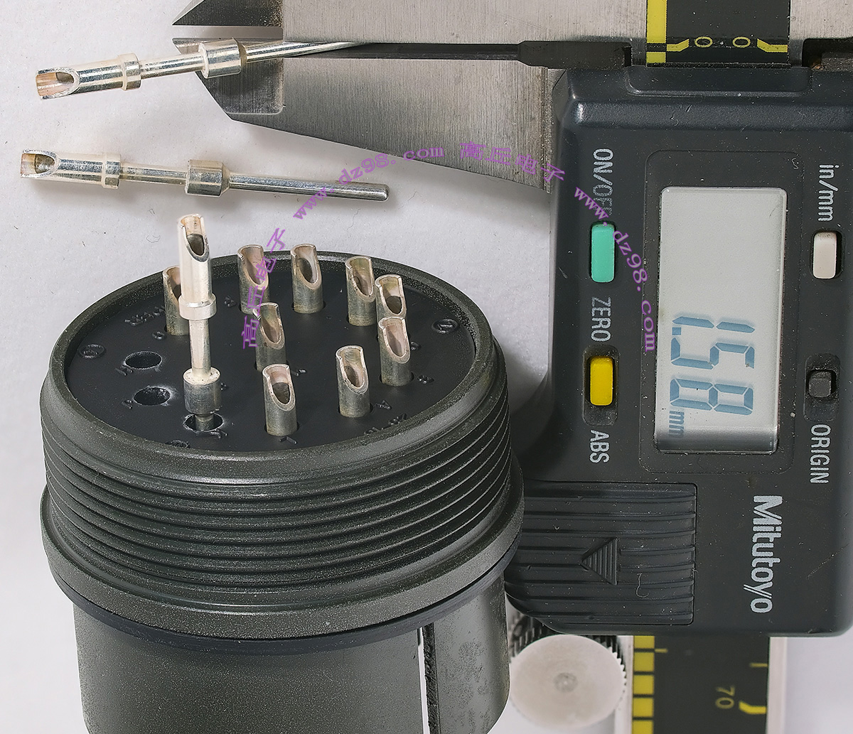 | 镀金公插针+镀银母插针 大电流连接件BQD569 | 实物参照图片,镀的是真金白银,尺寸看图片描述,估计50A电流,每一个公+母连接重量约13.8克。 |