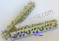 11挡600V-60A接线排,全新备件,标称数据;600V、60A,外形尺寸;长度238mm,宽度55mm,高度36mm,重量550克。 |