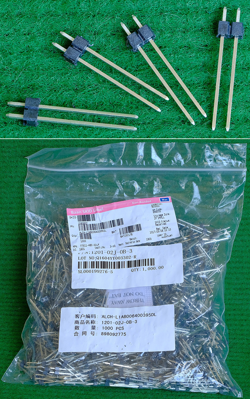全新6针线路板连接针器,当线路板元件过于密集安装面积不够时,可以利用本连接器,将部分元件连接到小板上。 |