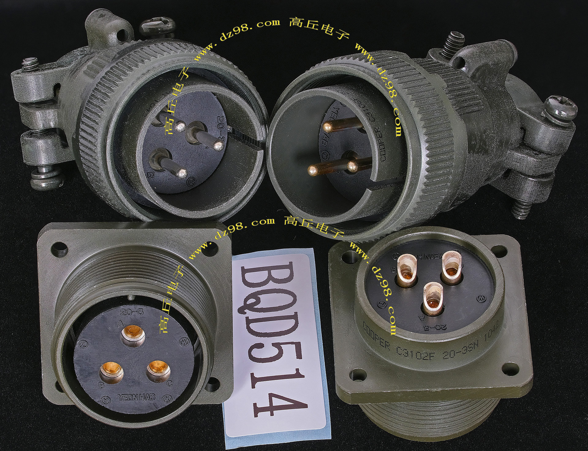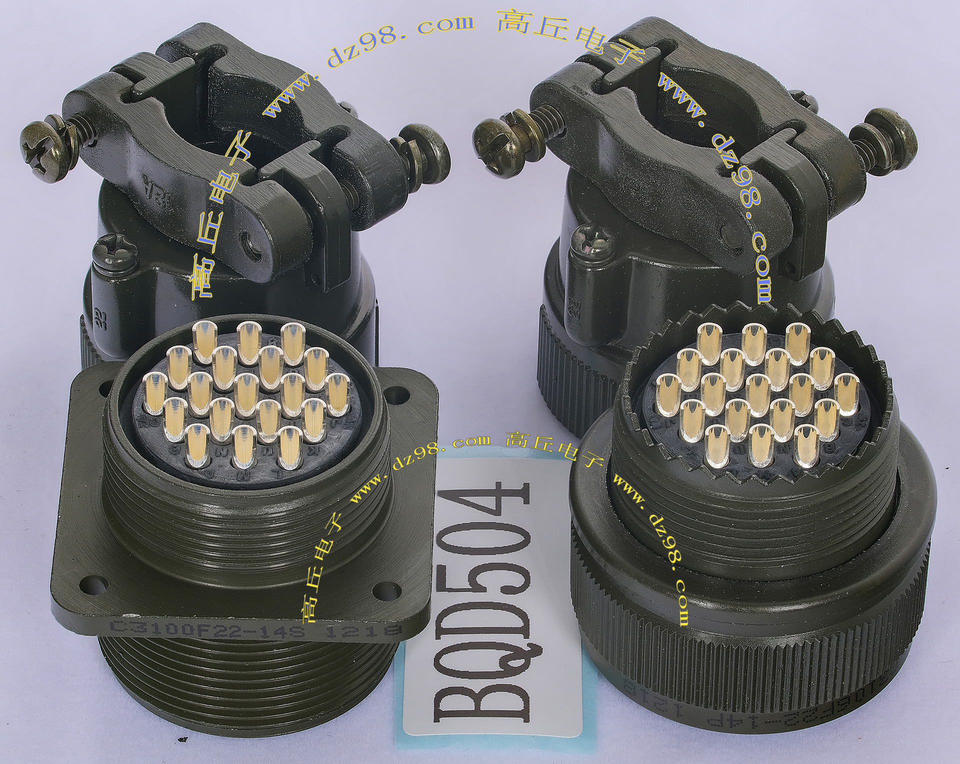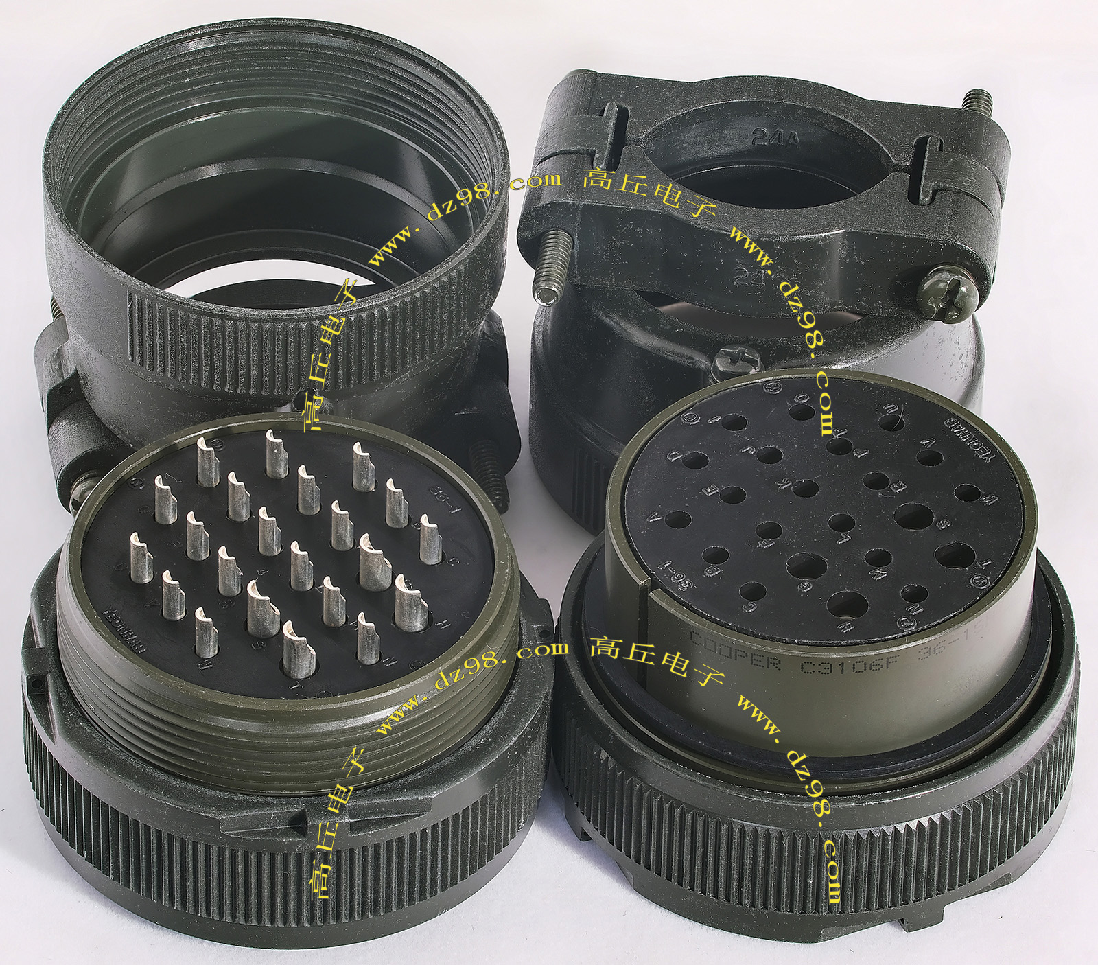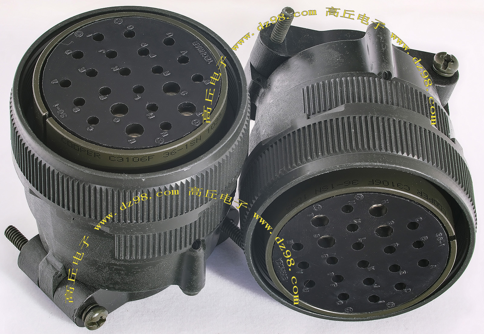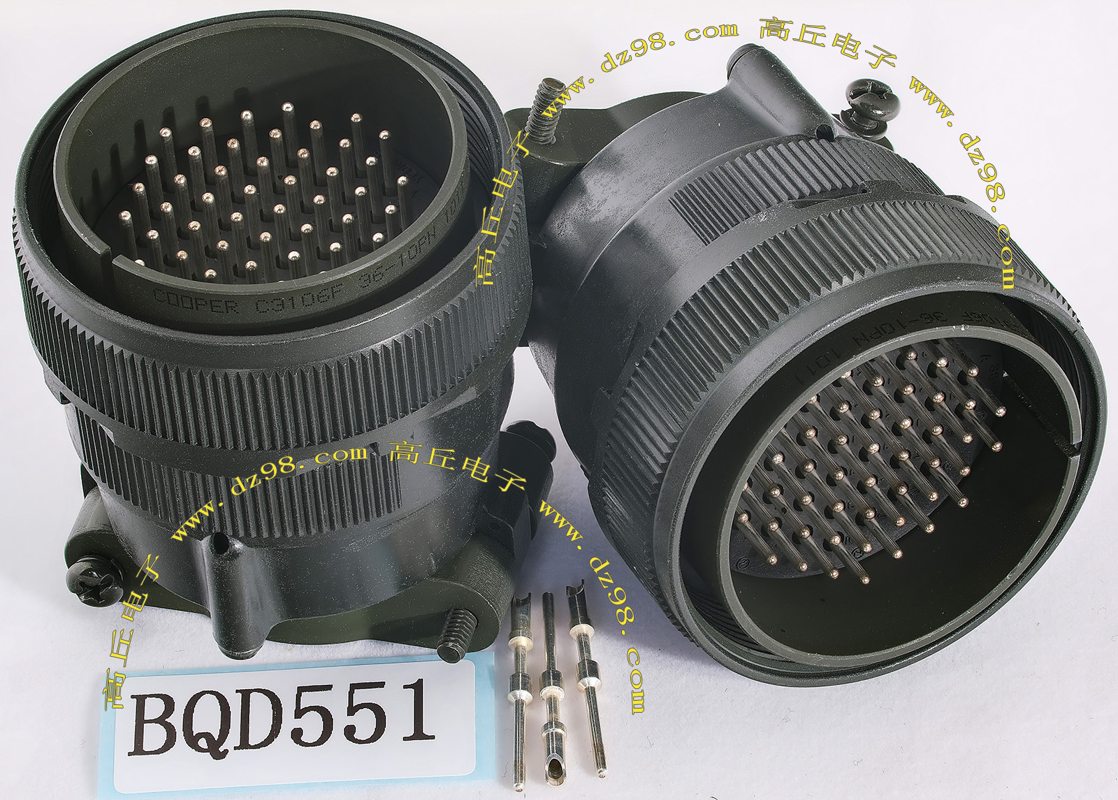 | COOPER C3106F36-1SN 22P航空插头母插头连接器BQD550 | 全新进口备件,做工精致,军品级插头,共22P(4大P+18小P),可拆镀银电芯用,与商品编号BQD549、BQD549、BQD551公插头的镀银导电芯 对插配合使用,铝合金外壳,重量290克。 |