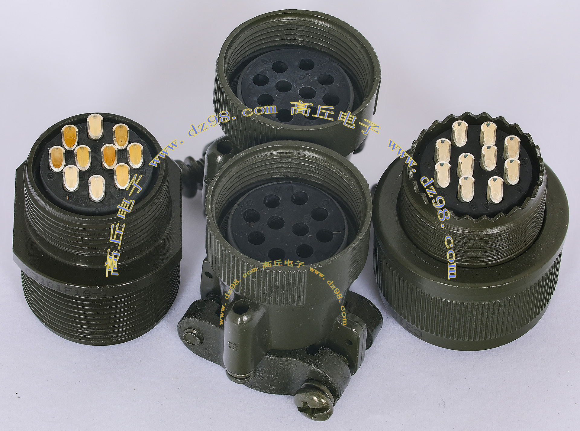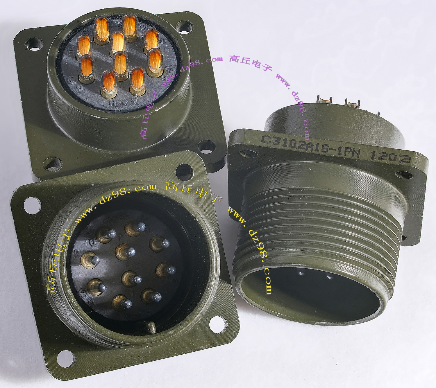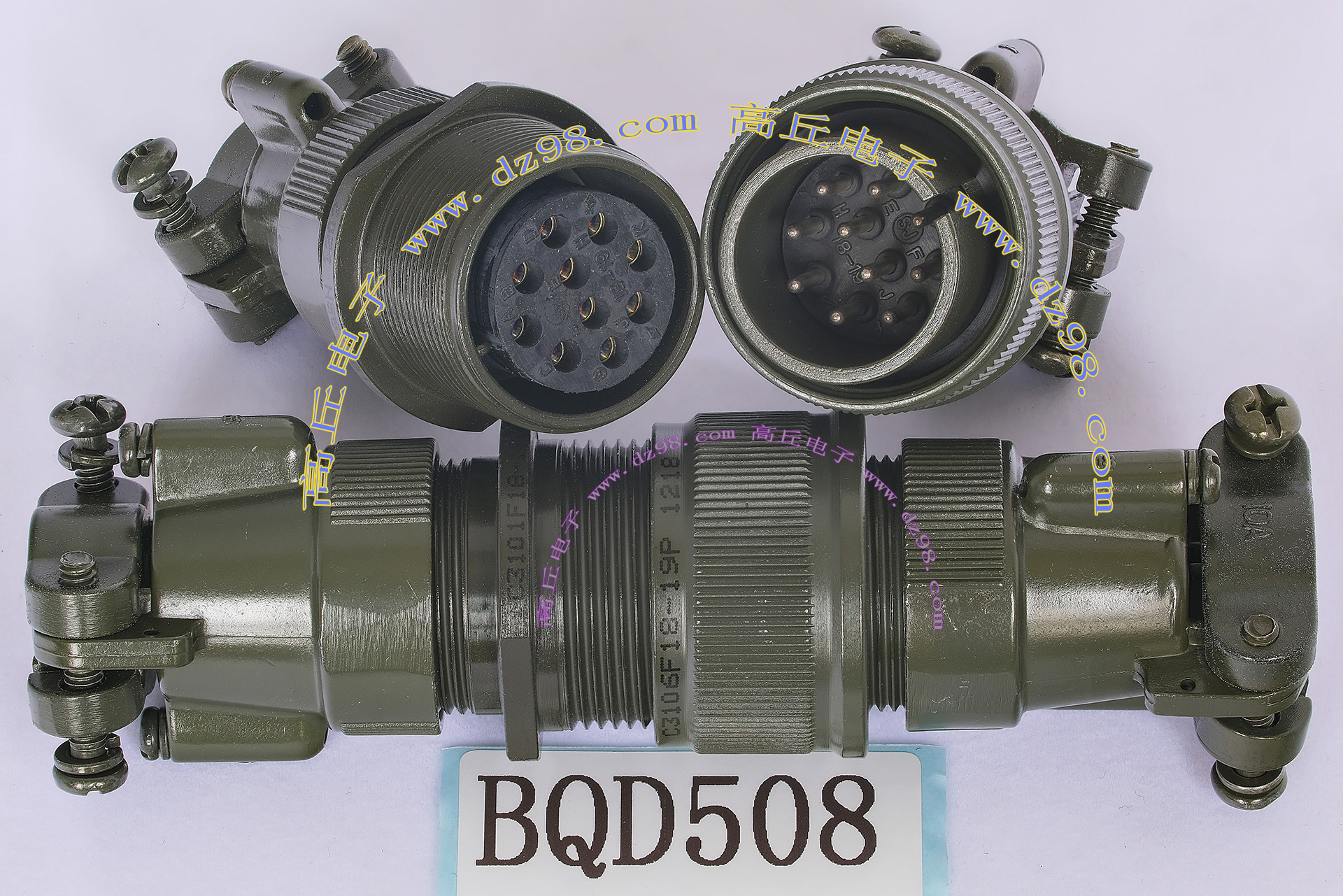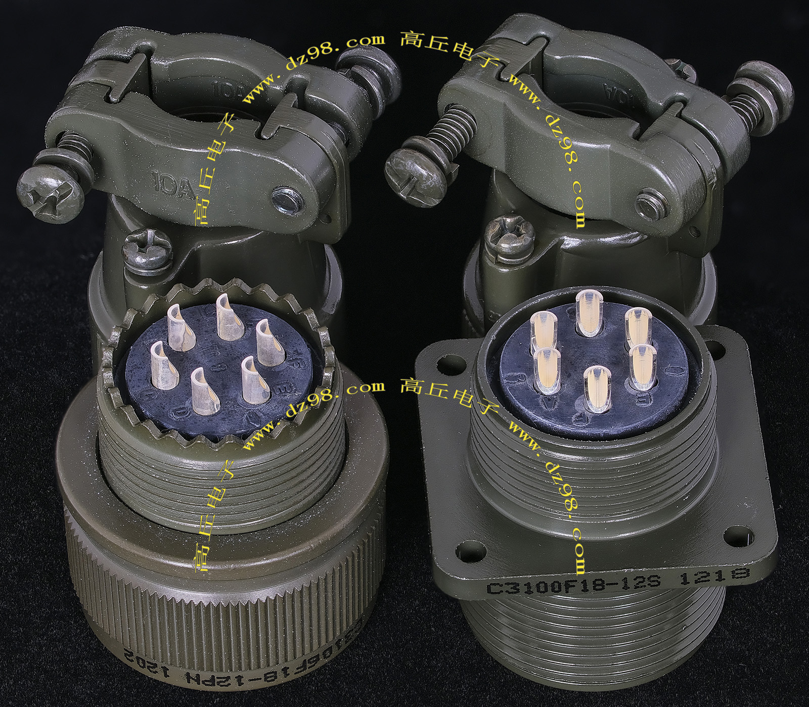 | C3102A18-1PN 10P航空插座连接器BQD559 | 全新进口备件,做工精致,军品级插头与插座,共10P,每芯承受电流估计5-8A,铝合金外壳,镀银导电芯,重量31克,安装开孔直径25.5mm,安装螺丝孔距离27mm。 |