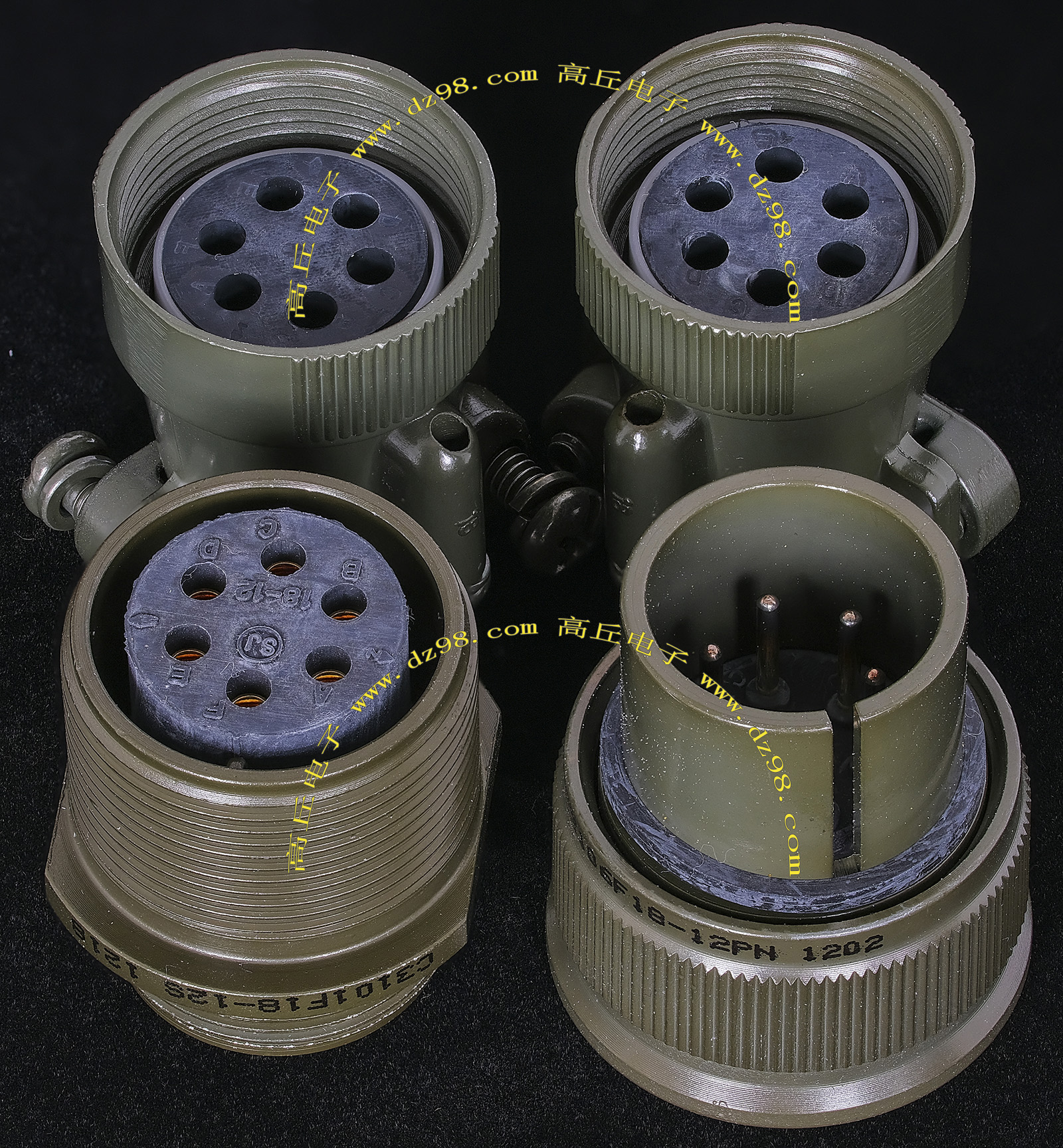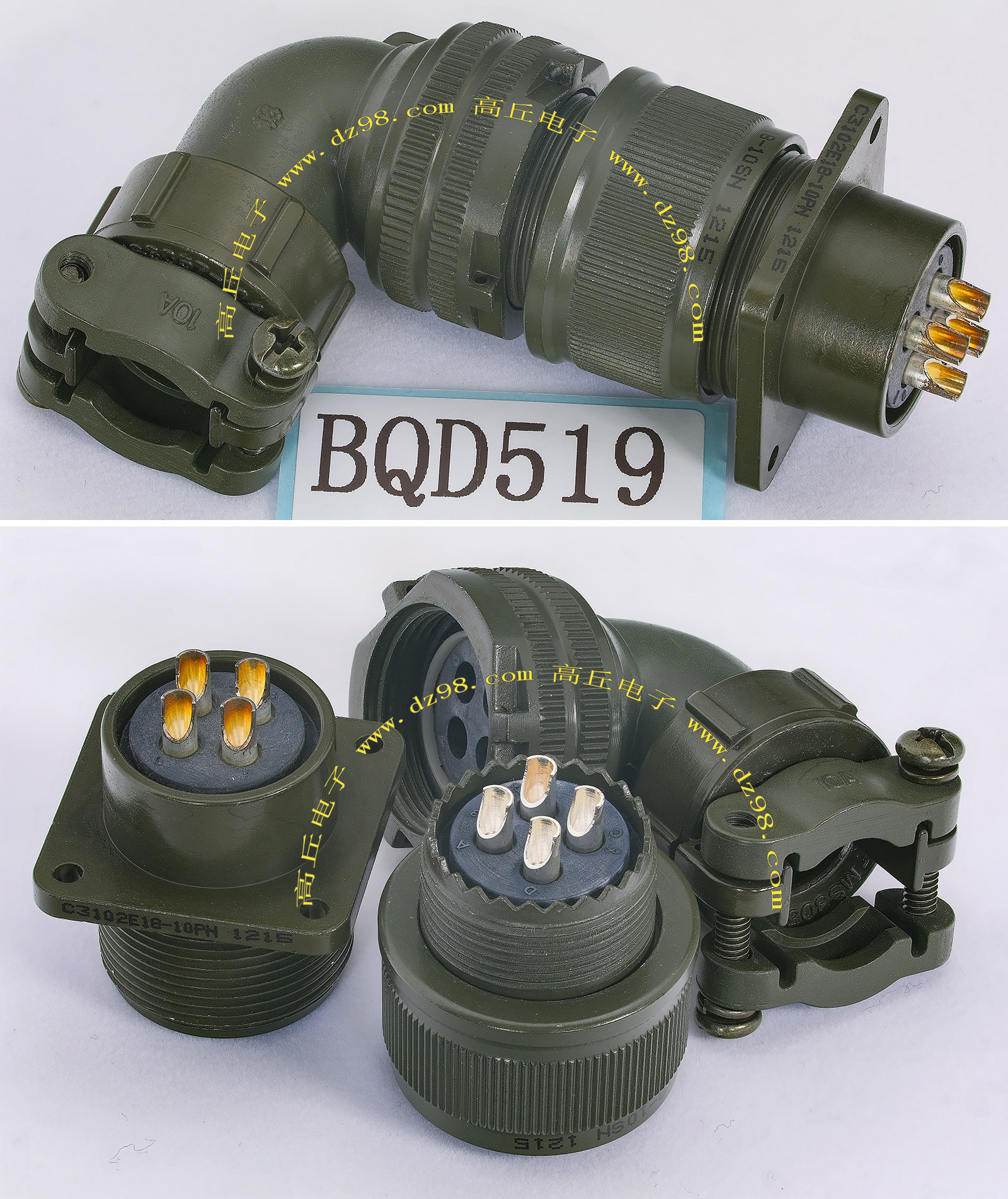 | C3108E18-10SN C3102E18-10PN 4P航空插头插座连接器BQD519 | 全新进口备件,做工精致,军品级插头与插座,共4P,每芯承受电流估计10-15A,铝合金外壳,镀银导电芯,重量143克,安装开孔直径25.5mm,安装螺丝孔距离27mm。 |