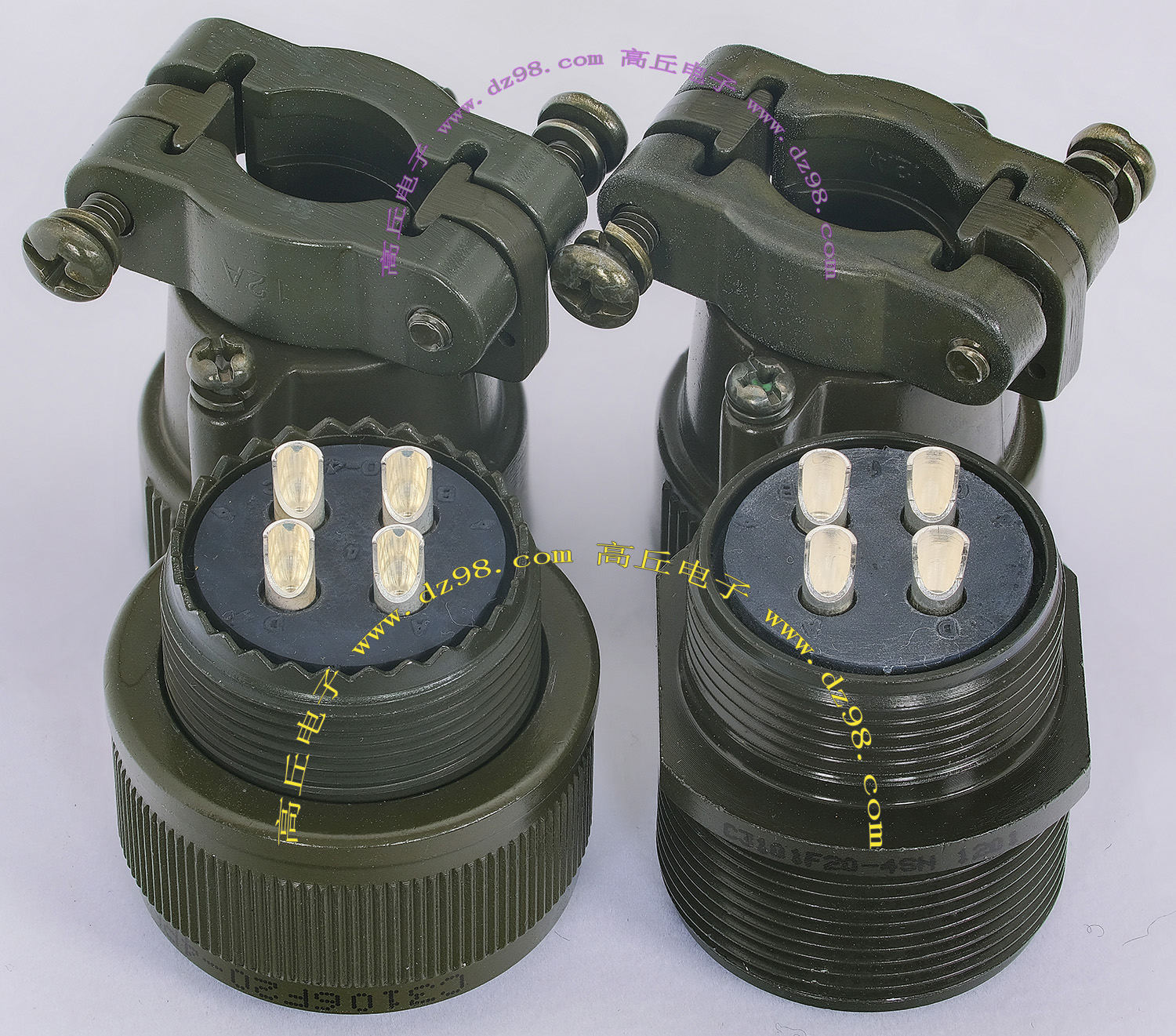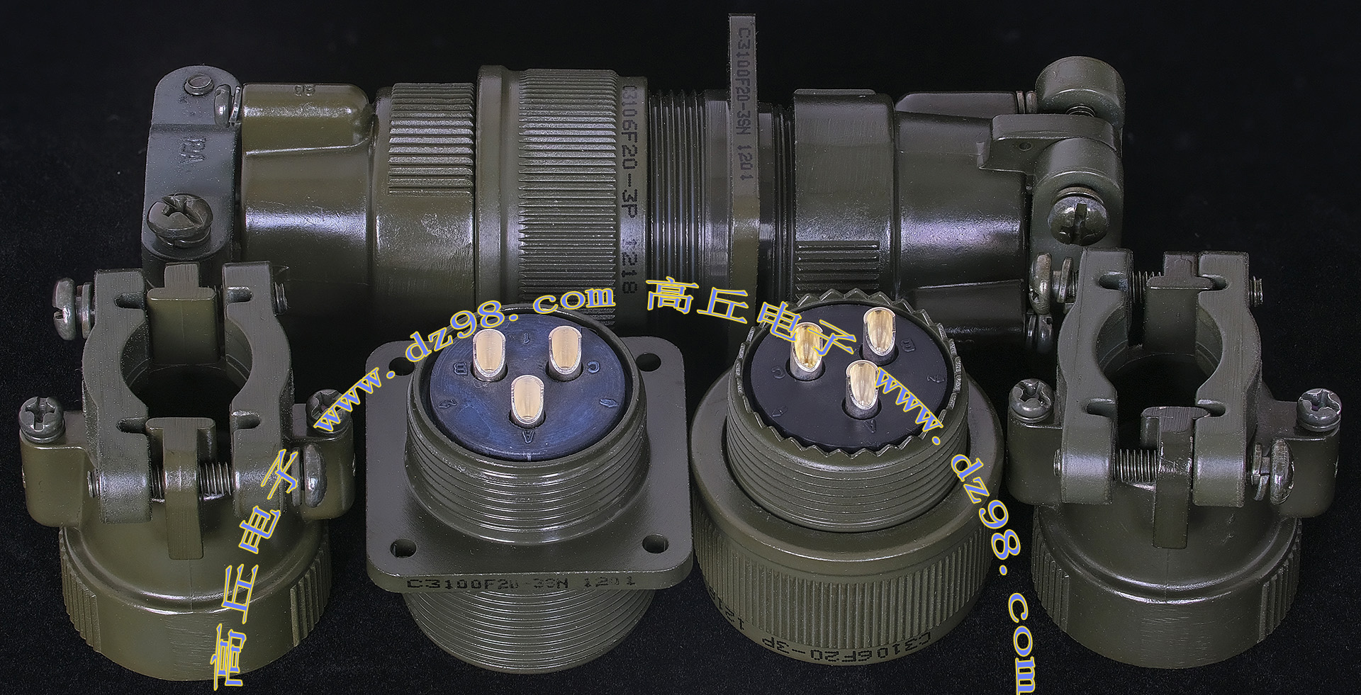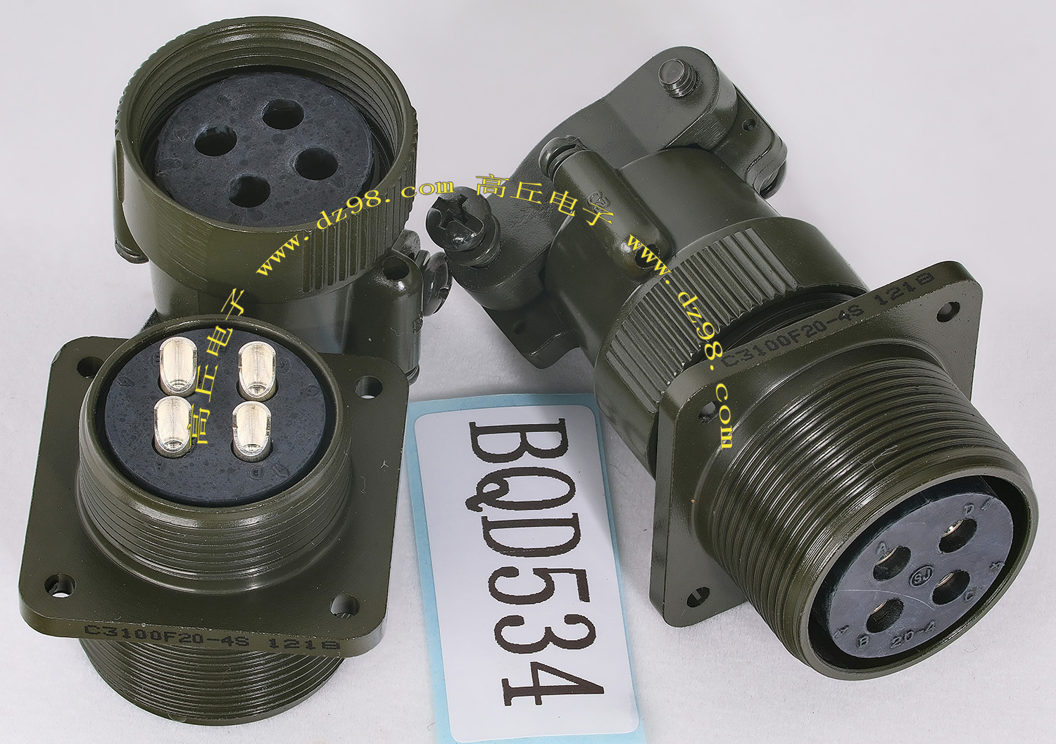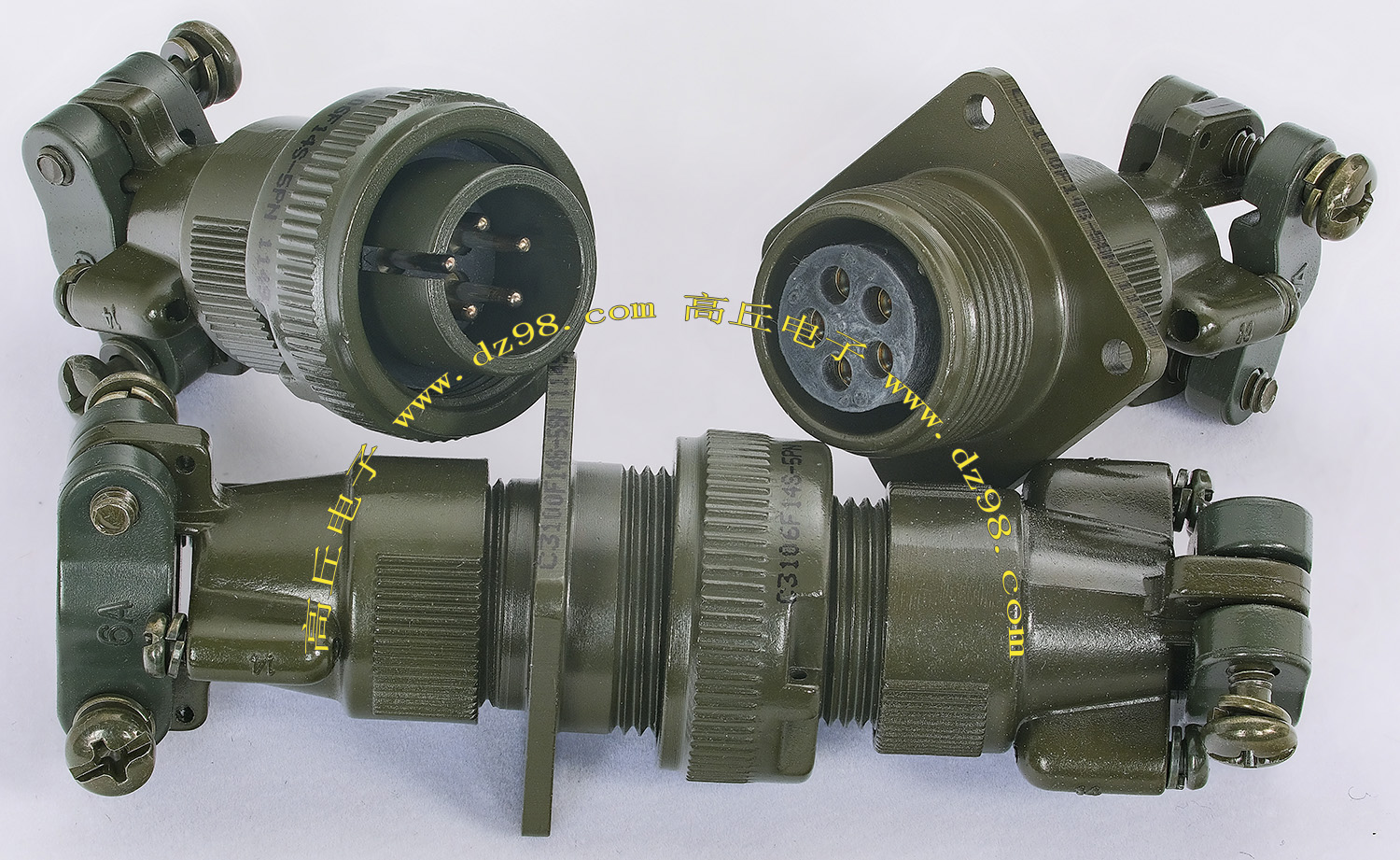 | C3100F20-4S 4P航空插头插座连接器BQD534 | 全新进口备件,做工精致,军品级插头与插座,共4P,每芯承受电流估计10-15A,铝合金外壳,镀银导电芯,重量92克,安装开孔直径29mm,安装螺丝孔距离29mm。 |