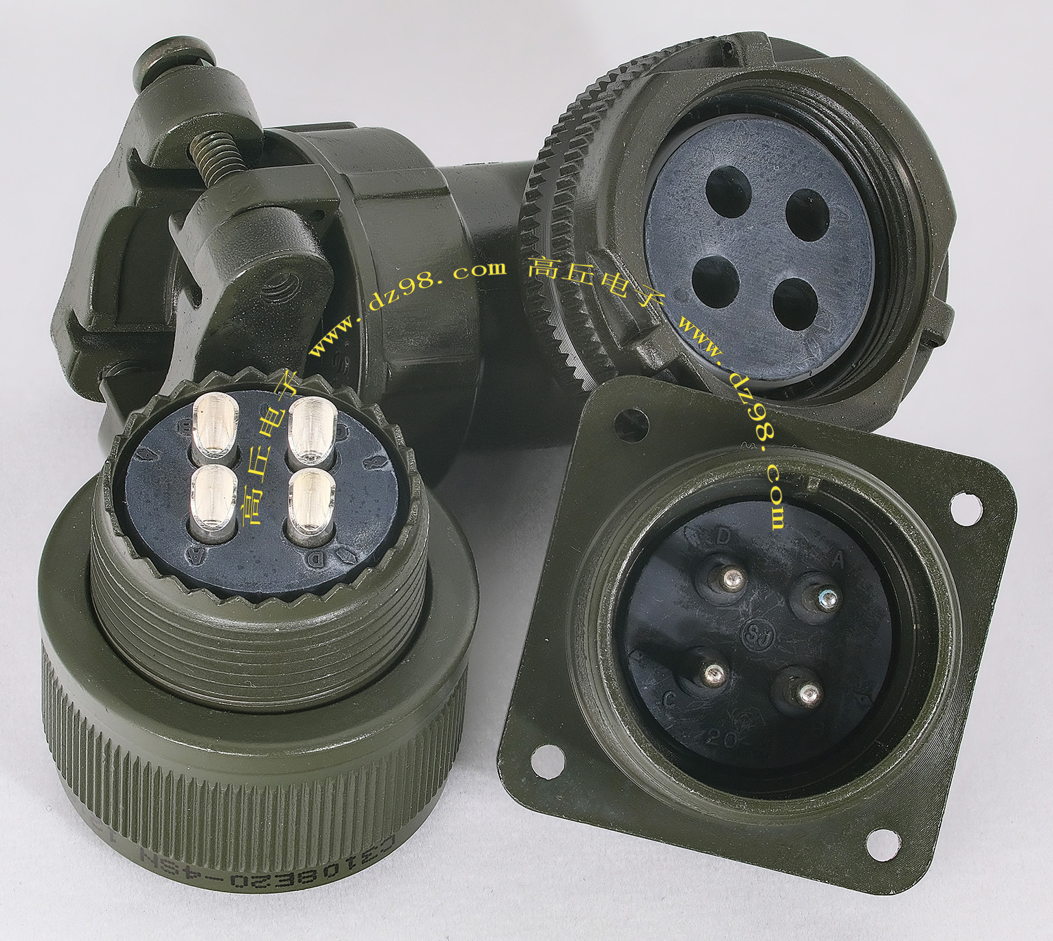 | C3108E20-4SN C3102E20-4PN 4P航空插头插座连接器BQD518 | 全新进口备件,做工精致,军品级插头与插座,共4P,每芯承受电流估计10-15A,铝合金外壳,镀银导电芯,重量176克,安装开孔直径29mm,安装螺丝孔距离29mm。 |