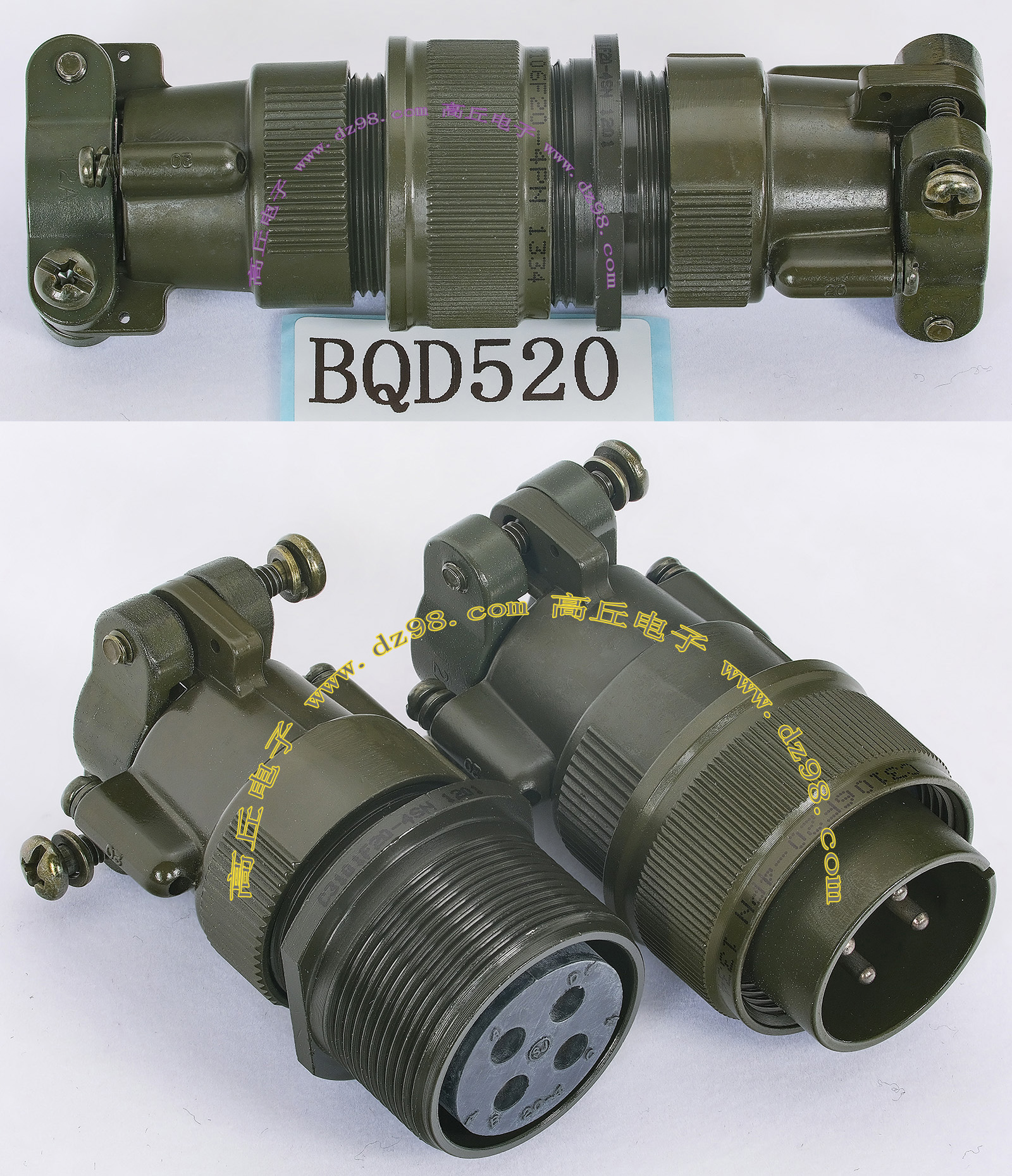 | C3106F20-4PN C3101F20-4SN 4P航空插头插座空中连接器BQD520 | 全新进口备件,做工精致,军品级插头与插座,共4P,每芯承受电流估计10-15A,铝合金外壳,镀银导电芯,重量176克。 |