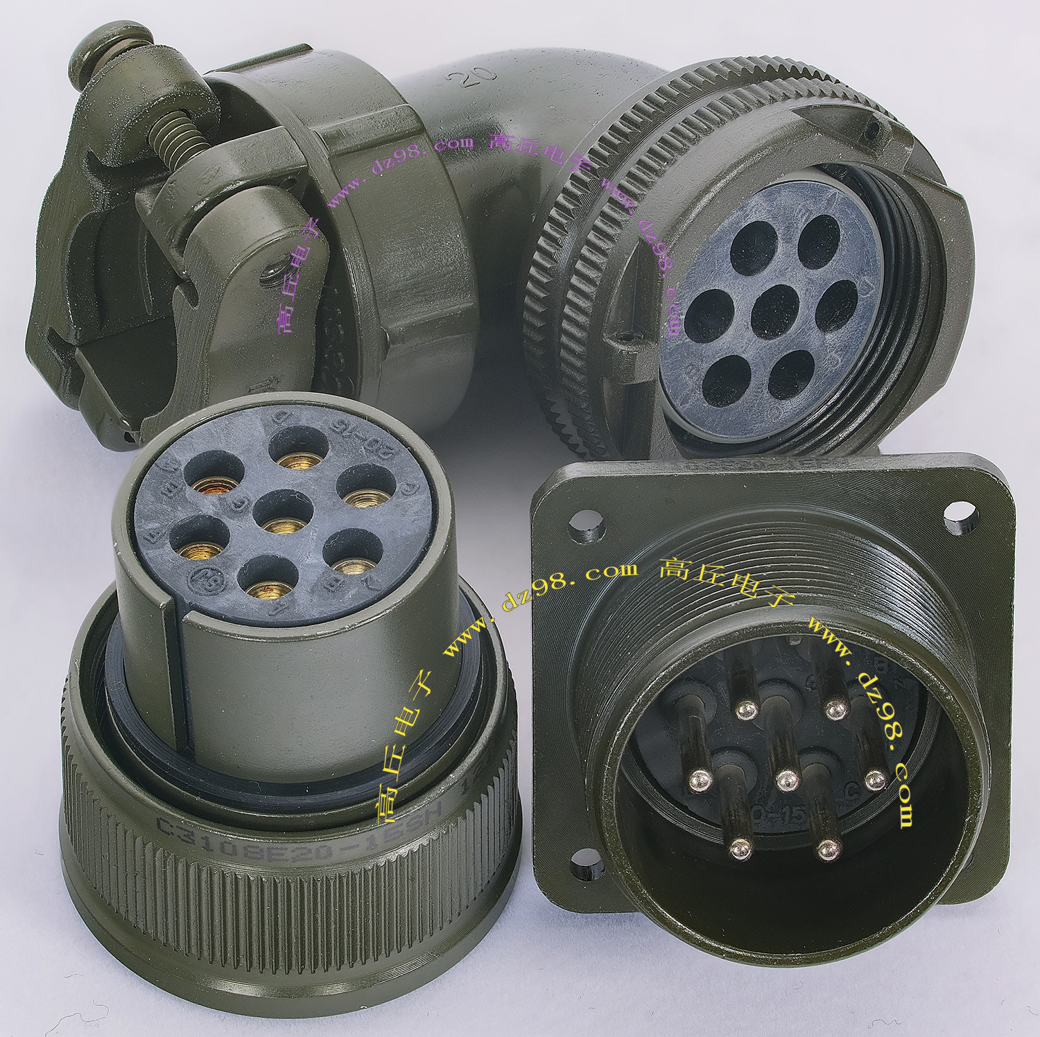 | C3108E20-15SN C3102E20-15PN 7P航空插头插座连接器BQD521 | 全新进口备件,做工精致,军品级插头与插座,共7P,每芯承受电流估计10-15A,铝合金外壳,镀银导电芯,重量188克,安装开孔直径29mm,安装螺丝孔距离29mm。 |