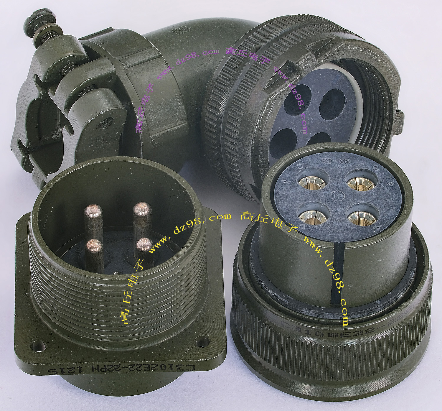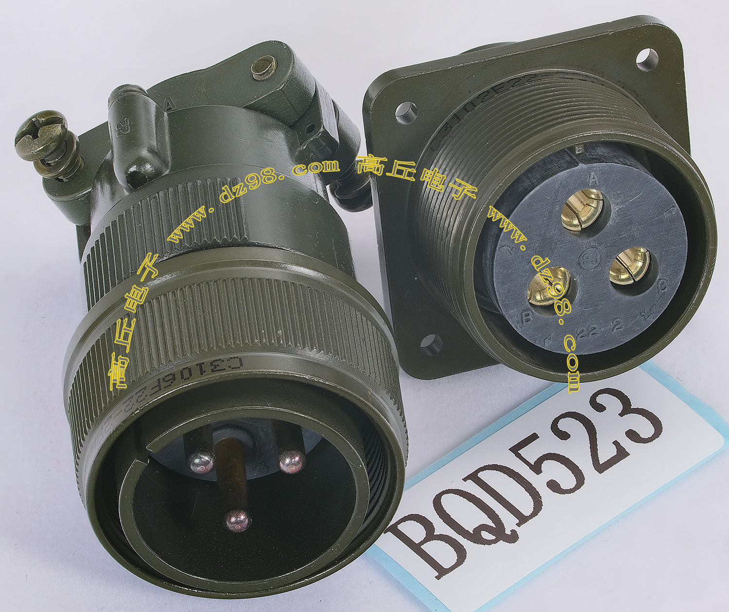| C3108E22-22SN C3102E22-22PN 4P航空插头插座连接器BQD524 | 全新进口备件,做工精致,军品级插头与插座,共4P,每芯承受电流估计25-35A,铝合金外壳,镀银导电芯,重量222克,安装开孔直径32mm,安装螺丝孔距离32mm。 |