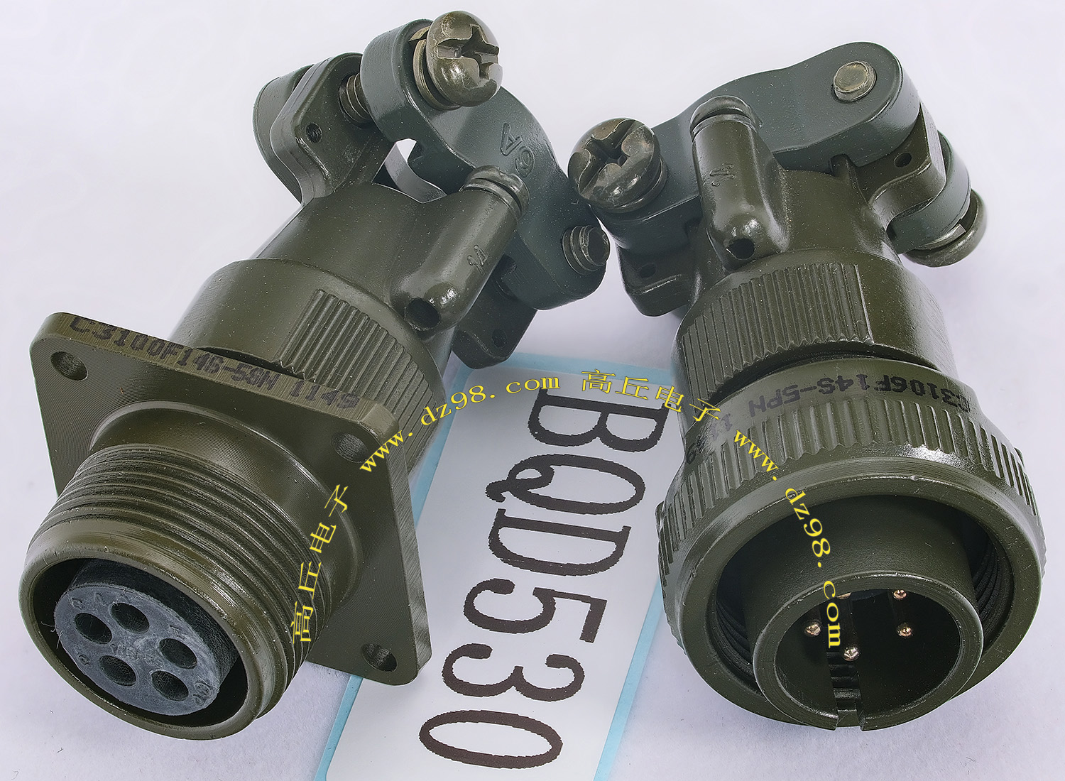 | C3100F16S-5PN C3100F14S-5SN 5P航空插头插座连接器BQD530 | 全新进口备件,做工精致,军品级插头与插座,共5P,每芯承受电流估计5-8A,铝合金外壳,镀银导电芯,重量84克,安装开孔直径19mm,安装螺丝孔距离24mm。 |