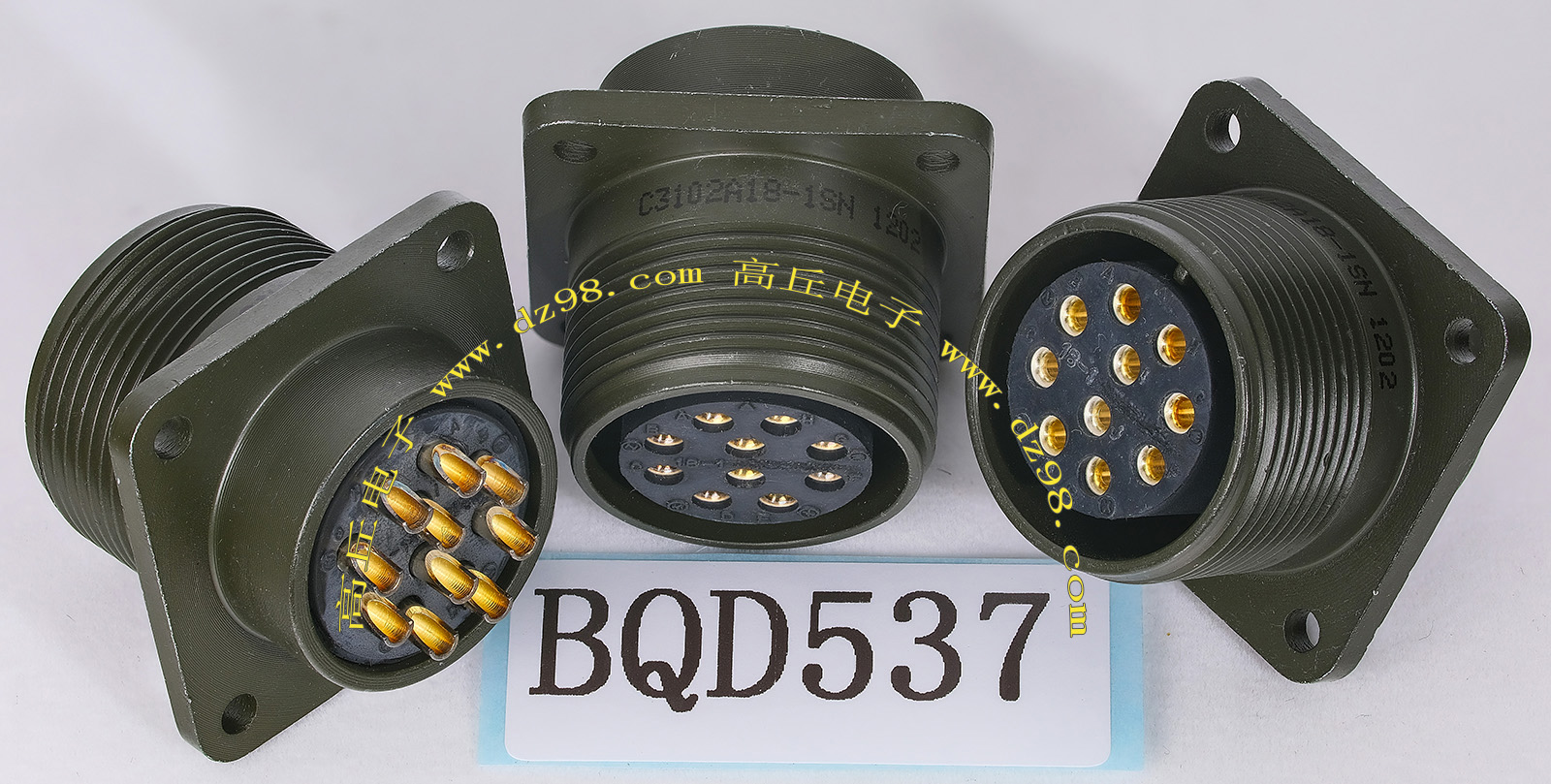 | C3102A18-1SN 10P航空插座连接器BQD537 | 全新进口备件,做工精致,军品级插头与插座,共10P,每芯承受电流估计5-8A,铝合金外壳,镀银导电芯,重量40克,安装开孔直径25.5mm,安装螺丝孔距离27mm。 |