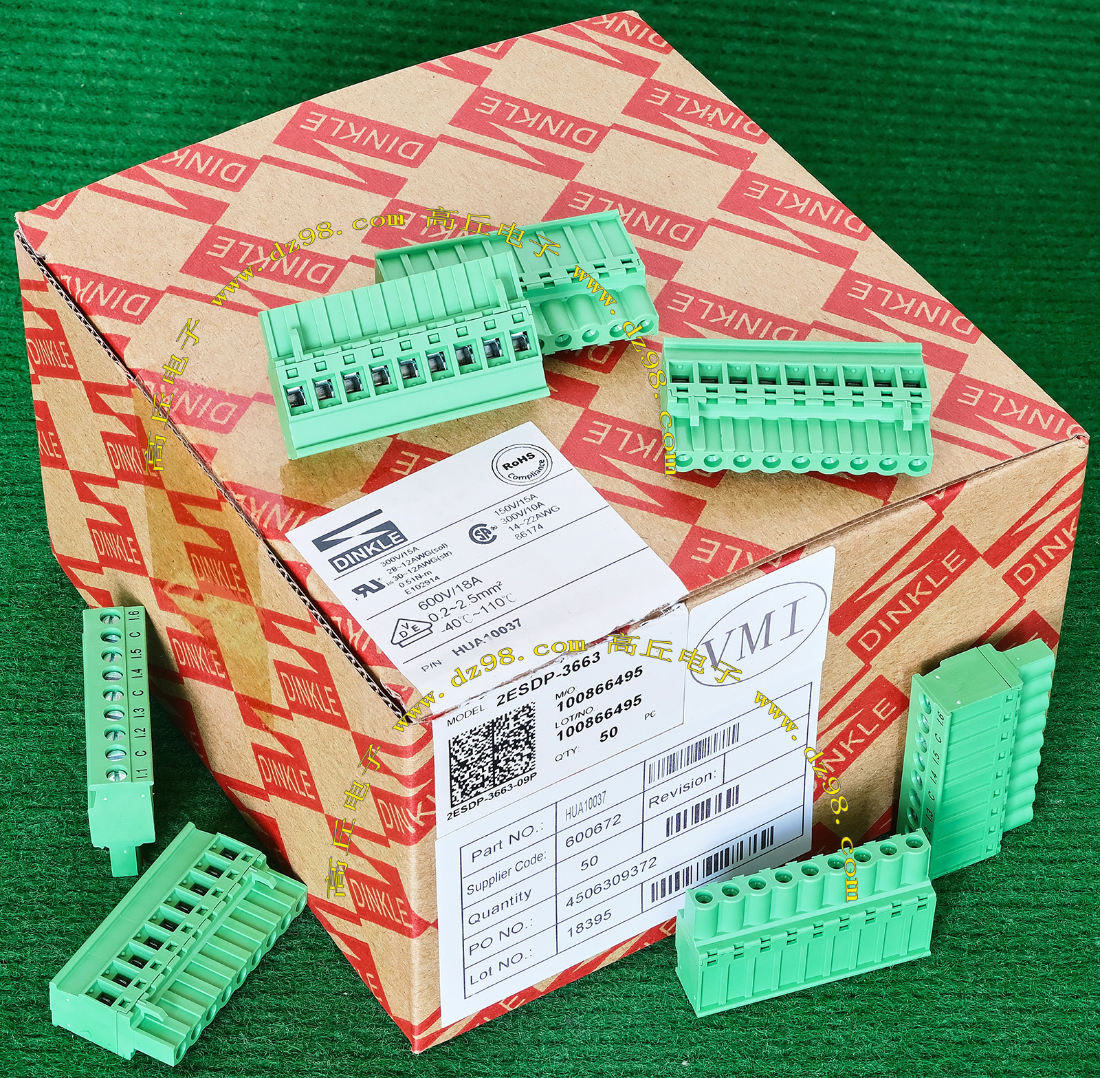 | DINKLE 2ESDP-3663 300V 15A 9档接线端子插头BQD573 | 全新,实物看图片,外形尺寸;45.8x12x26.2毫米,每档间隔距离5.08mm。 |