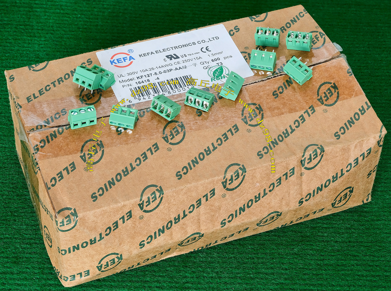 | KEFA KF127-5.0-03P-AA绿一字 250V 15A 3档接线端子BQD574 | 全新,实物看图片,可以多只卡搭延长,外形尺寸;14.9x8.2x10.1毫米,每档间隔距离5mm。 |