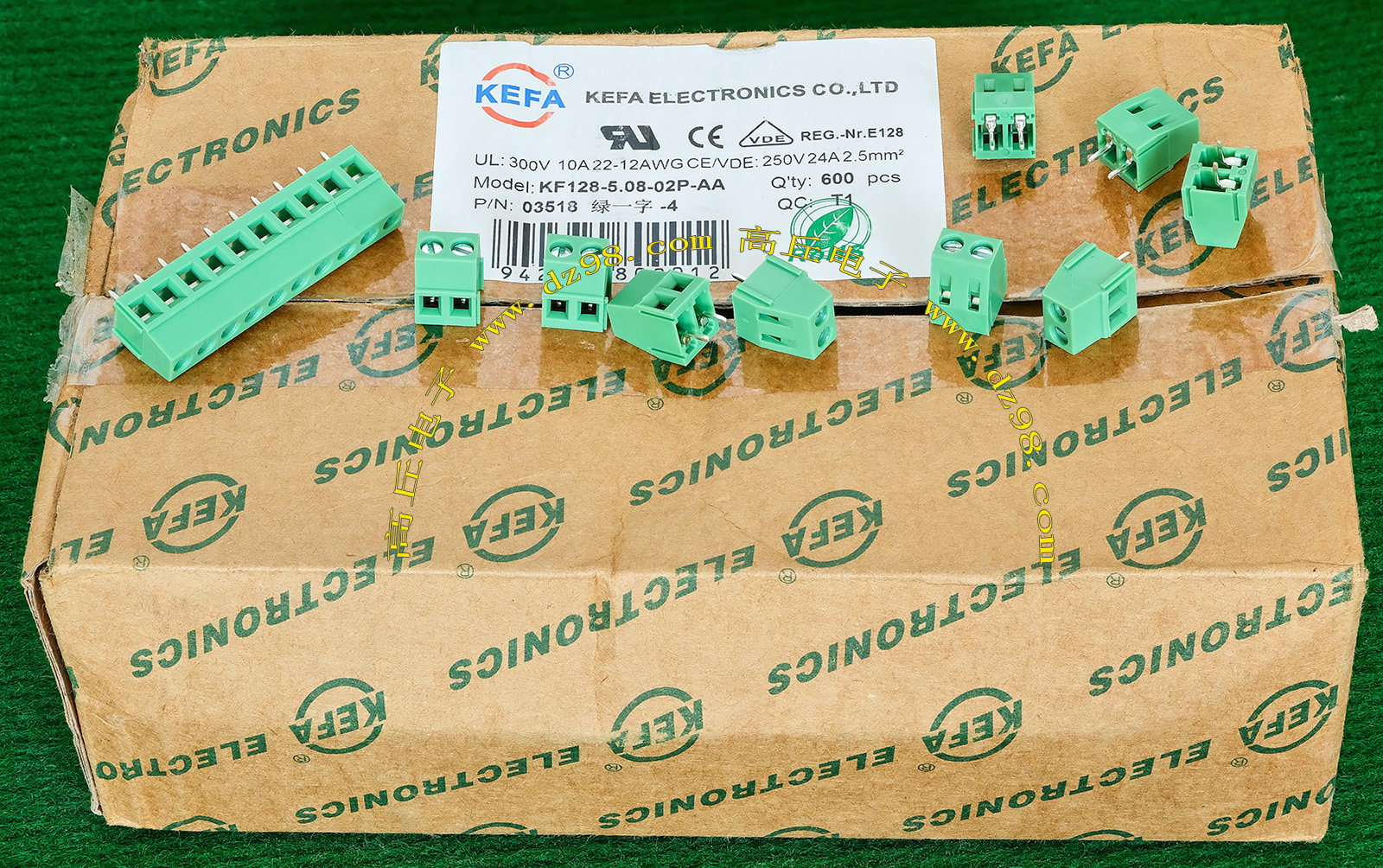 | KEFA KF128-5.08-02P-AA绿一字 250V 24A 2档接线端子BQD576 | 全新,实物看图片,可以多只卡搭延长,外形尺寸;10.1x10.5x14毫米,每档间隔距离5.08mm。 |