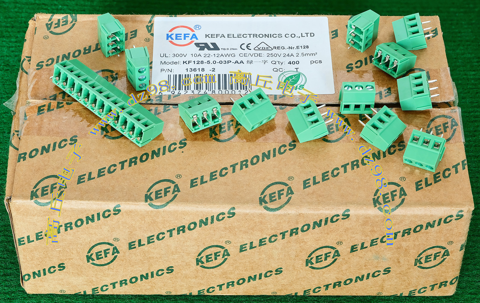 | KEFA KF128-5.0-03P-AA绿一字 250V 24A 3档接线端子BQD577 | 全新,实物看图片,可以多只卡搭延长,外形尺寸;15x10.5x14毫米,每档间隔距离5.0mm。 |
