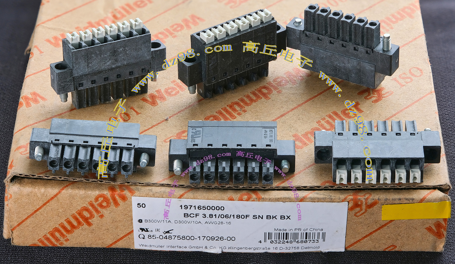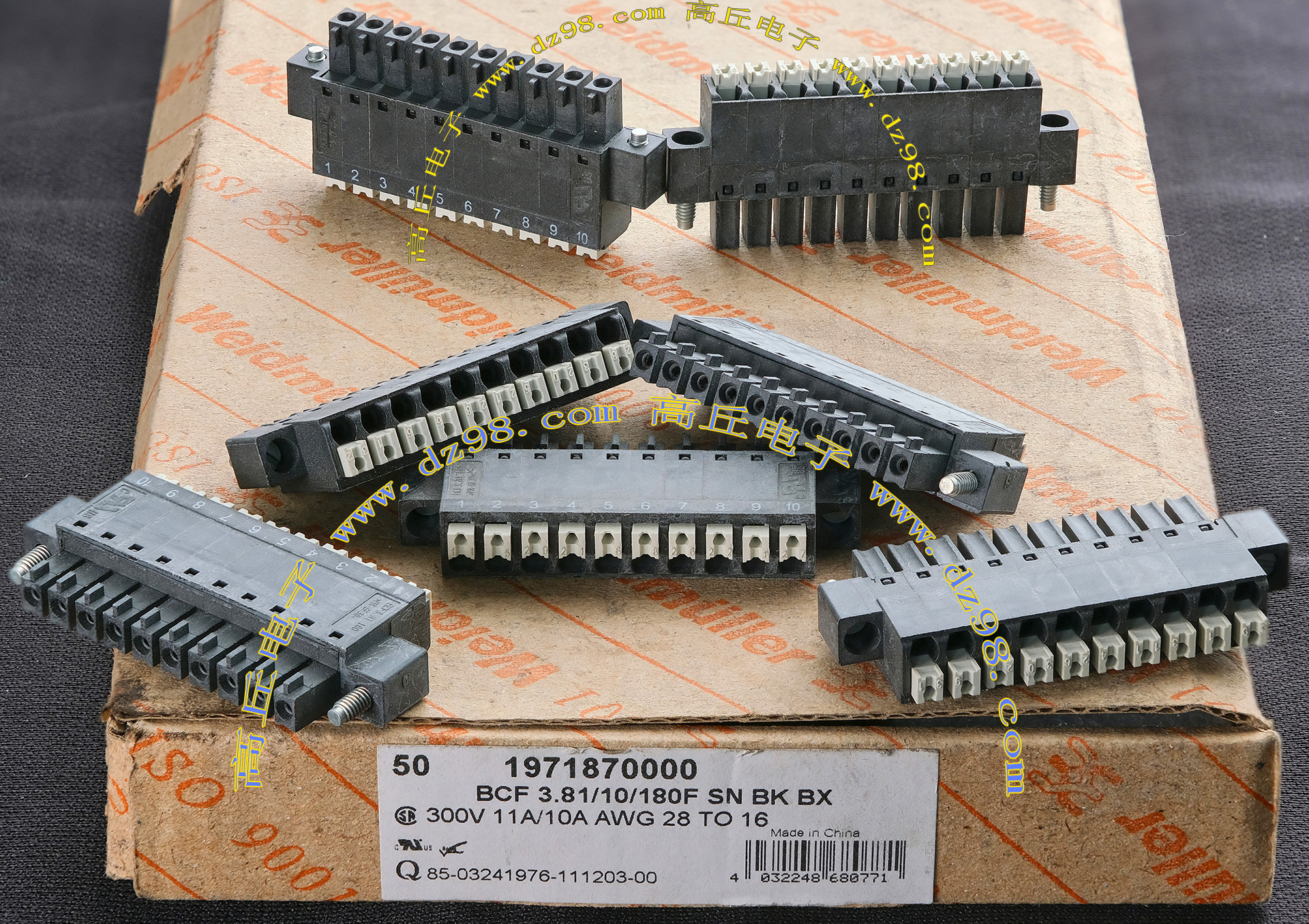 Weidmuller魏德米勒BCF3.81/10/180F SN BK BX 300V 11A/10A AWG28-16接线端子插头BQD585 数量135只 |