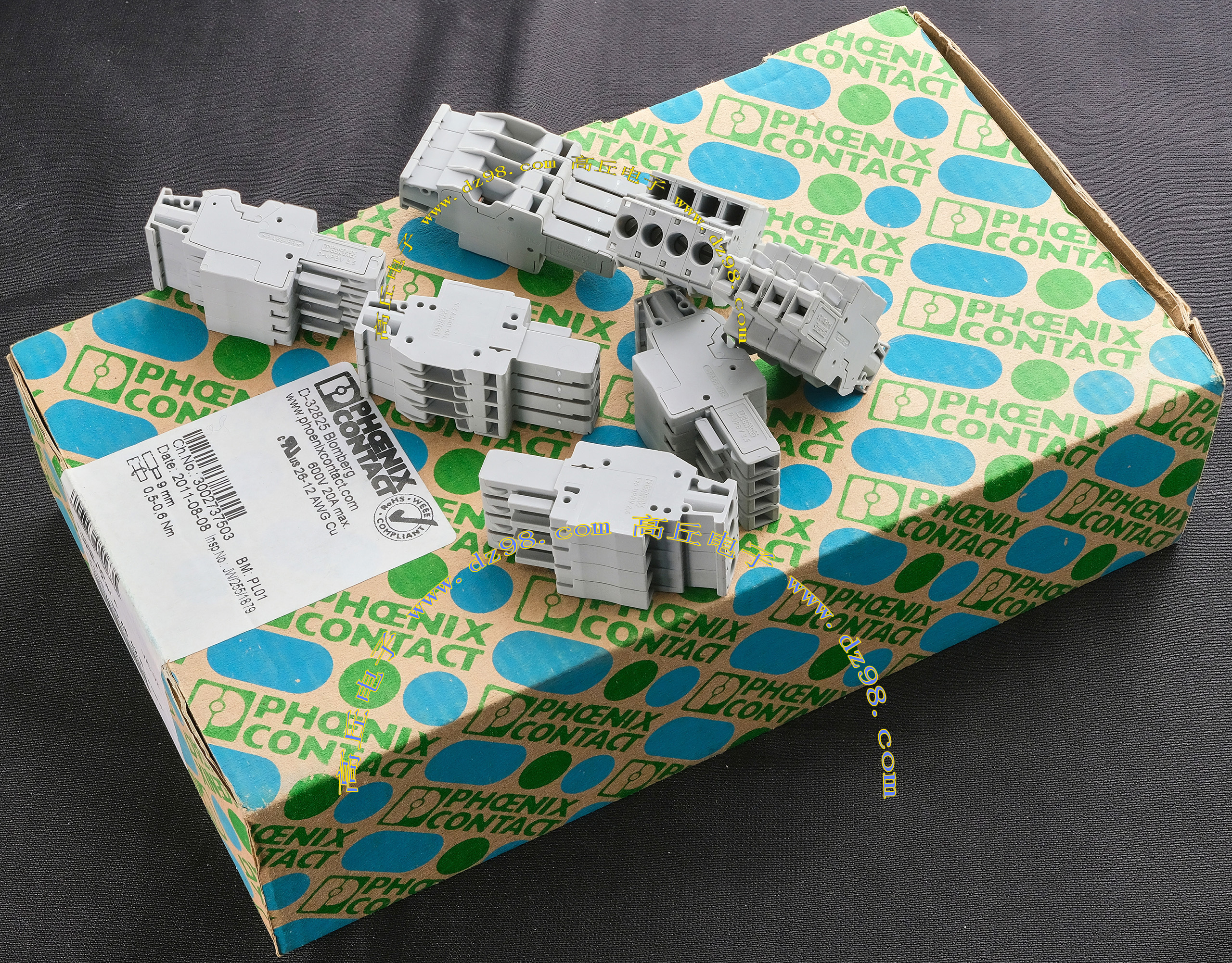 PHOENIX CONTACT菲尼克斯UPBV4/9 600V 30A 26-10AWG接线端子插头BQD597 数量167只 |