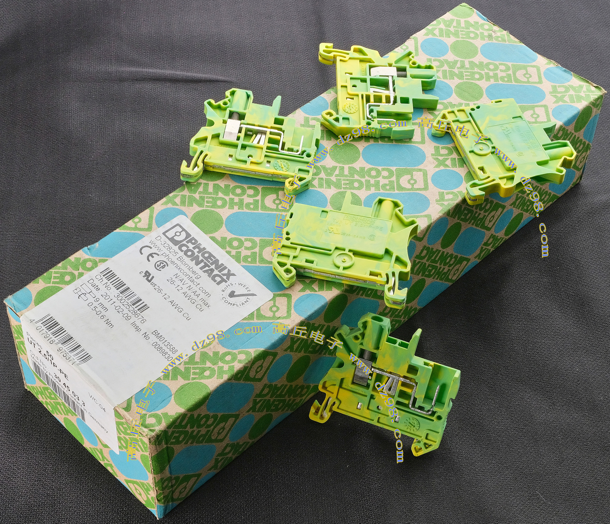 PHOENIX CONTACT菲尼克斯UT2.5/1P-PE 26-12AWG导轨卡装接地端子BQD598 数量660片 |