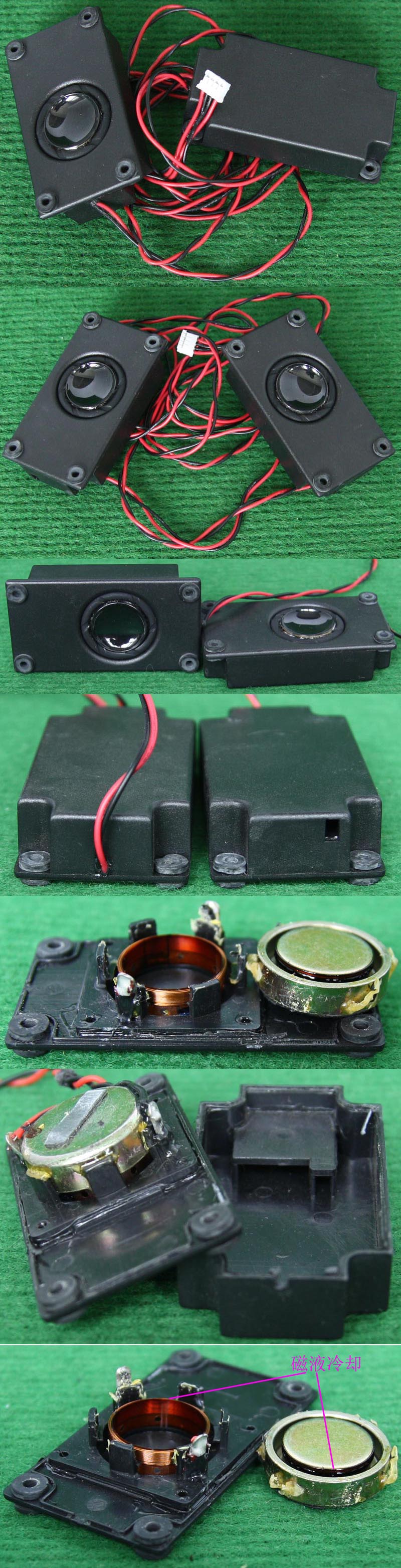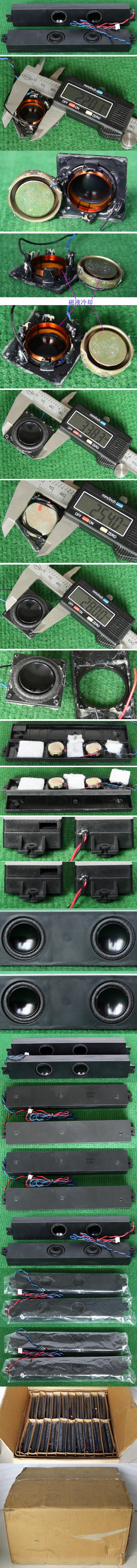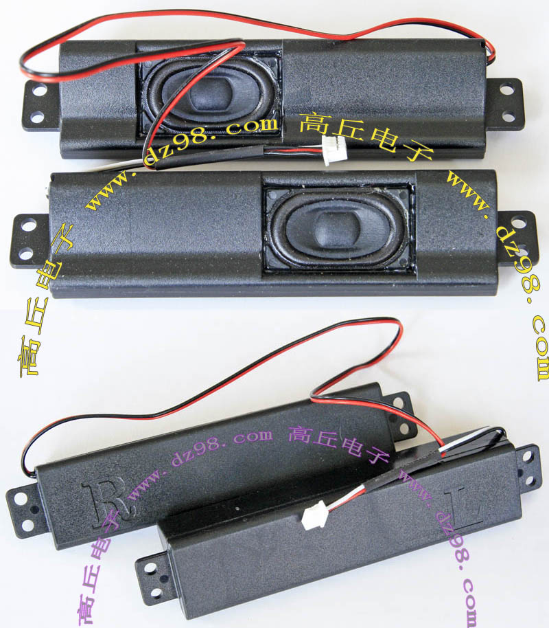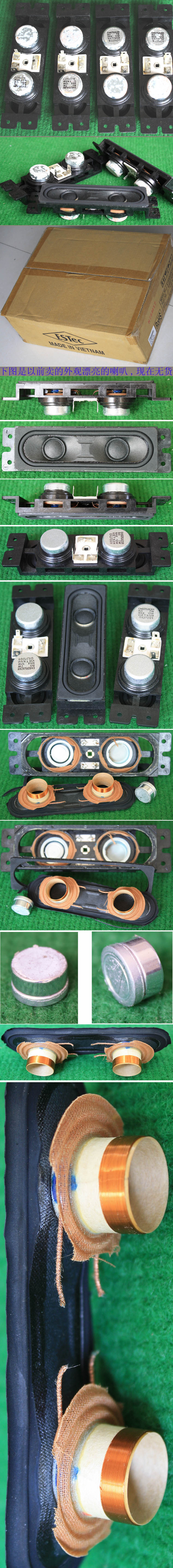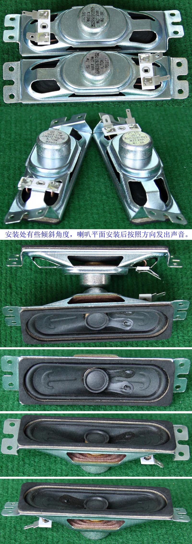 全新 | 全新商品,原包装每箱100对。液晶电视、液晶显示器,等离子电视、电脑主机内置小音箱,内部装2只高性能钕磁铁喇叭16欧姆喇叭并联, 喇叭口径才1寸多点,音圈直径达22毫米,采用磁液冷却,安装孔距离30.8-31毫米(带减震垫圈),外形尺寸:长度220毫米,宽度36.7毫米,厚度18毫米,每只引线长度约35厘米,每对重量约195克。 |