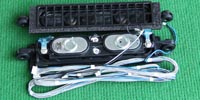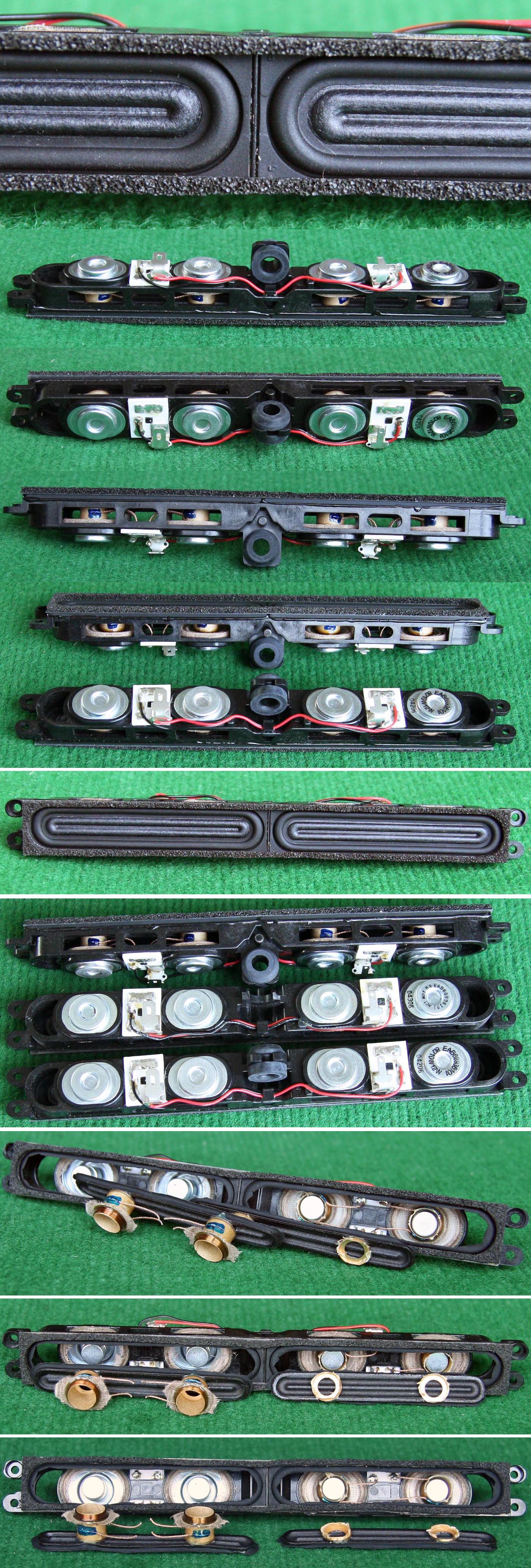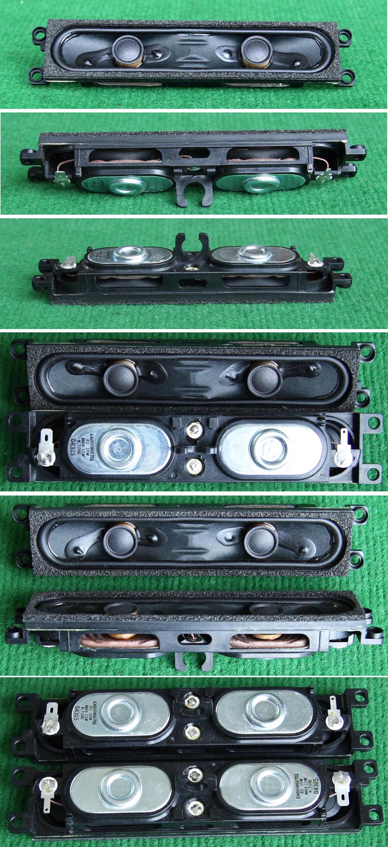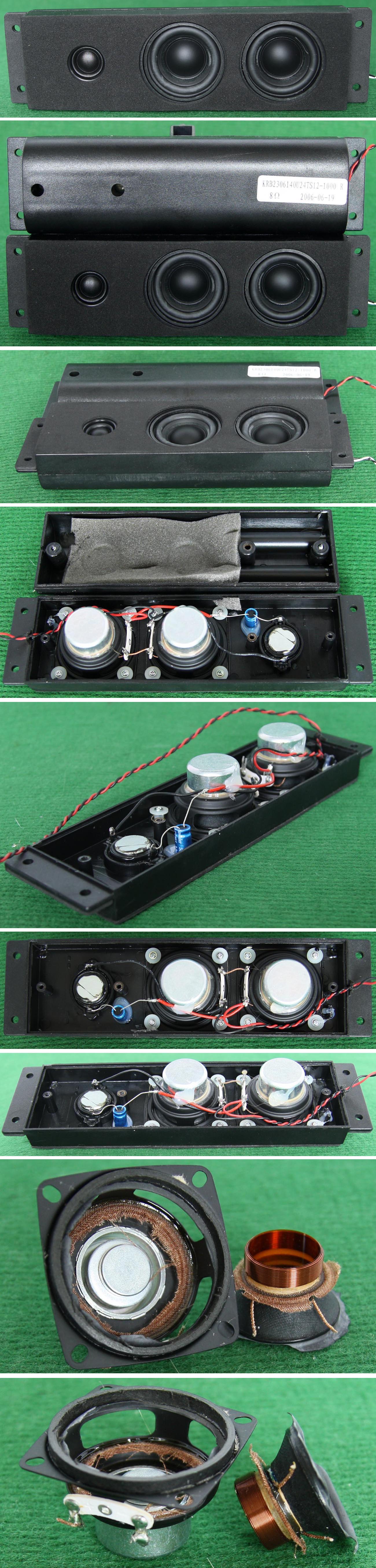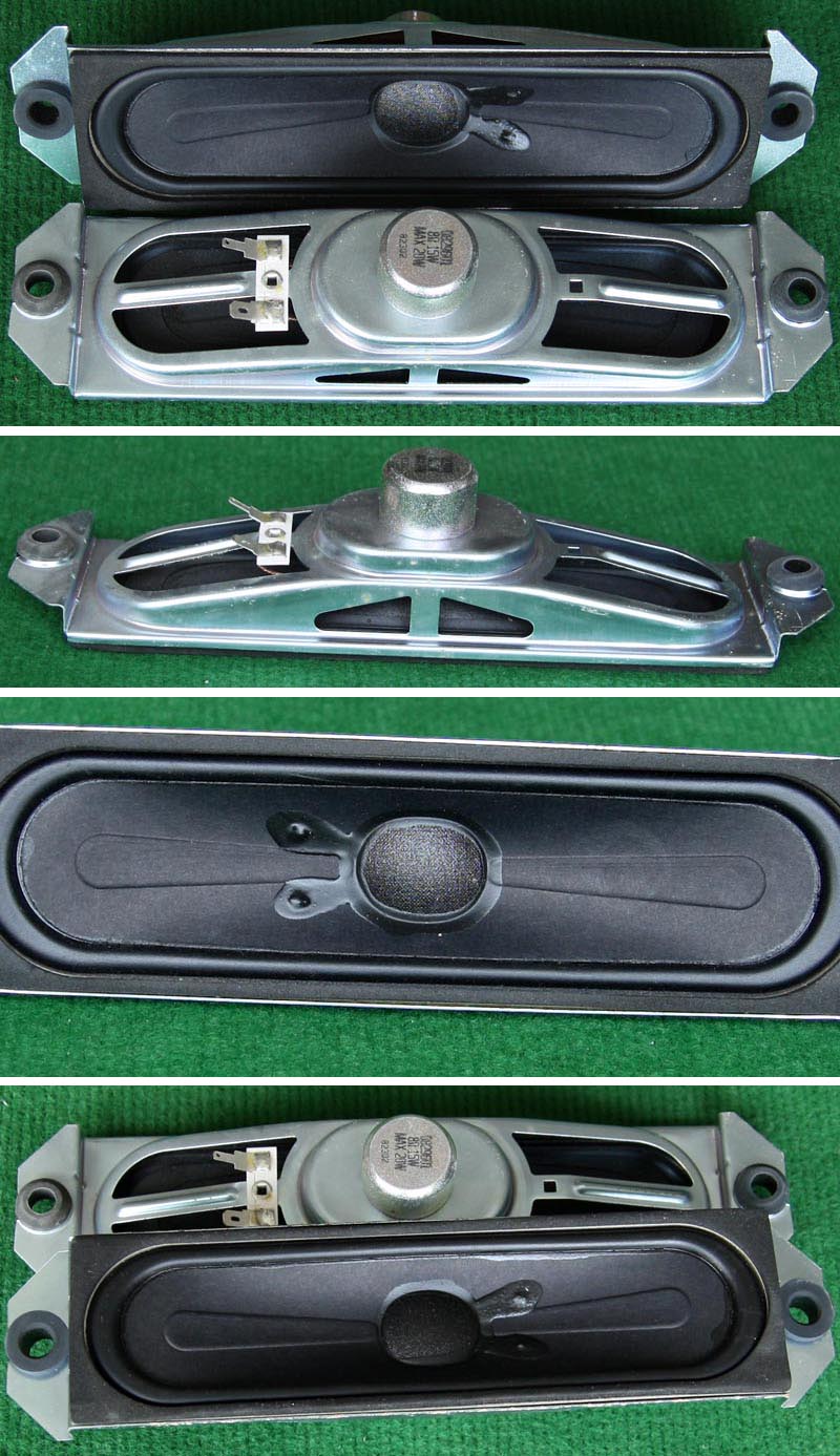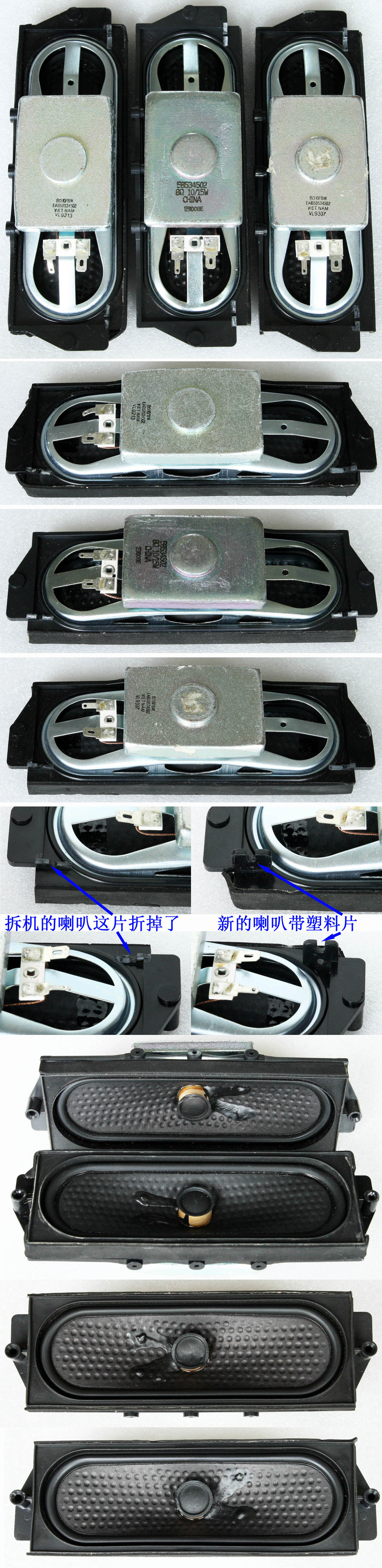 全新 | 全新商品,原包装每箱100对。液晶电视、液晶显示器,等离子电视、电脑主机内置小音箱,内部装2只高性能钕磁铁喇叭16欧姆喇叭并联, 喇叭口径才1寸多点,音圈直径达22毫米,采用磁液冷却,安装孔距离30.8-31毫米(带减震垫圈),外形尺寸:长度220毫米,宽度36.7毫米,厚度18毫米,每只引线长度约35厘米,每对重量约195克。 |