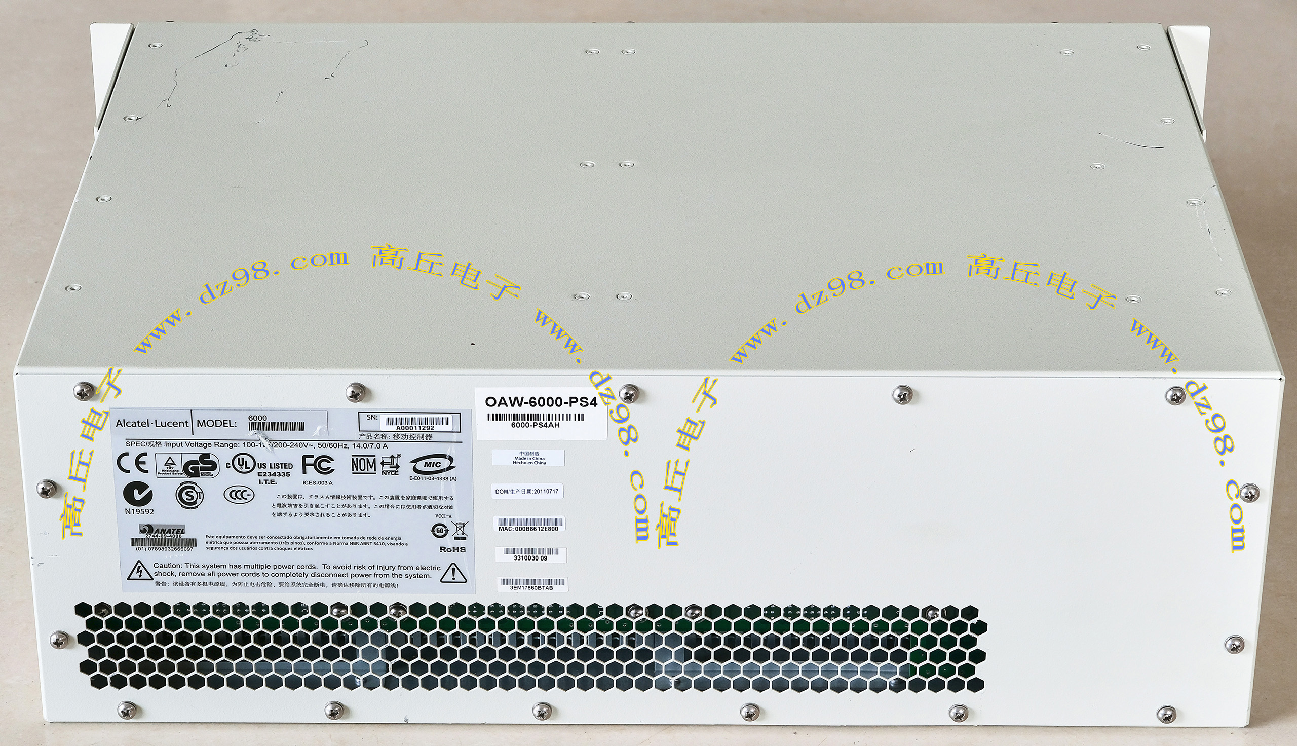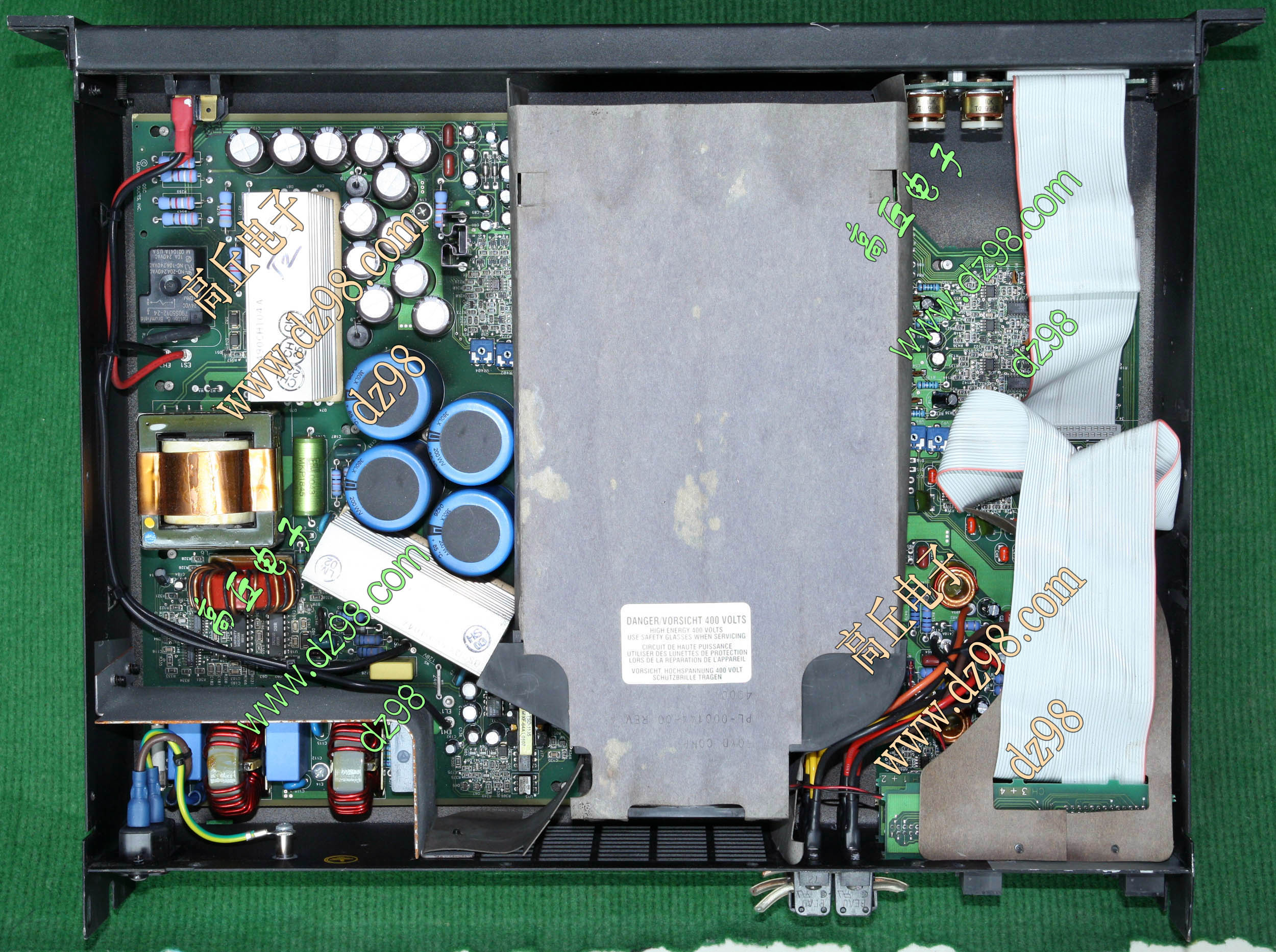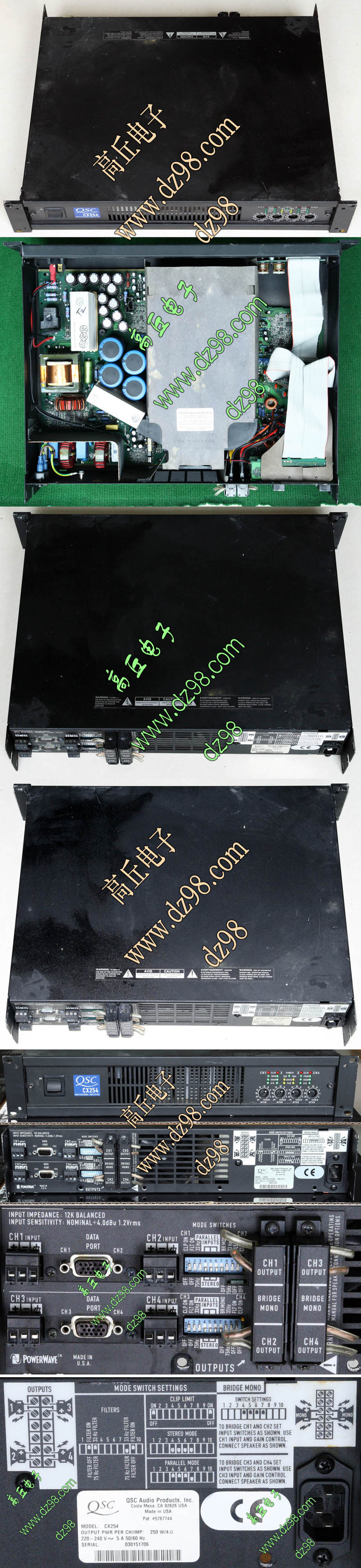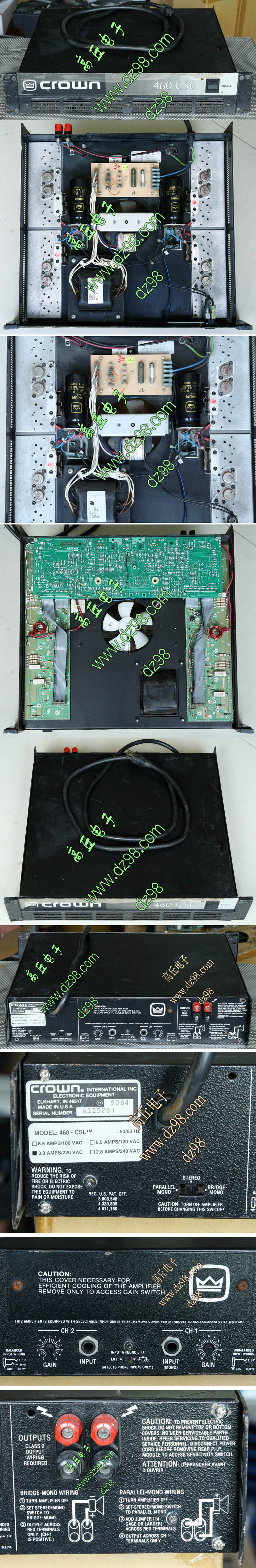 拆机件 | 本商品从进口原装大型设备机架上拆下,没有喇叭网罩的(本来就没有做在音箱上),内部装有D2AUDIO全数字3声道功放一只,搭配DC50V输出350W高频高速变换开关电源一只,8寸大磁钢低音喇叭一只。其电源输入电压是115V和230V两用,箱内电源莫认输入电压为115V(因为国外的电压115V),所以要打开后板把电源输入插头选择插到230V,内部的3通道功放有两个通道输出到接线柱,一个通道输出接到内部低音炮喇叭。输入不是普通的音频信号,具体怎么用我们也不知道,所以购买本低音炮要懂得数字功放的才可以买,如果你不懂数字功放,可以单独购买低音炮箱连喇叭(就是已经拆掉电源和功放的)。当然对数字功放感兴趣的也可以单独购买研究。 根据你需要买什么就拆什么。 |
