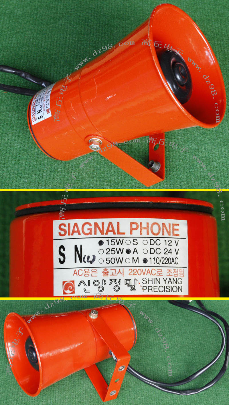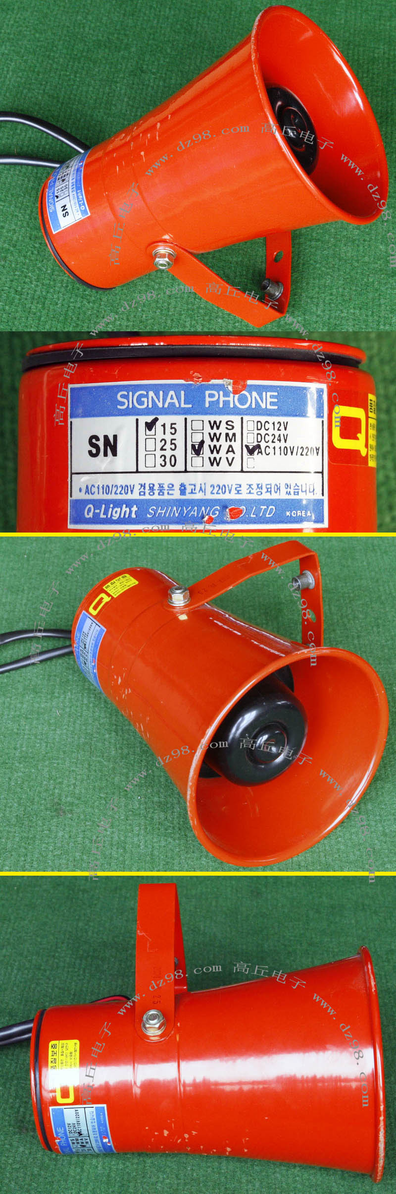 二手 | 二手外观约7.5成新,集合功放和号角指向喇叭一体,供电使用交流12V-24V,或者直流12V-30V,两条粗线黑色和白色接电源。内置8种提示音:有报警音、门铃音、电话音、电子游戏音等共8种。紫色线不用,以棕色线与其它8条线连接得到8种不同响音效果。 重量1.15公斤。 |
