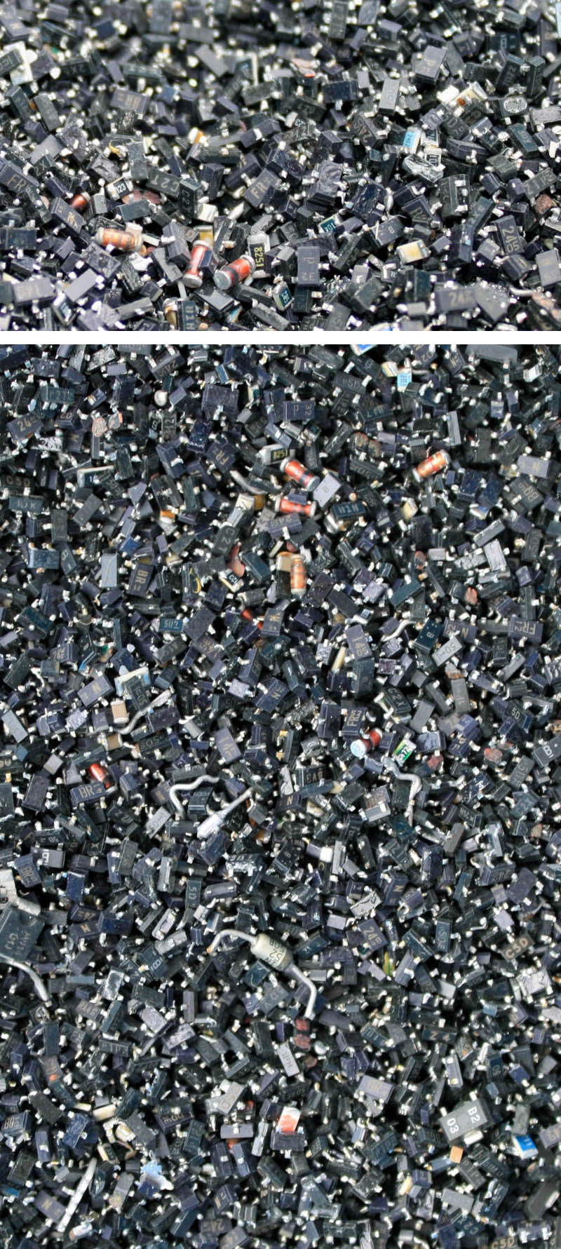 拆机件 | 拆机件,(各种规格都有),(每50克数量约1500只)。 拆机高性能贴片电容,该电容广泛用于手机,笔记本电脑,PDA,等小型设备上,稳定性特好。 |