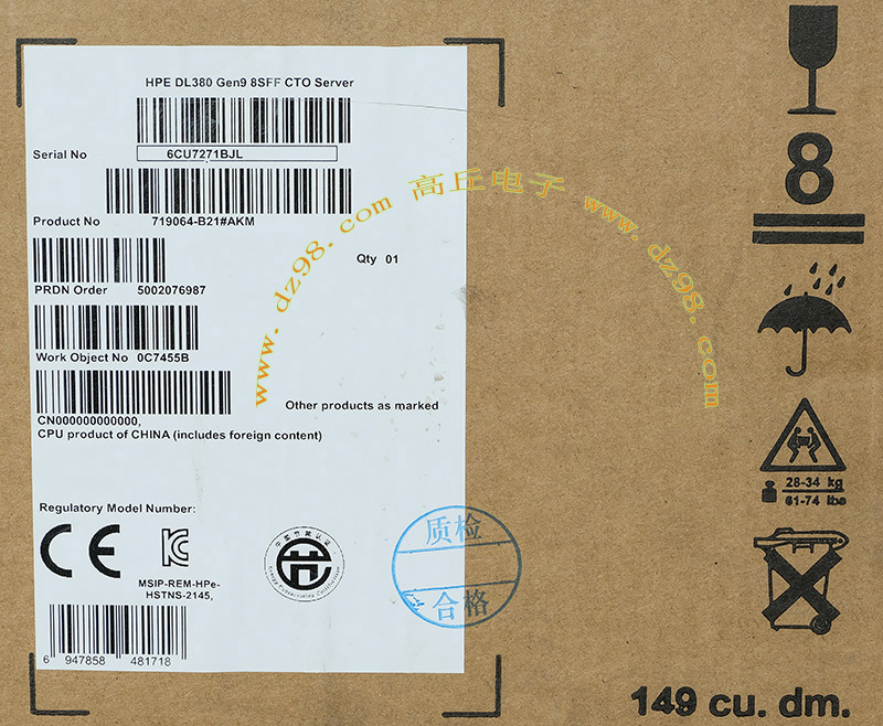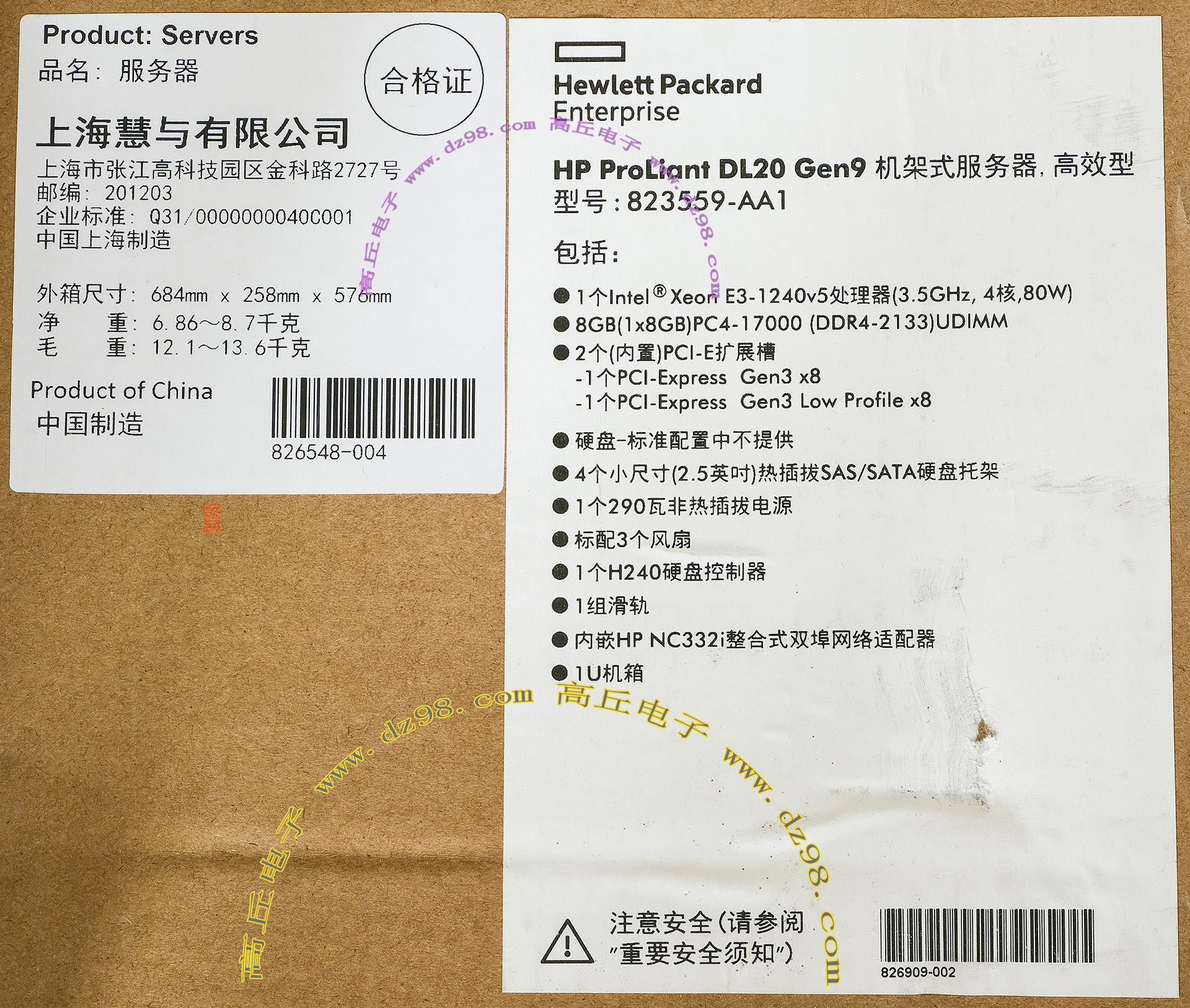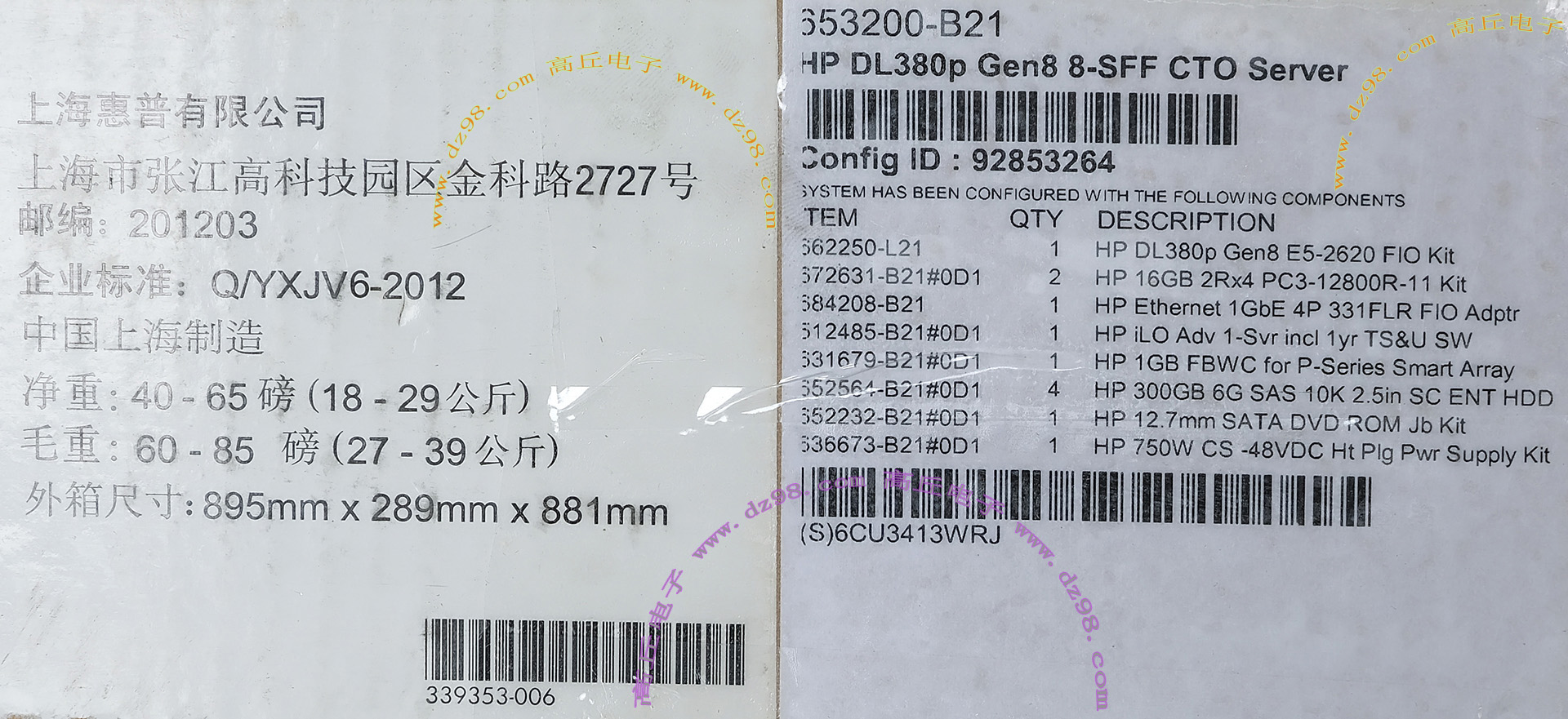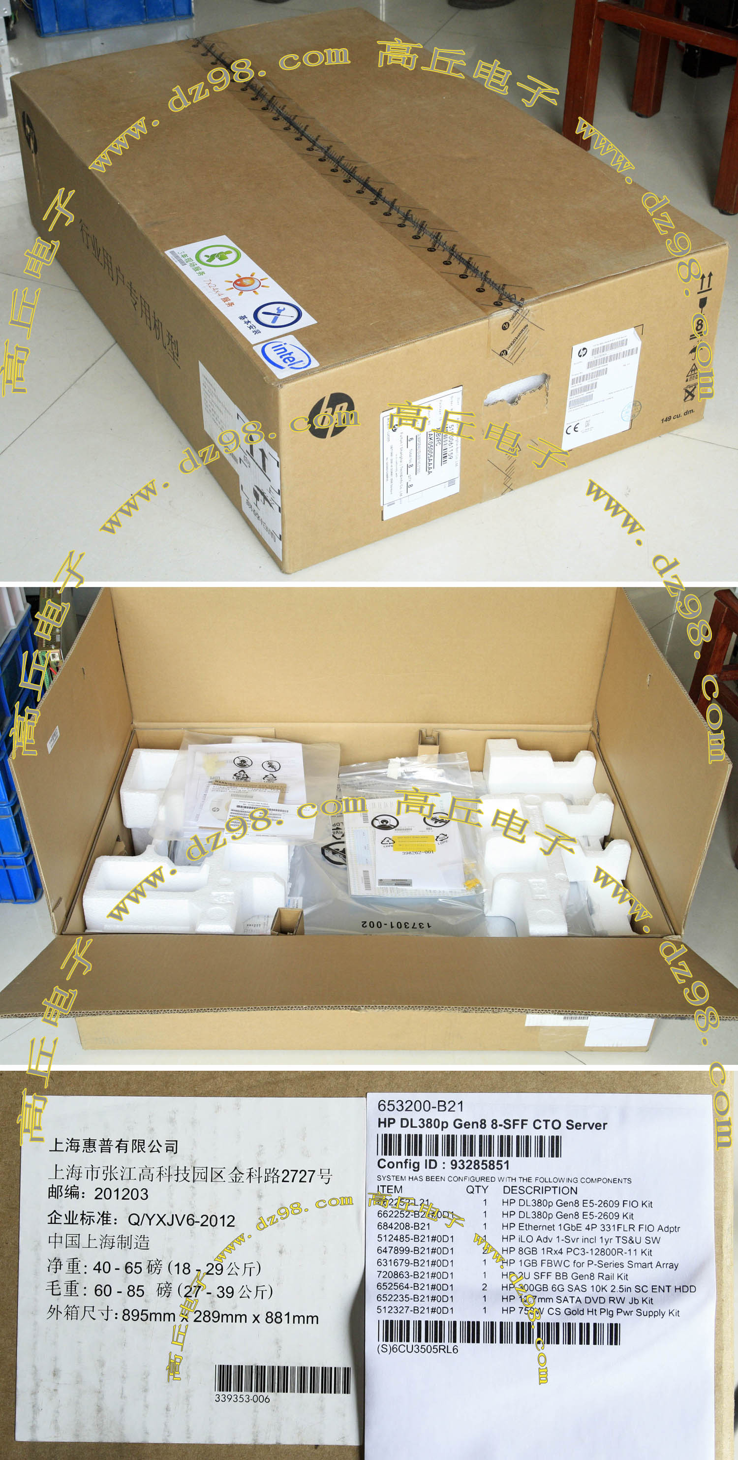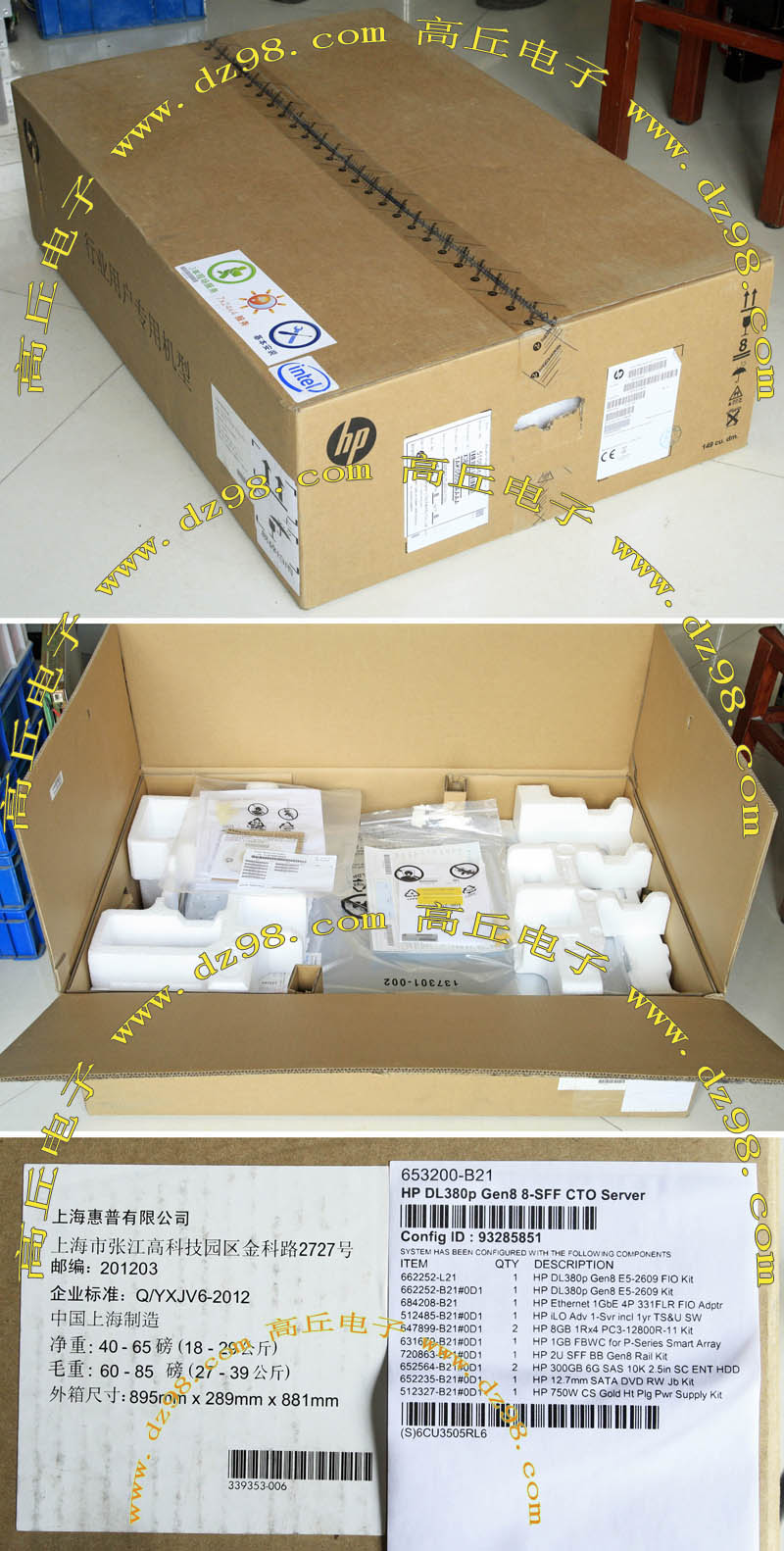 | 全新原装惠普HP DL380p Gen8 8-SFF COT Server E5-2620服务器BQE311 | 全新原装 | 原包装新机,HP服务器,实物看图,包装箱很长很大,图片里有配置标签。 |