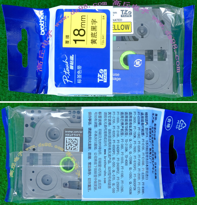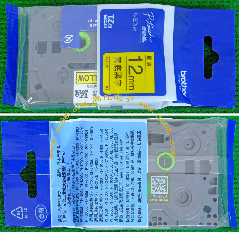 brother兄弟TZe-621黄底黑字9mm覆膜打印 普贴趣 标签机色带BQE271 9mm数量5只 6mm数量10只 |