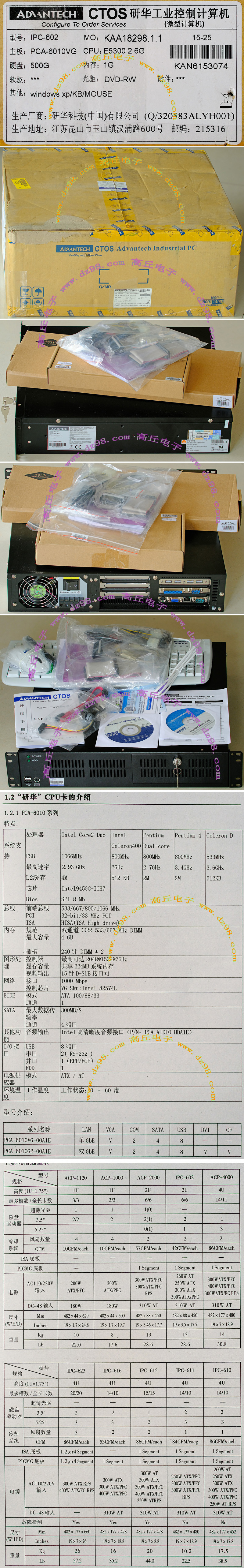 | 研华IPC-602 PCA-6010VG E5300 2.6G工业控制计算机BQE256 | 全新 | 全新原包装,全部附件齐全,详细看图片。 |