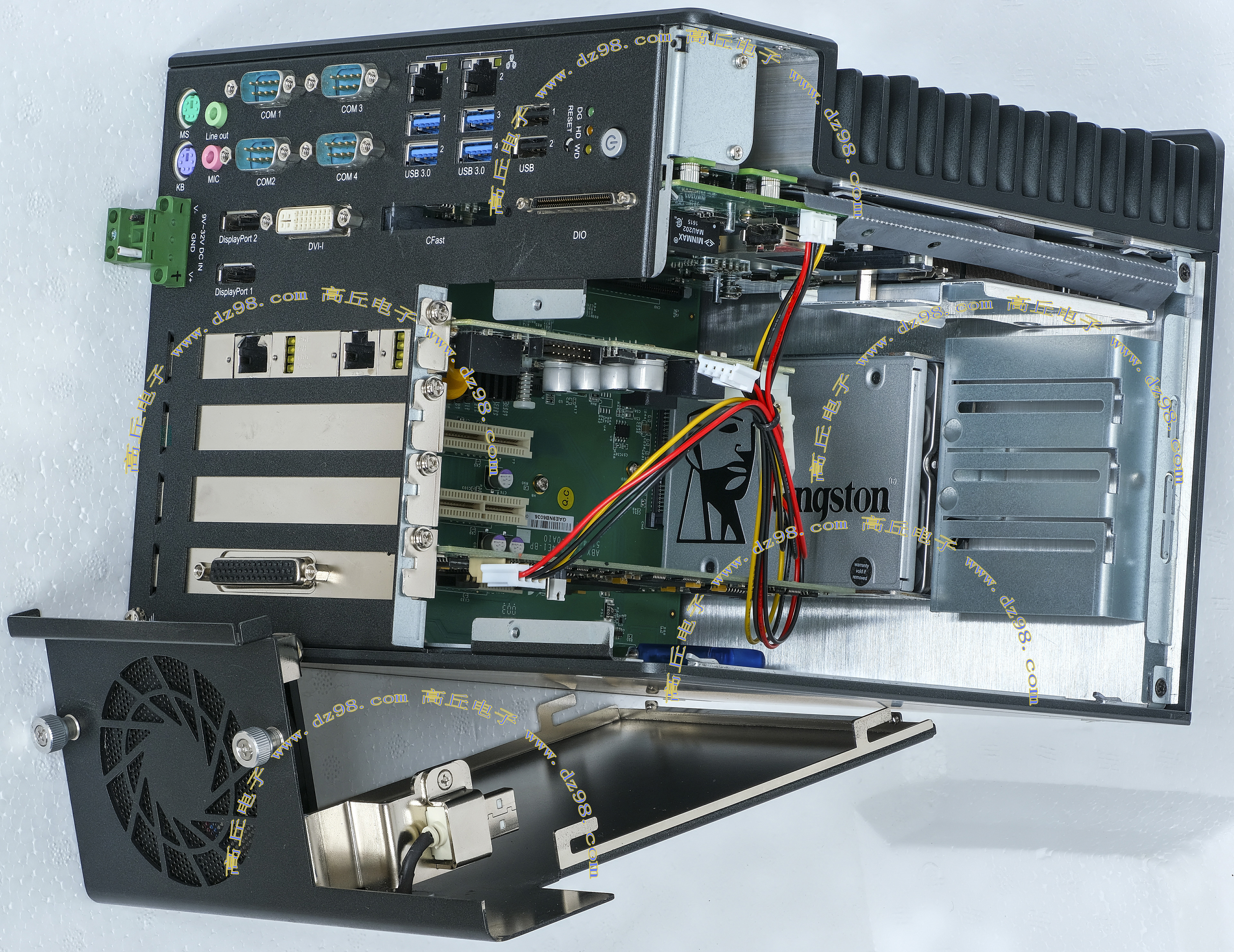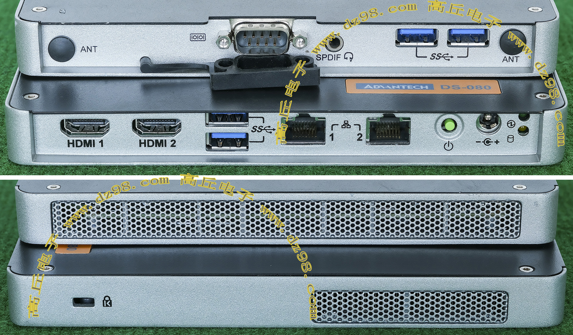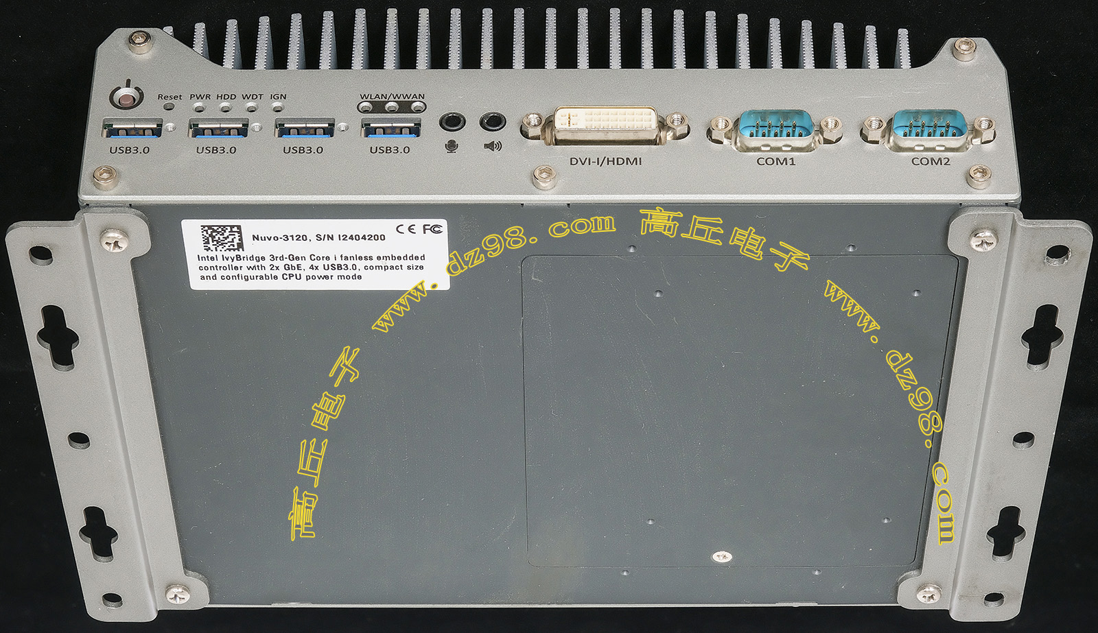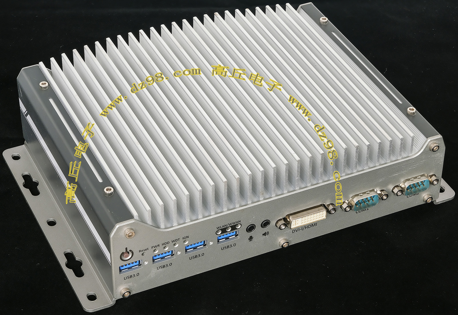 拆机 | 拆机,实物参照图片,机内基本配置;i5CPU,4G内存,128G固态硬盘,1个DVI+2个DP显示器接口,2个9针串口,3个USB-3.0,2个USB-2.0接口,2个千兆以太网口,供电DC8V-35V,全铝自然散热机壳,内部无风扇,外形尺寸;210x165x62毫米,重量约2700克。 |