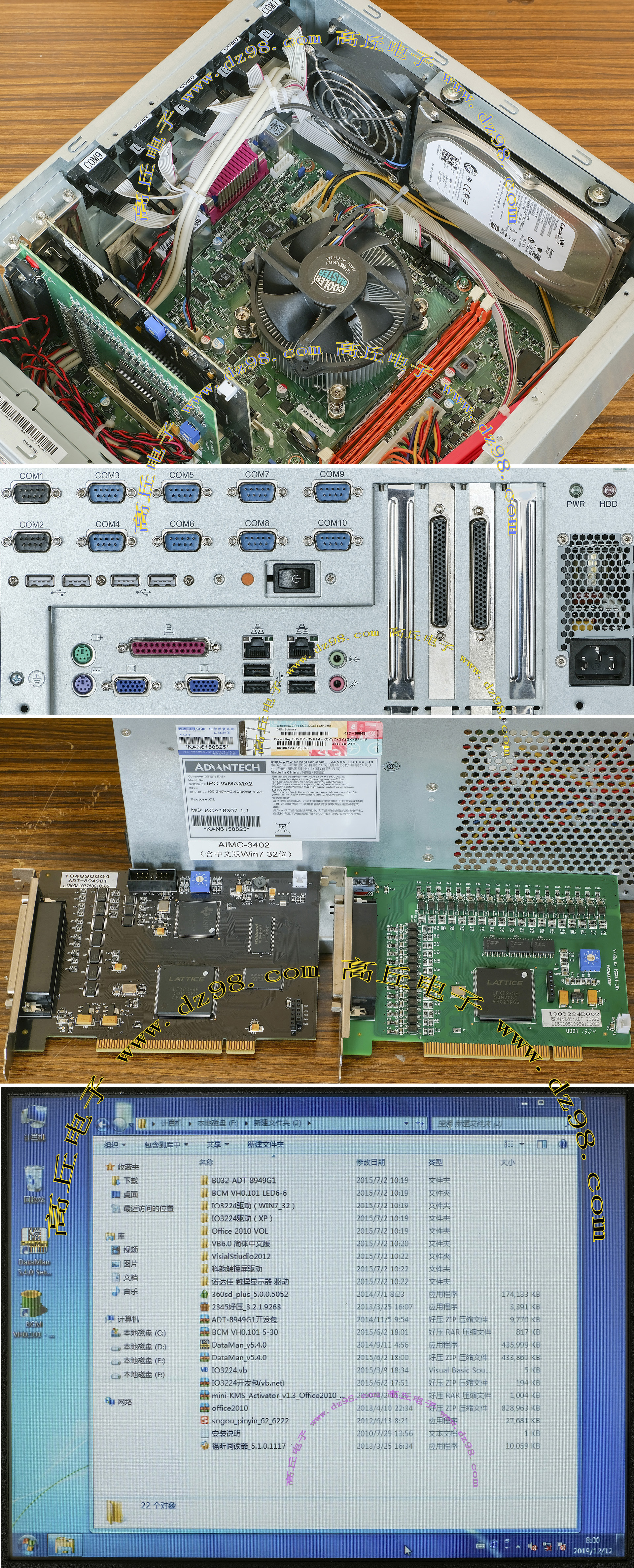 | ADVANTECH研华IPC-WMAMA2工业计算机BQE295 | 拆机 | 自动化设备机柜拆下,品牌;ADVANTECH研华,型号;IPC-WMAMA2,配置;CPU=INTEL(R)CELERON(R)G1620@2.7GHz,内存2G,硬盘500G,机内带ADT-8949B1步进电机4轴驱动卡和ADT-IO3224运动控制卡,并且已在主机内安装驱动程序,2个网络口,8个USB口,10个串口,2个VGA显示口,打印机并口,PS2键盘鼠标口。 |