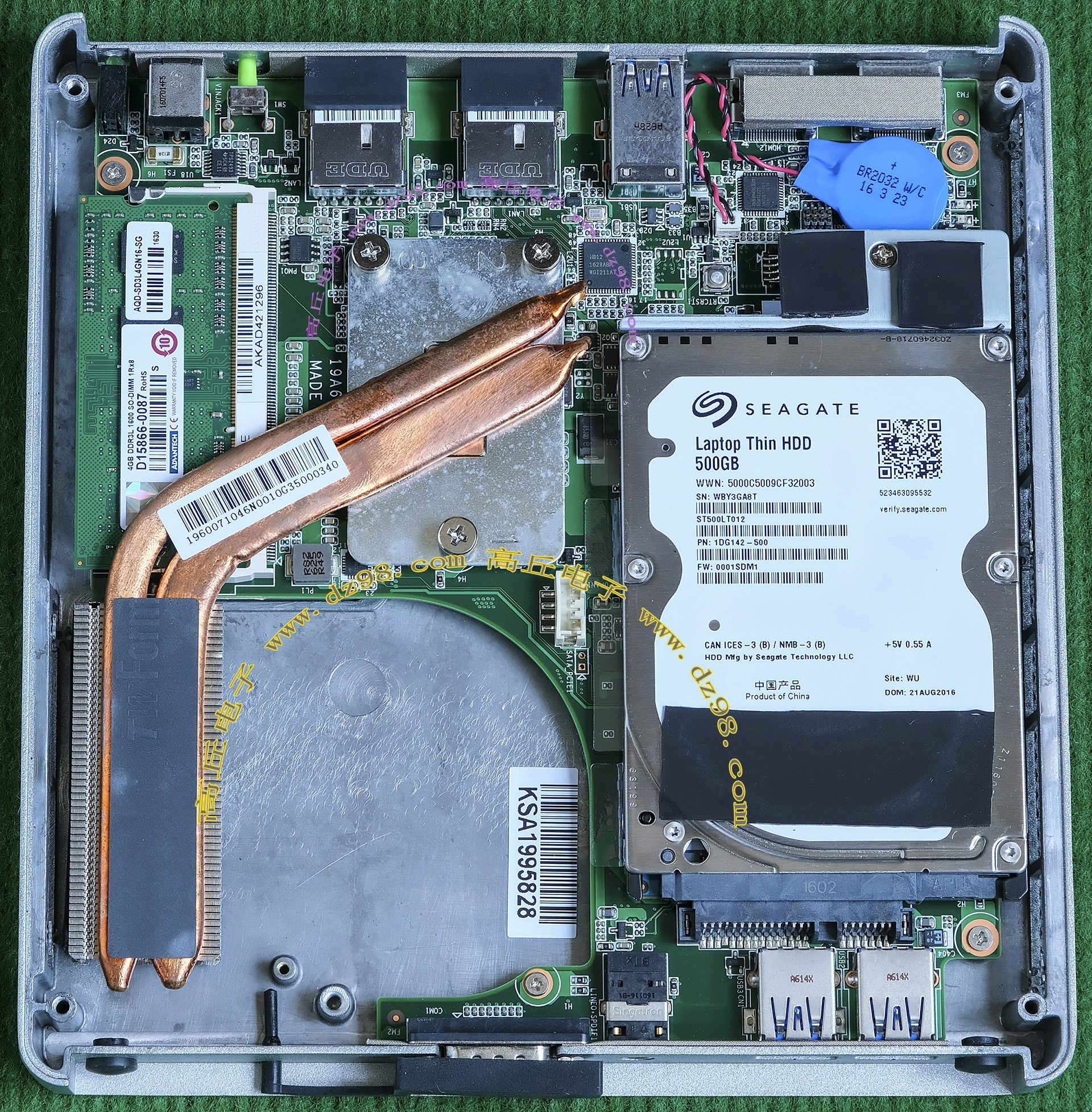 拆机 | 拆机,实物参照图片,机内基本配置;无风扇CPU,4G内存,还有1个内存槽可扩展,500G硬盘,1个MINI-PCIE1扩展槽,1个MSATA1插槽,1个HDMI显示器接口,1个VGA15针显示器接口,5个9针RS-232口,1个9针RS-232/422/485口,1个USB-3.0,7个USB-2.0,2个网口,1个PS/2口,供电DC12V,全 金属自然散热机壳,内部无风扇,外形尺寸;200x207x69毫米,重量约2000克。 |