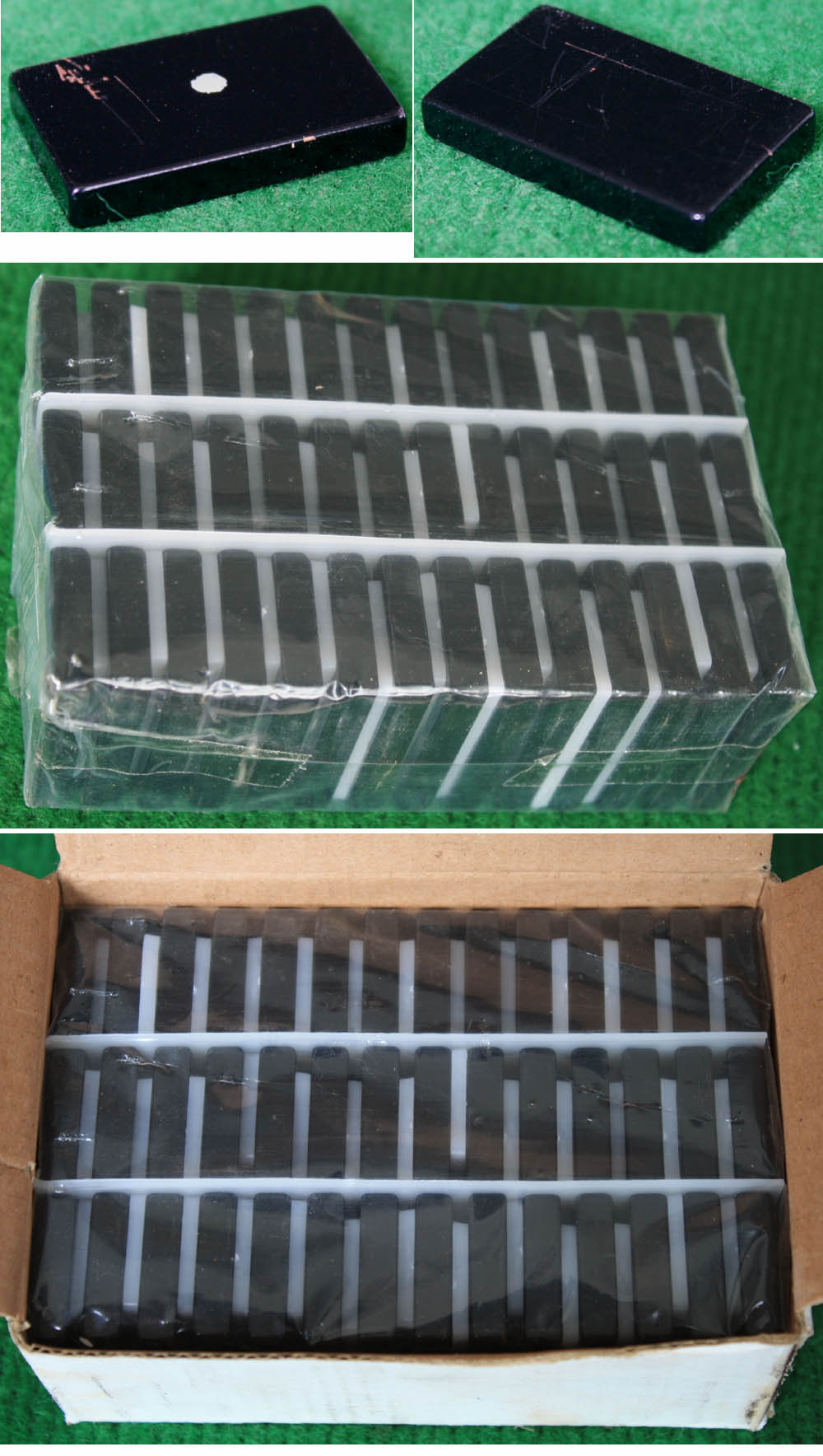盒包装数量42只,每盒重量约1830克,每只尺寸:40mm x24mm x6mm,本磁铁经过表面镀铜处理,最外层是黑色漆。