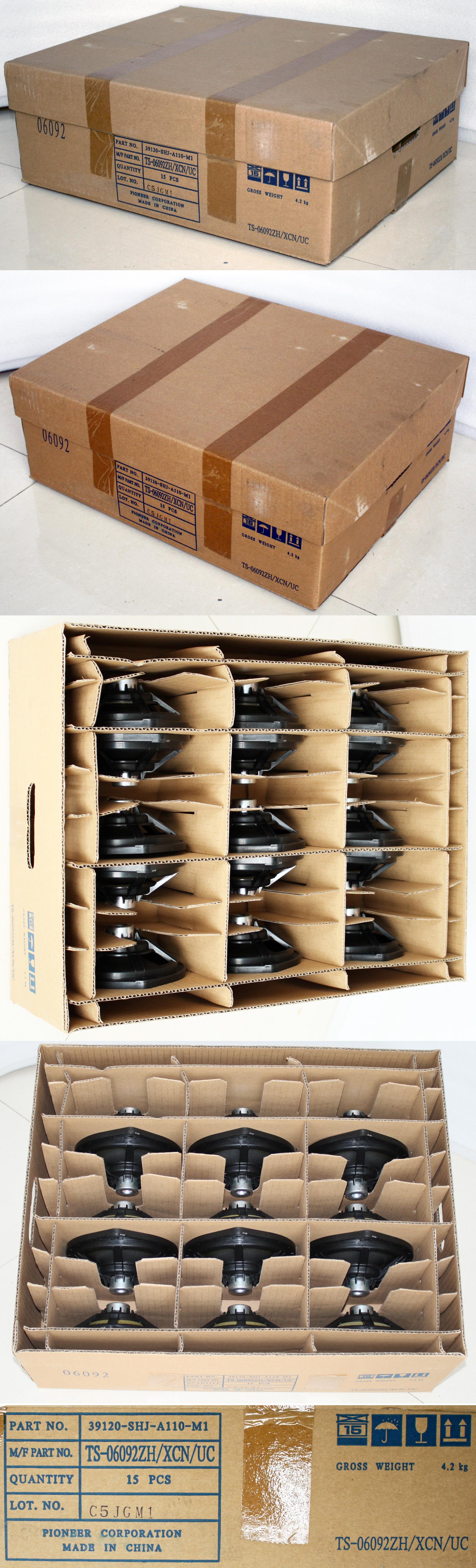 全新 | 全新原装品,厂牌:日本PIONEER先锋,产地:中国,每箱原包装数量15只,大型汽车厂订制品,没有写出数据,此喇叭由于采用钕磁铁,具有轻量和尾部占用空间小的特点,如汽车喇叭就需要这种尾部不能太大的喇叭,采用昂贵的稀土磁铁(钕铁硼),最小的体积得到最强的磁力,尺寸:最大处直径170毫米,厚度62毫米,每只安装孔间隔距离137毫米,重量约160克。测试交流电阻6欧姆,直流电阻4欧姆。 |