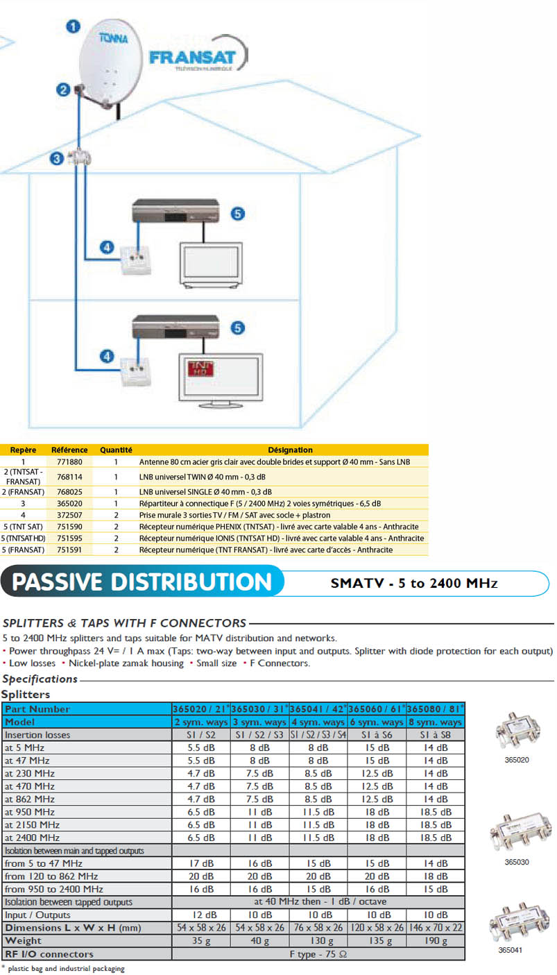 TONNA Ref 365020 REPARTITEUR 2D CONNECTIQUE F 5-2400MHzBRB104