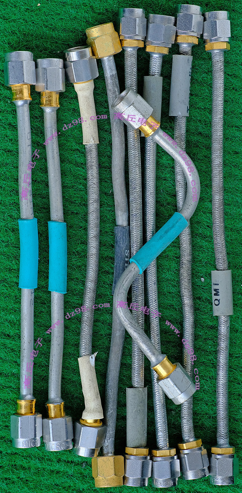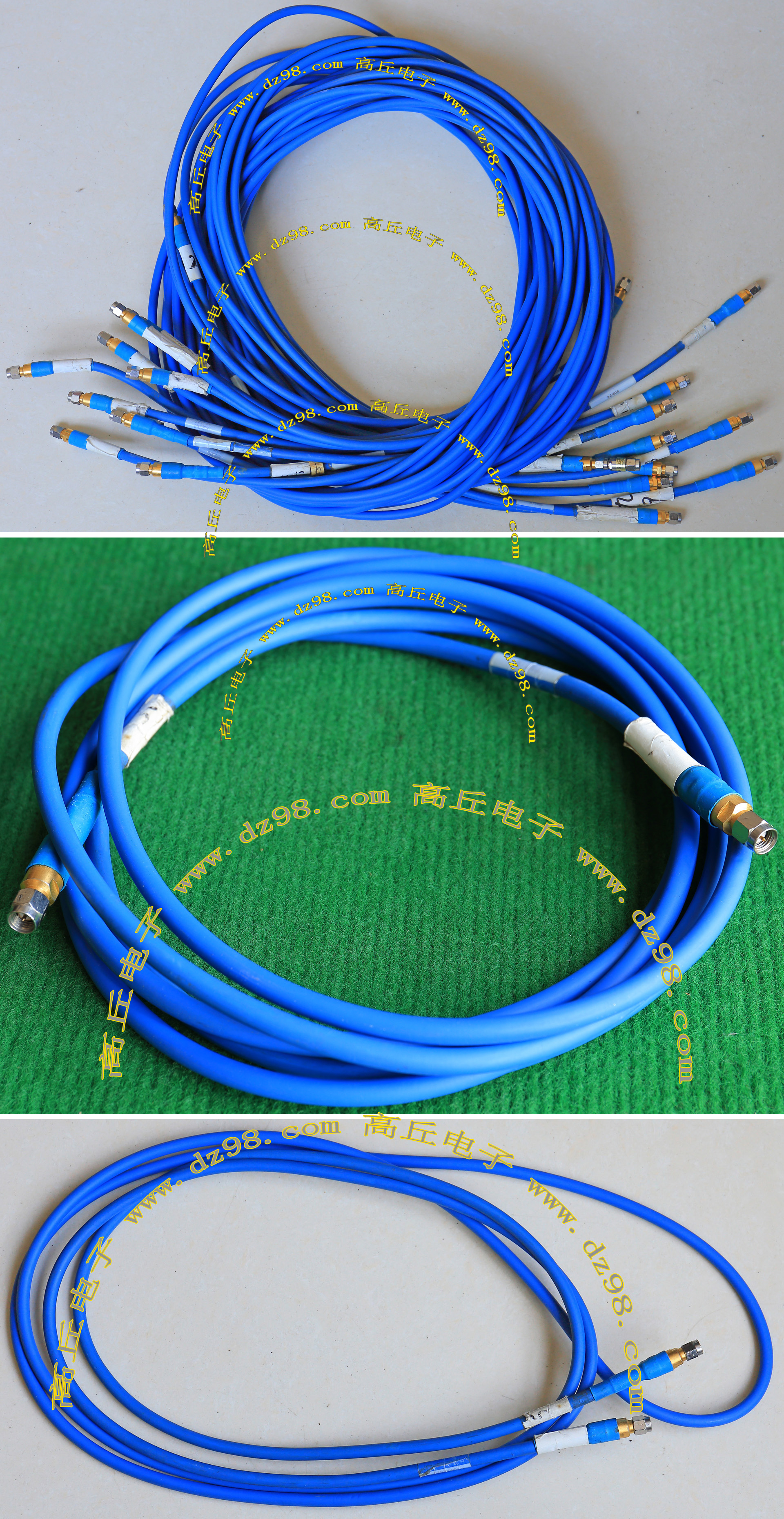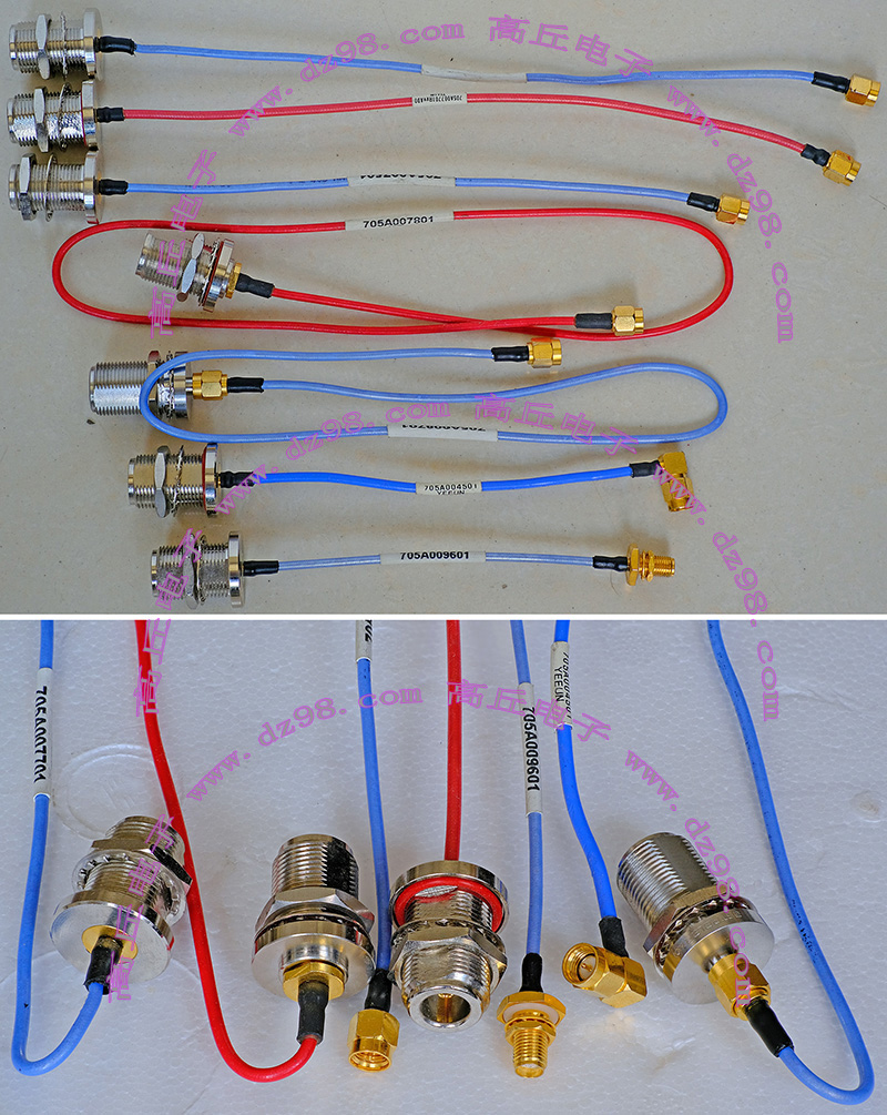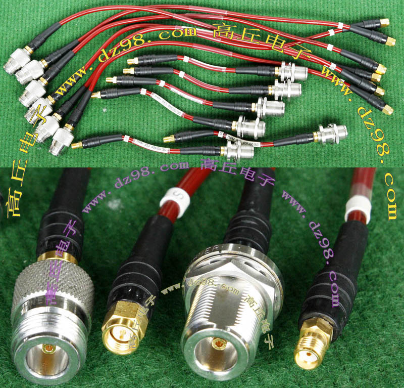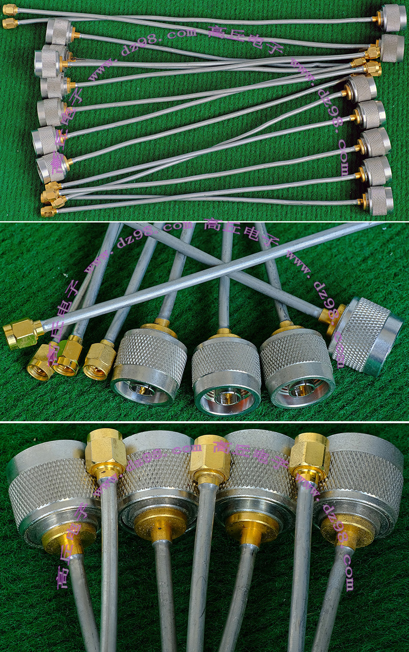 进口拆机,实物参照图片,线长度有10厘米到36厘米多种,一端带有镀黄金高频接头,多层屏蔽线直径约2.75毫米,内部结构看图片。