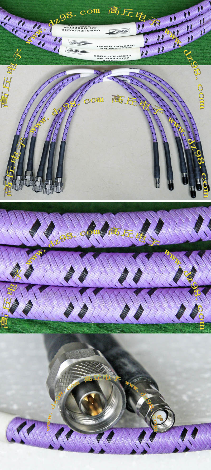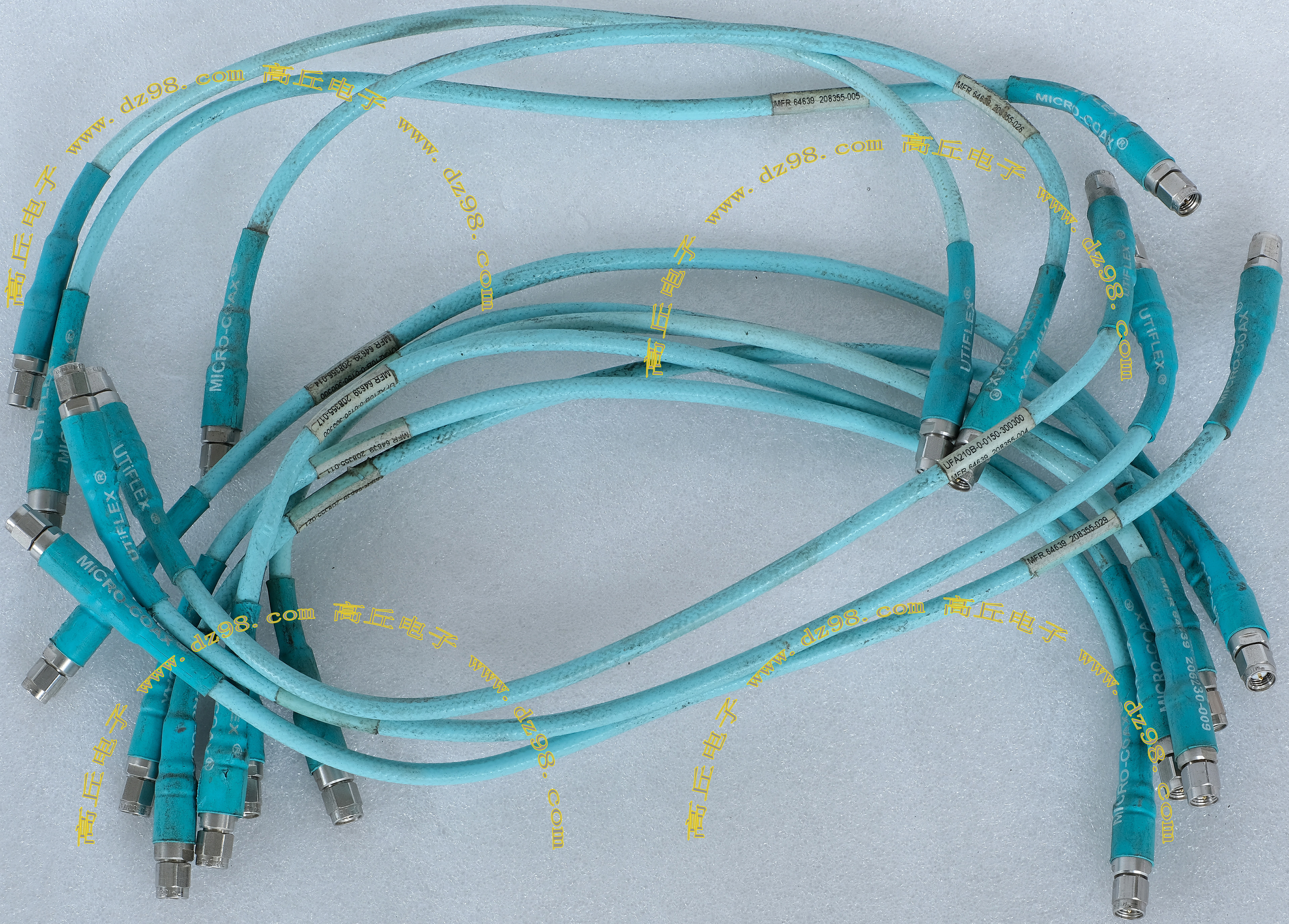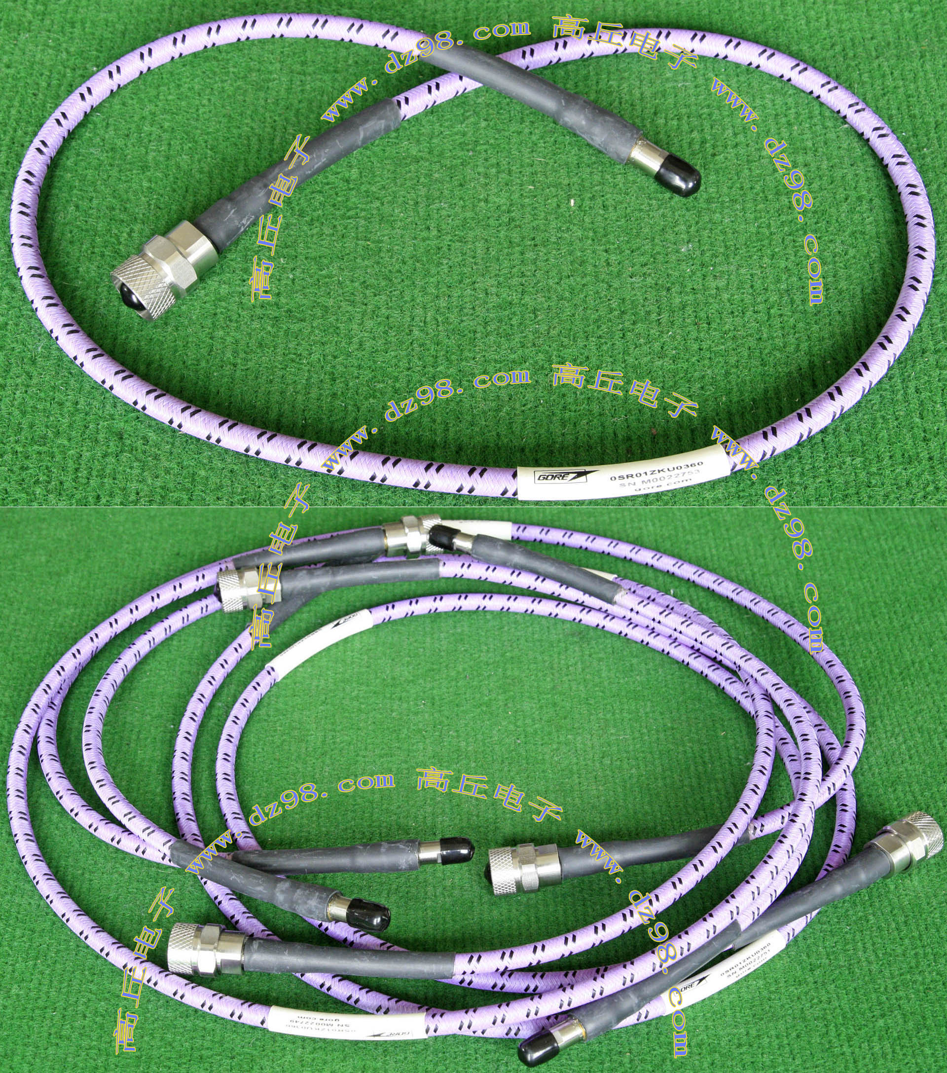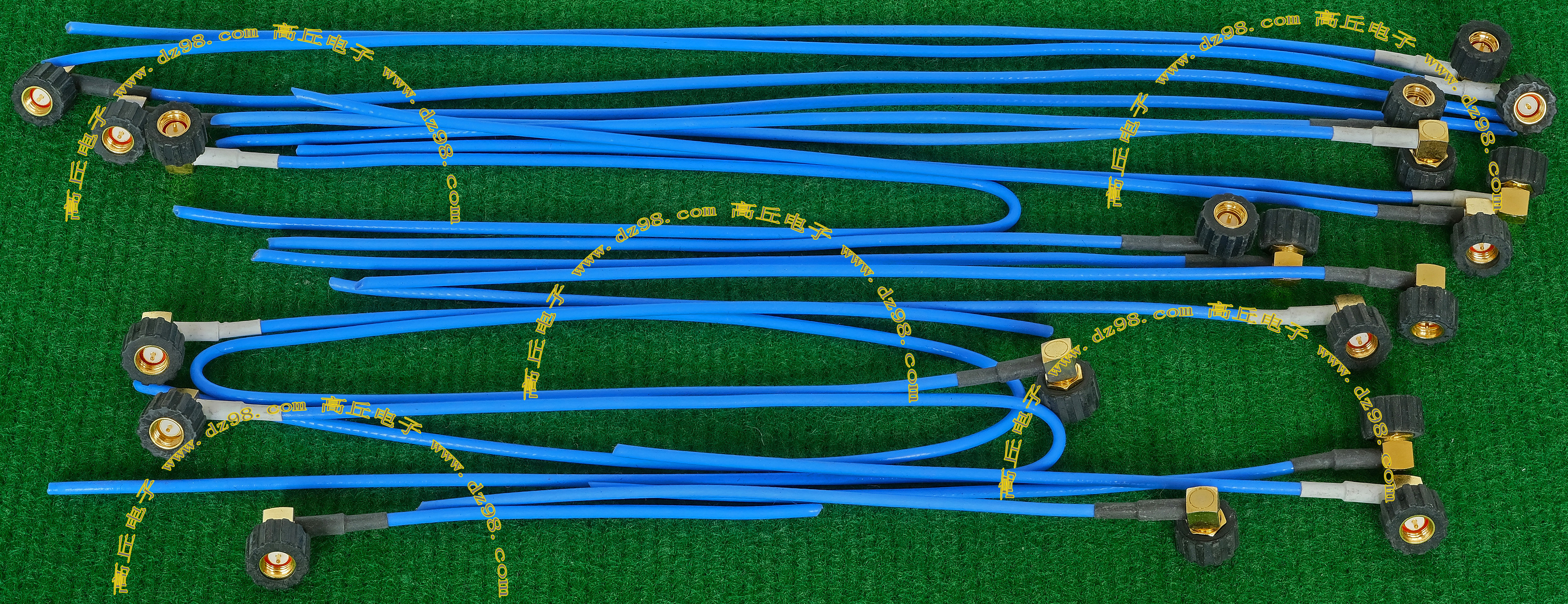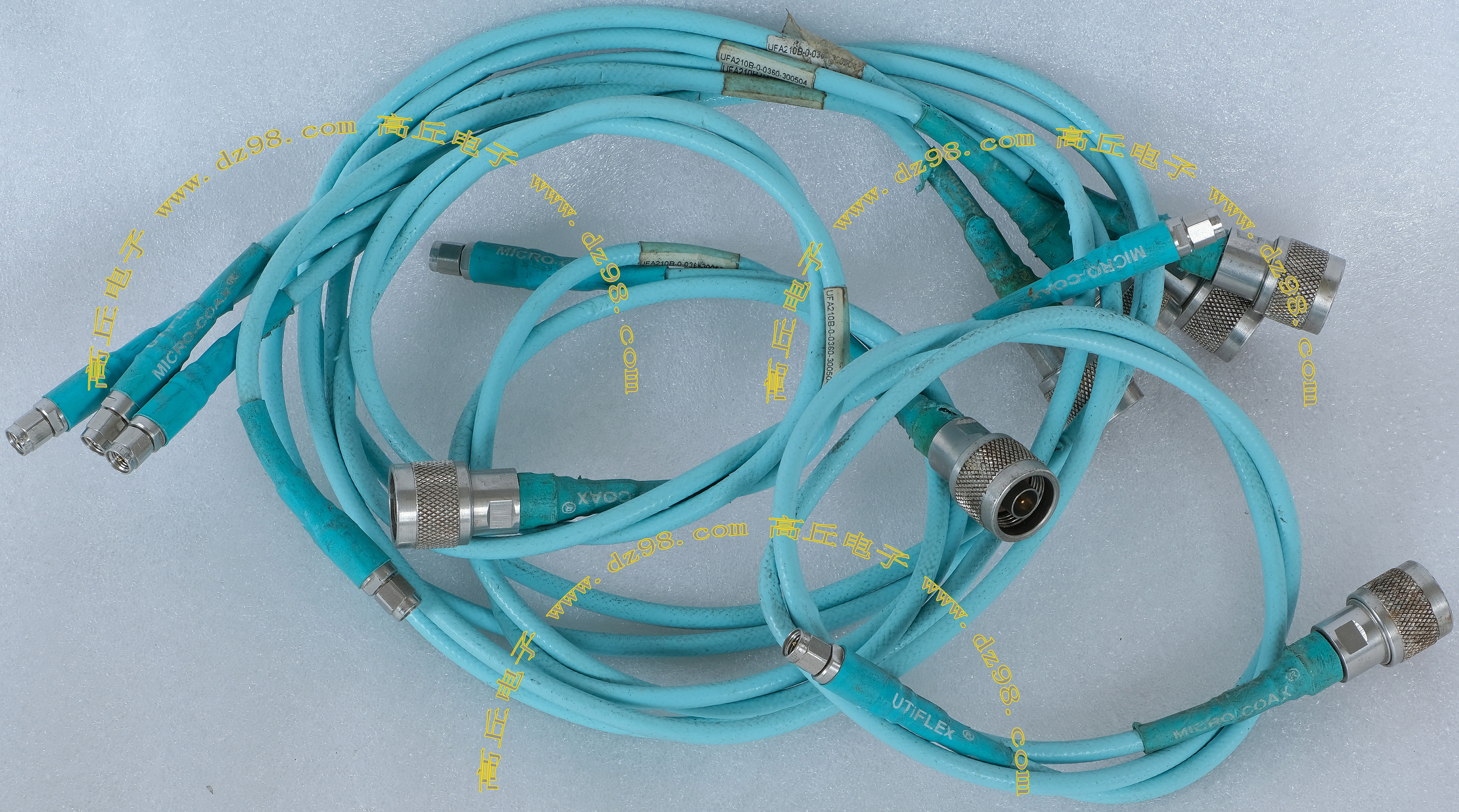 进口拆机,实物参照图片,线长度有10厘米到36厘米多种,一端带有镀黄金高频接头,多层屏蔽线直径约2.75毫米,内部结构看图片。