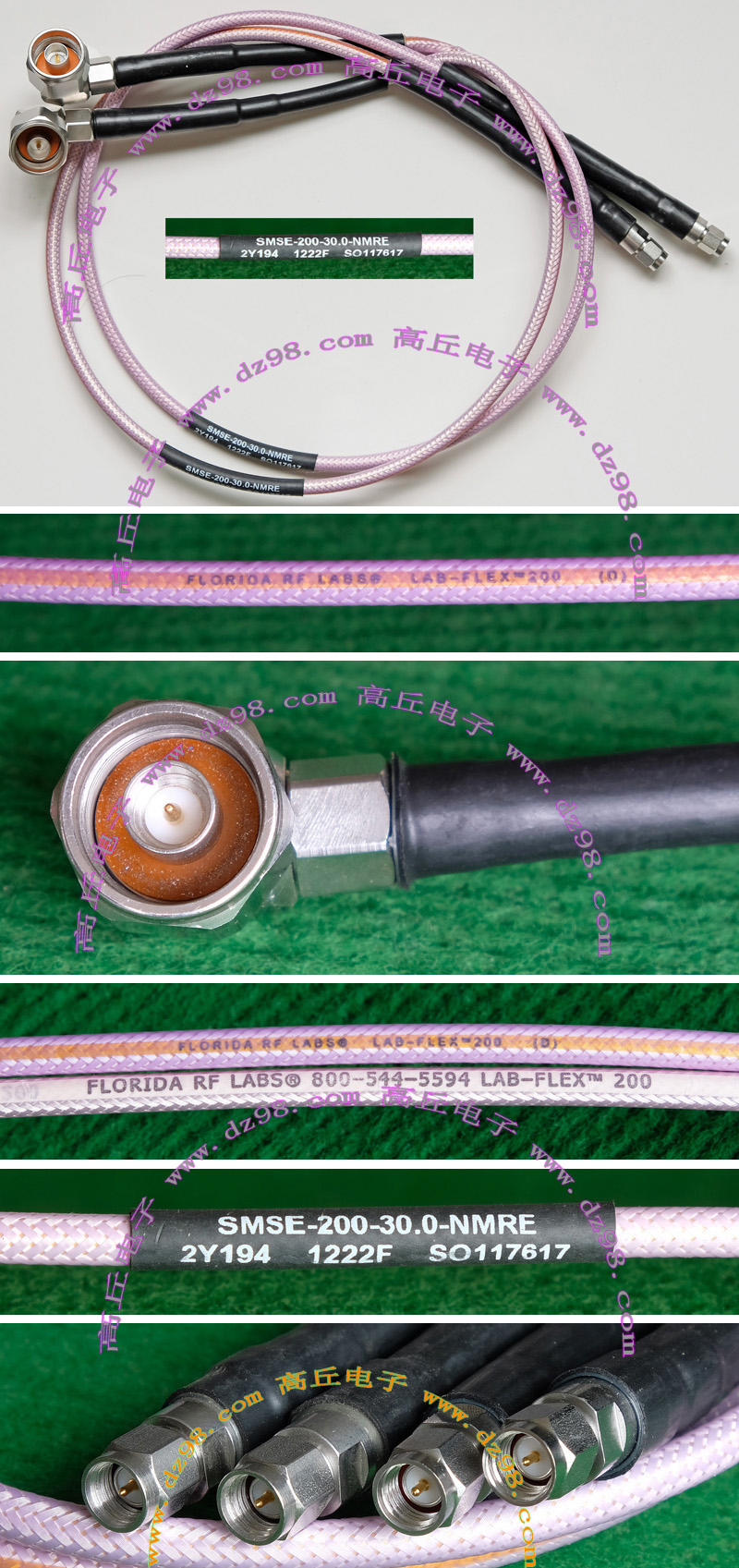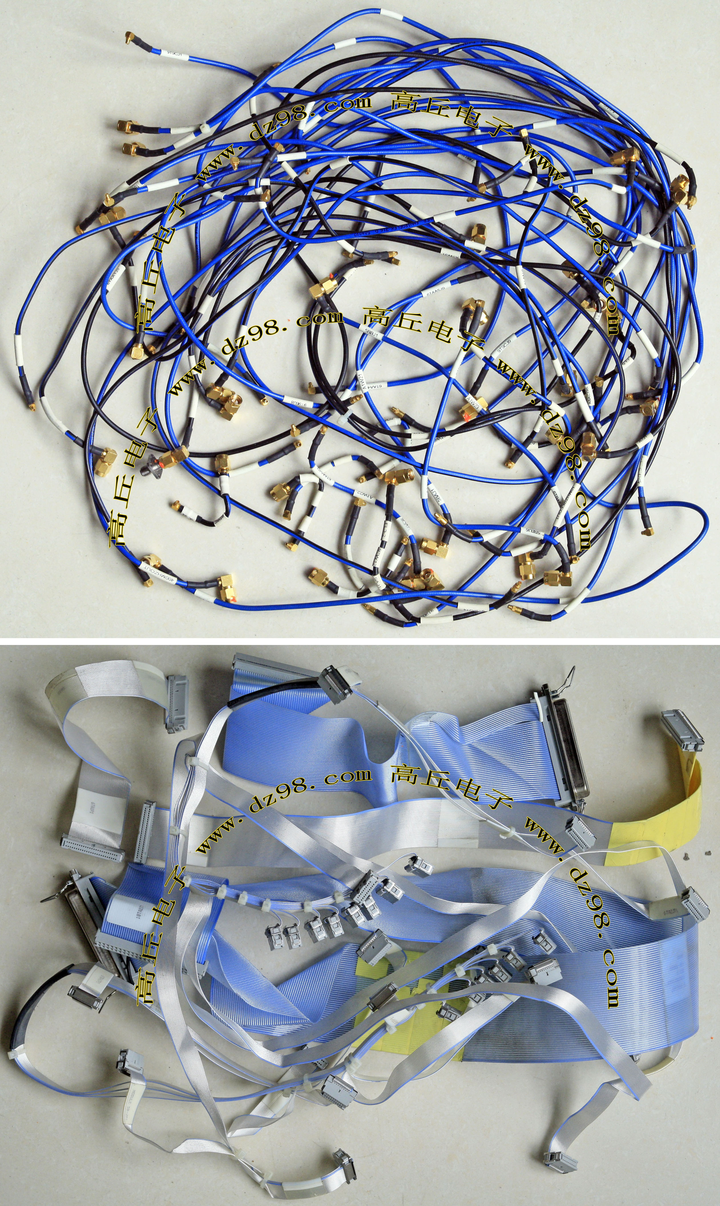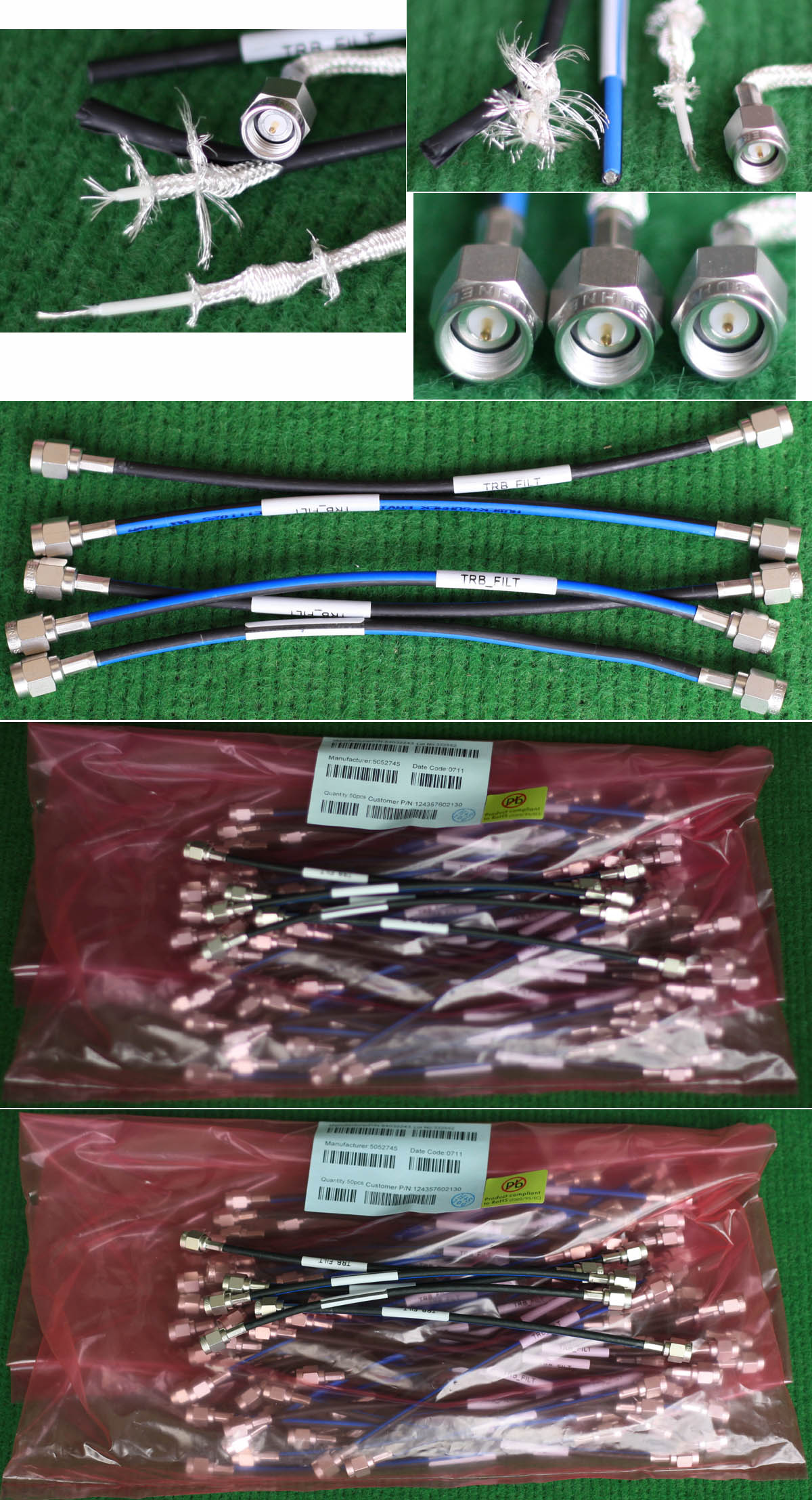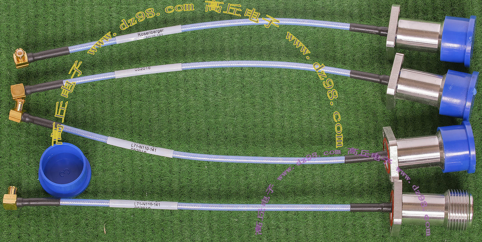 进口拆机,实物参照图片,线长度有10厘米到36厘米多种,一端带有镀黄金高频接头,多层屏蔽线直径约2.75毫米,内部结构看图片。