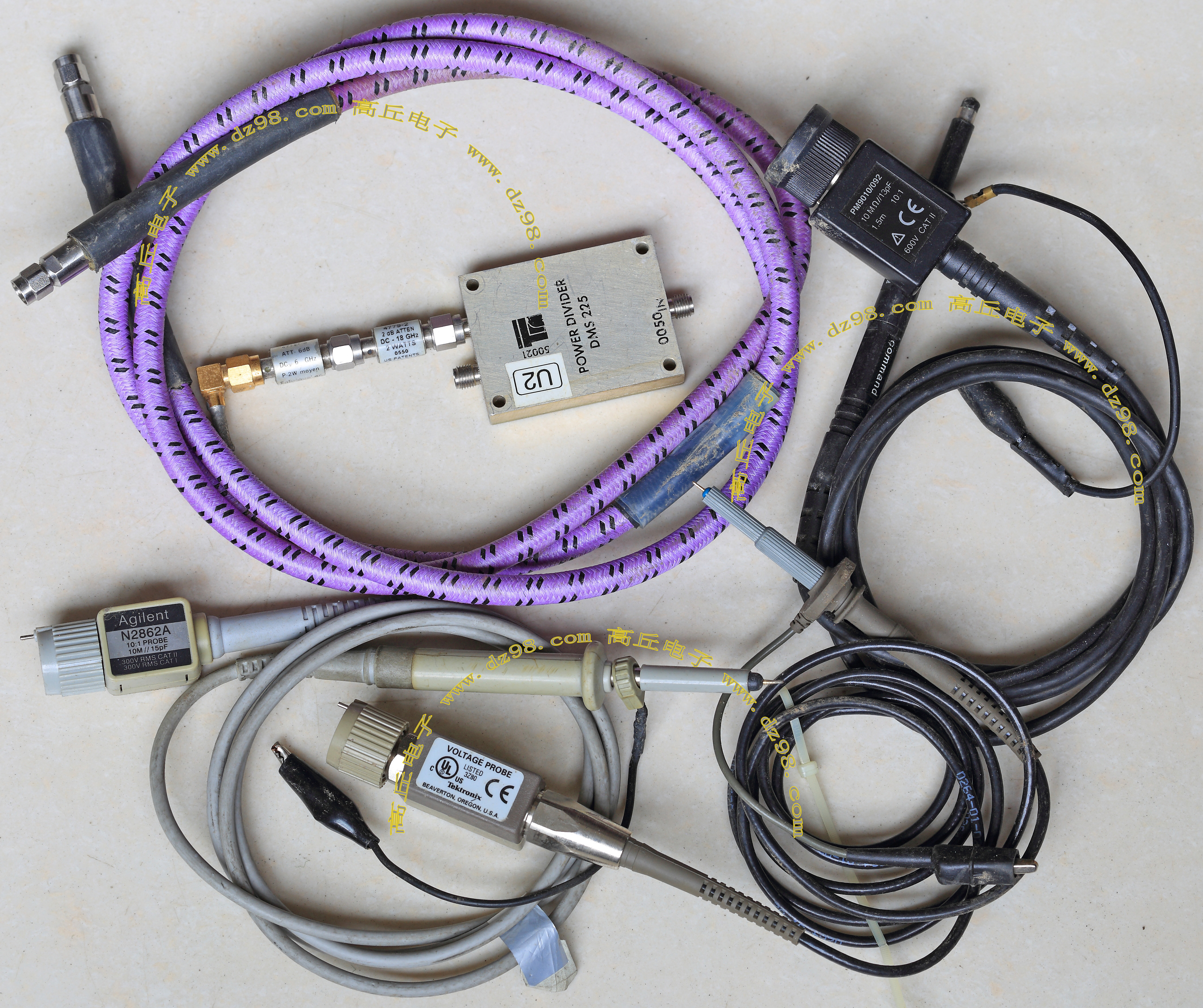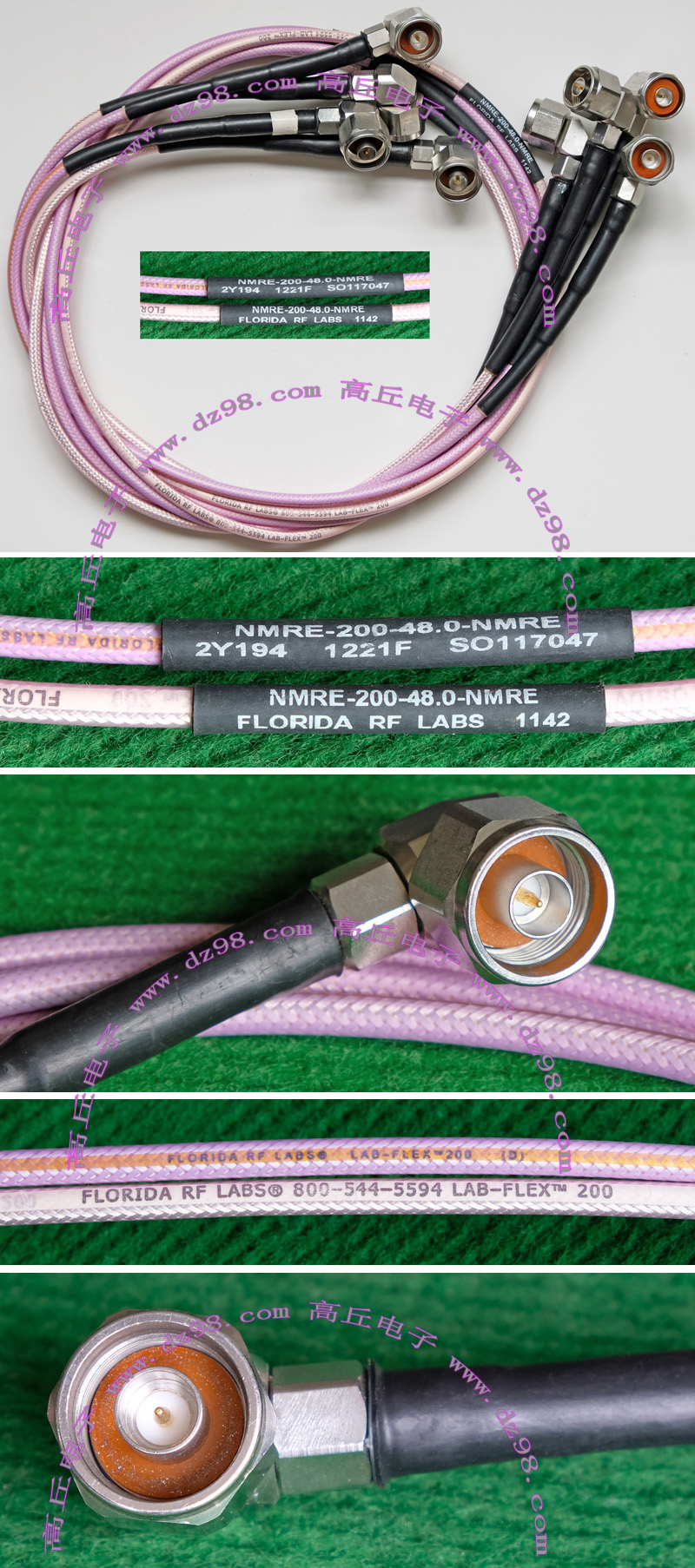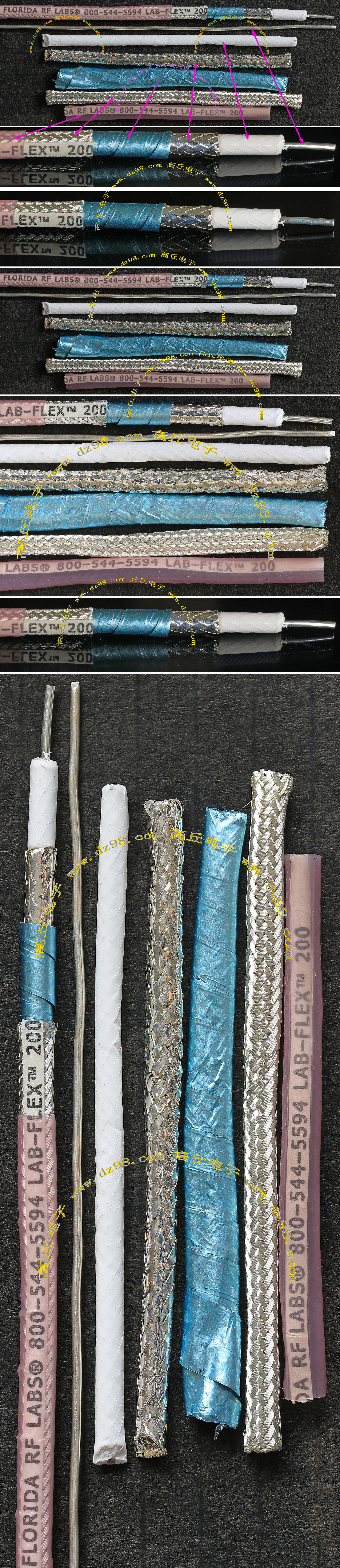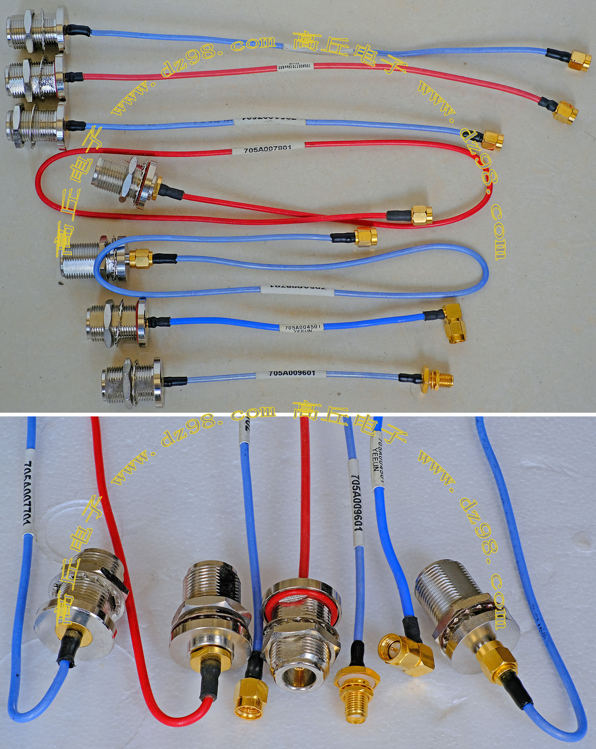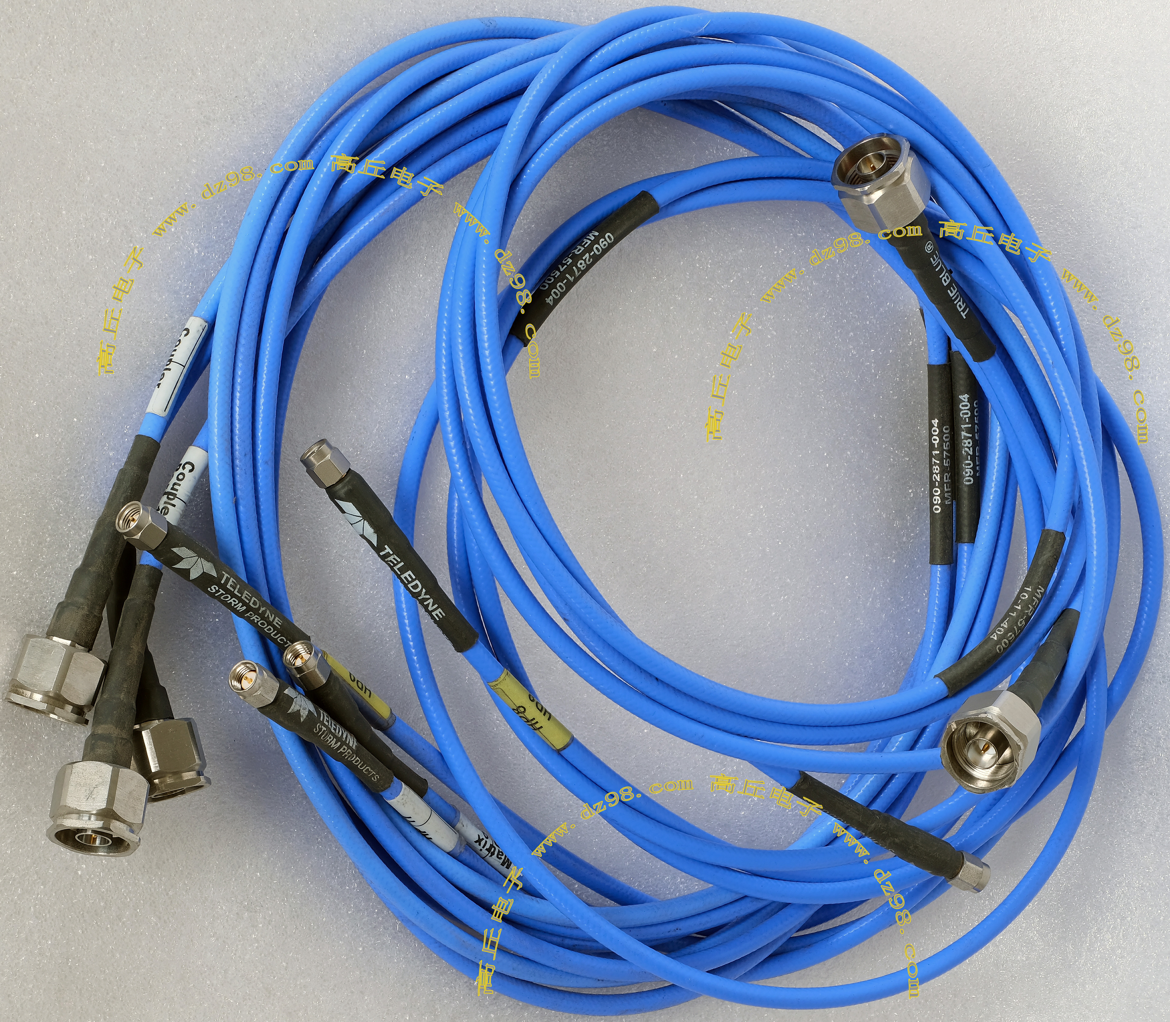 进口拆机,实物参照图片,线长度有10厘米到36厘米多种,一端带有镀黄金高频接头,多层屏蔽线直径约2.75毫米,内部结构看图片。