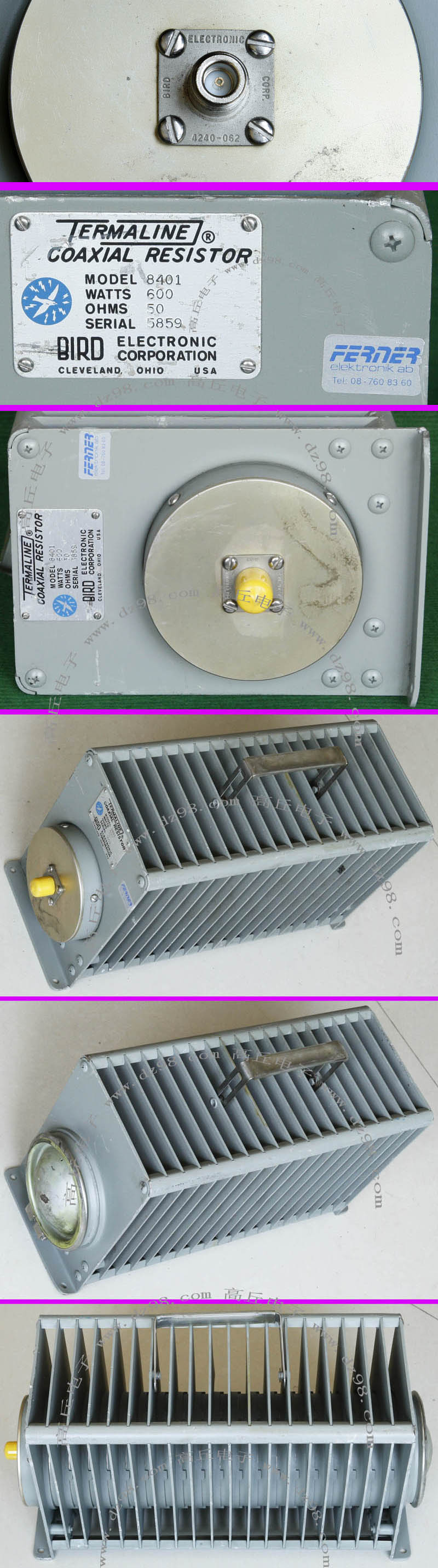 拆机品,外观8.5成新,实物看图片。电阻50欧姆,外形尺寸:131x87x50毫米,重量约770克。