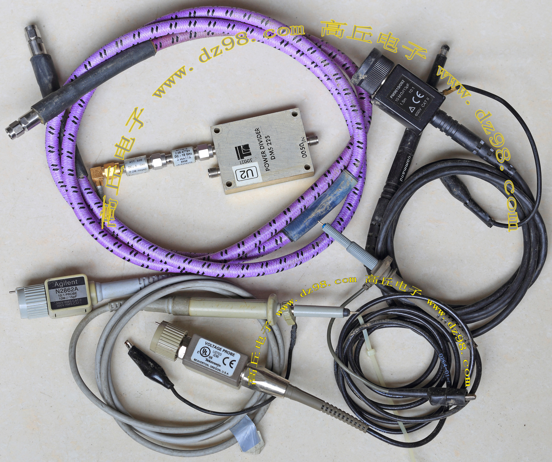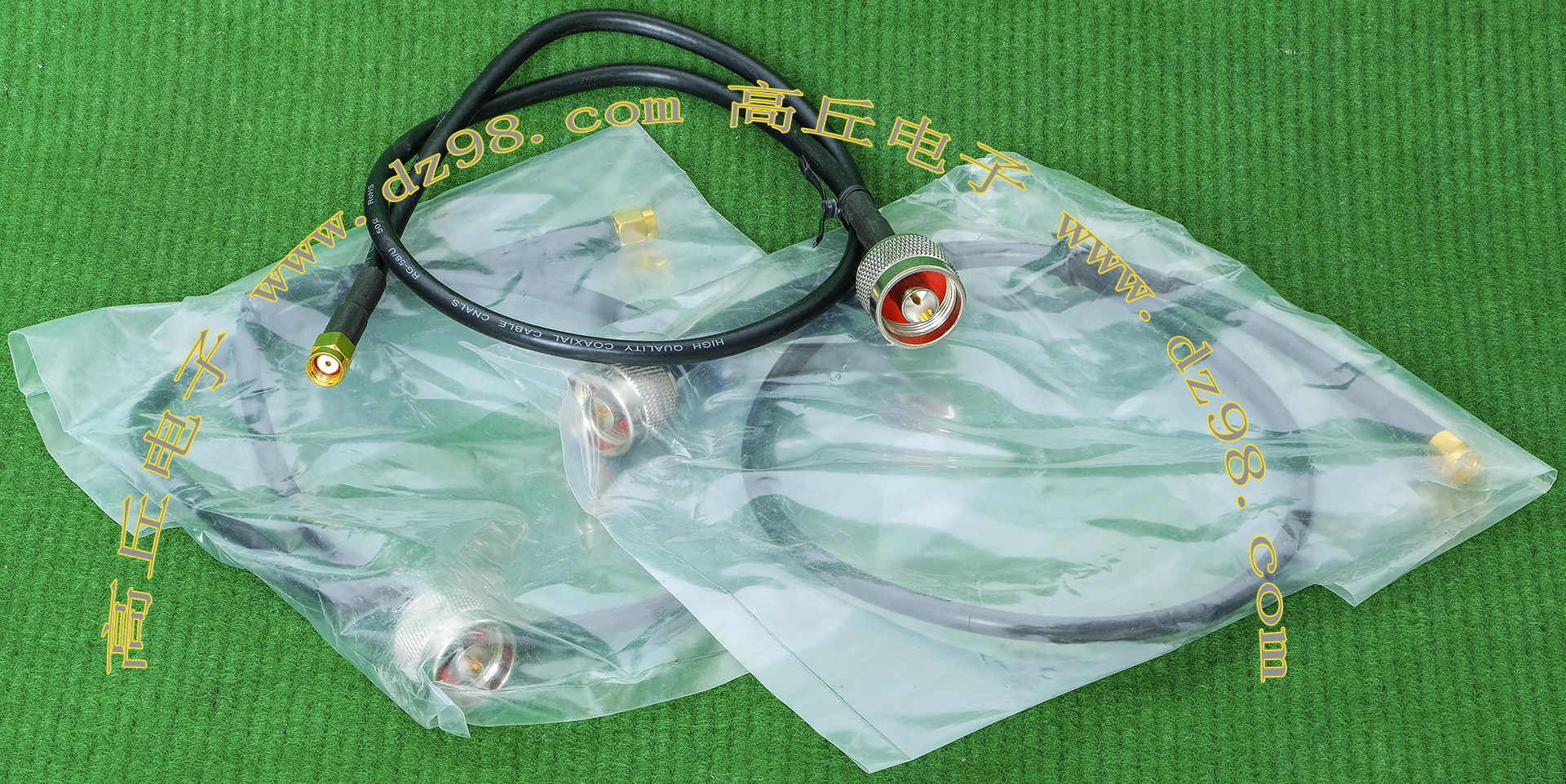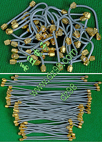 国外电子企业的全新库存品,由两条线直径2.54mm长度80厘米的镀银高频信号线和两个铜接头一个塑料头组成。实物请看放大图片。重量约60克。