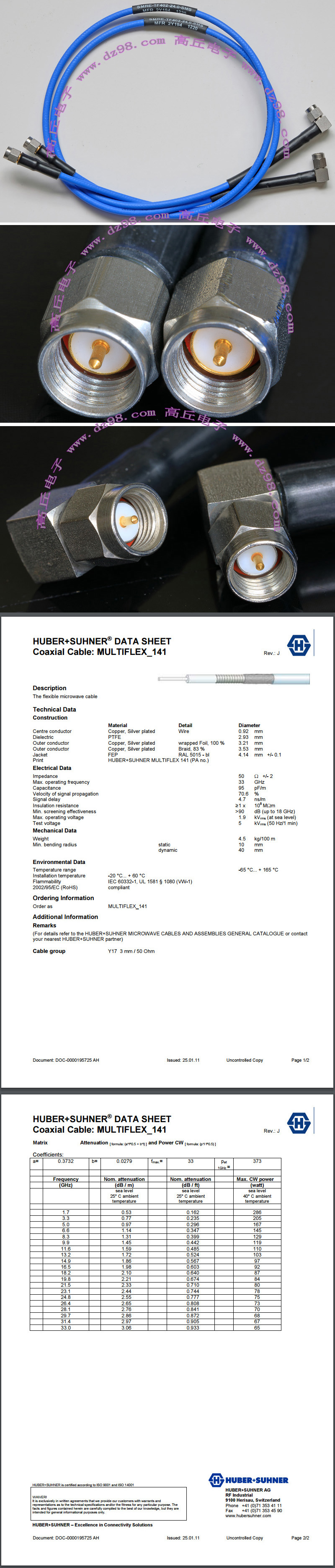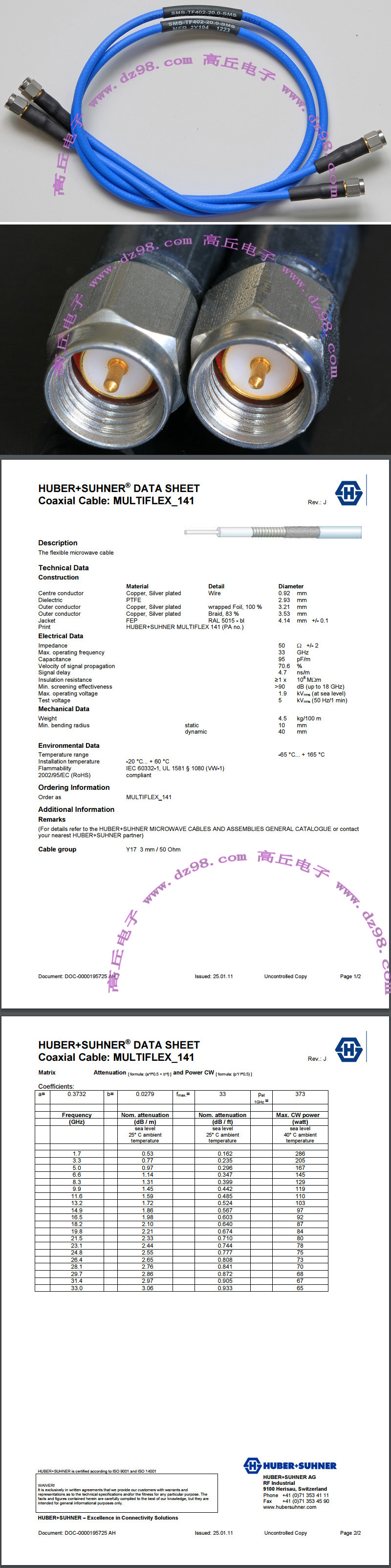 镀金高频接头+高级镀银多层屏蔽线BRB407 |