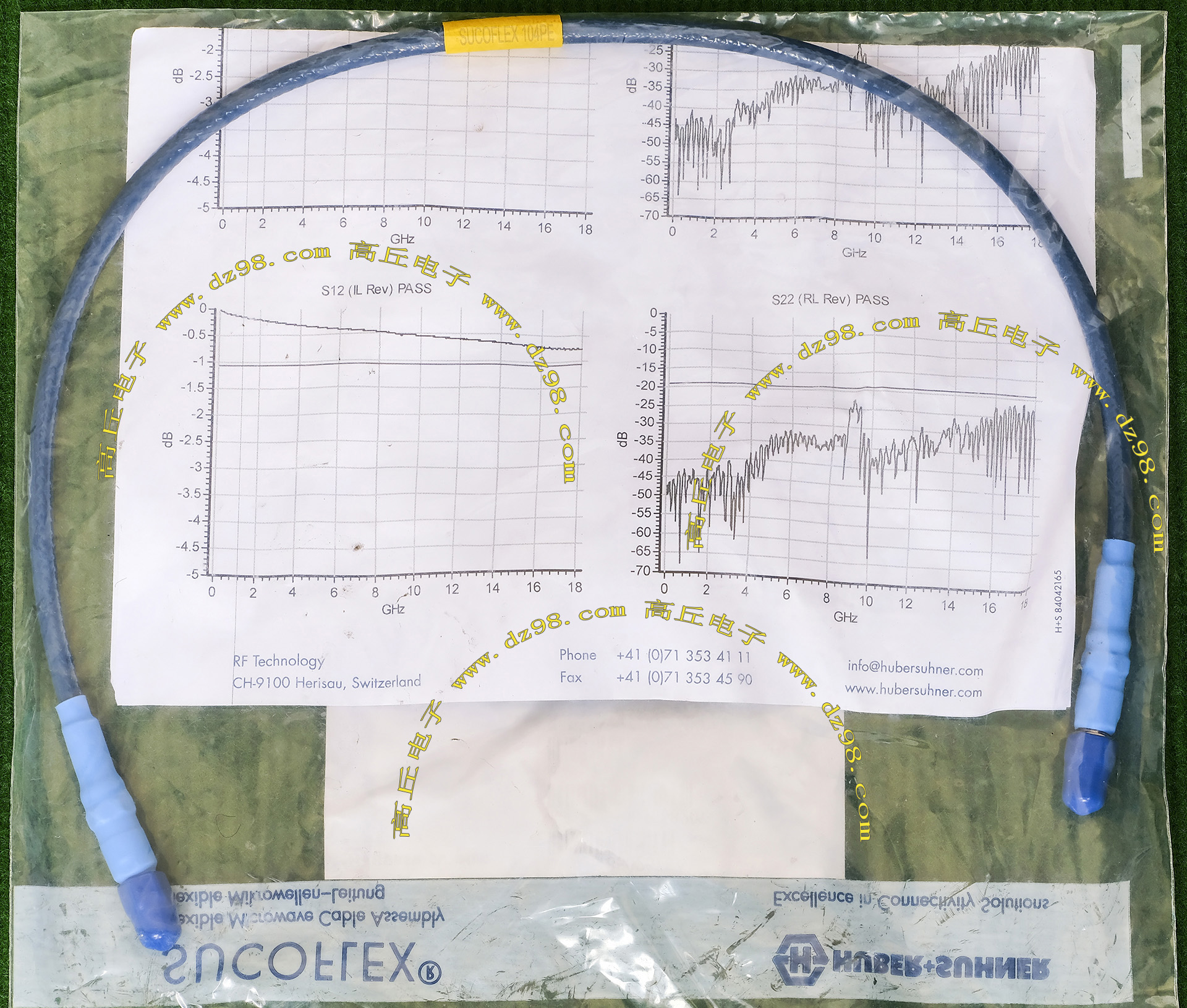 全新备件,厂牌:HUBER+SUHNER,高频屏蔽插头线,插头内芯镀金,东西和图片一样,线