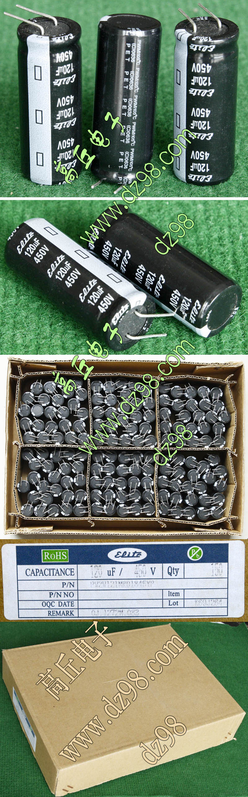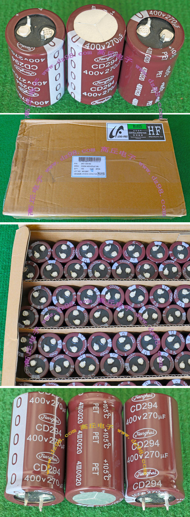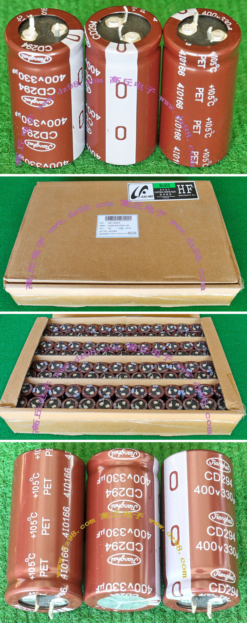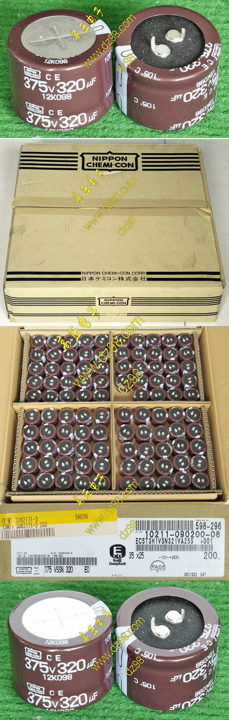 全新原装,每盒包装数量500只,整盒带包装重量约1357克。电容直径10.2毫米,高度20.2毫米。