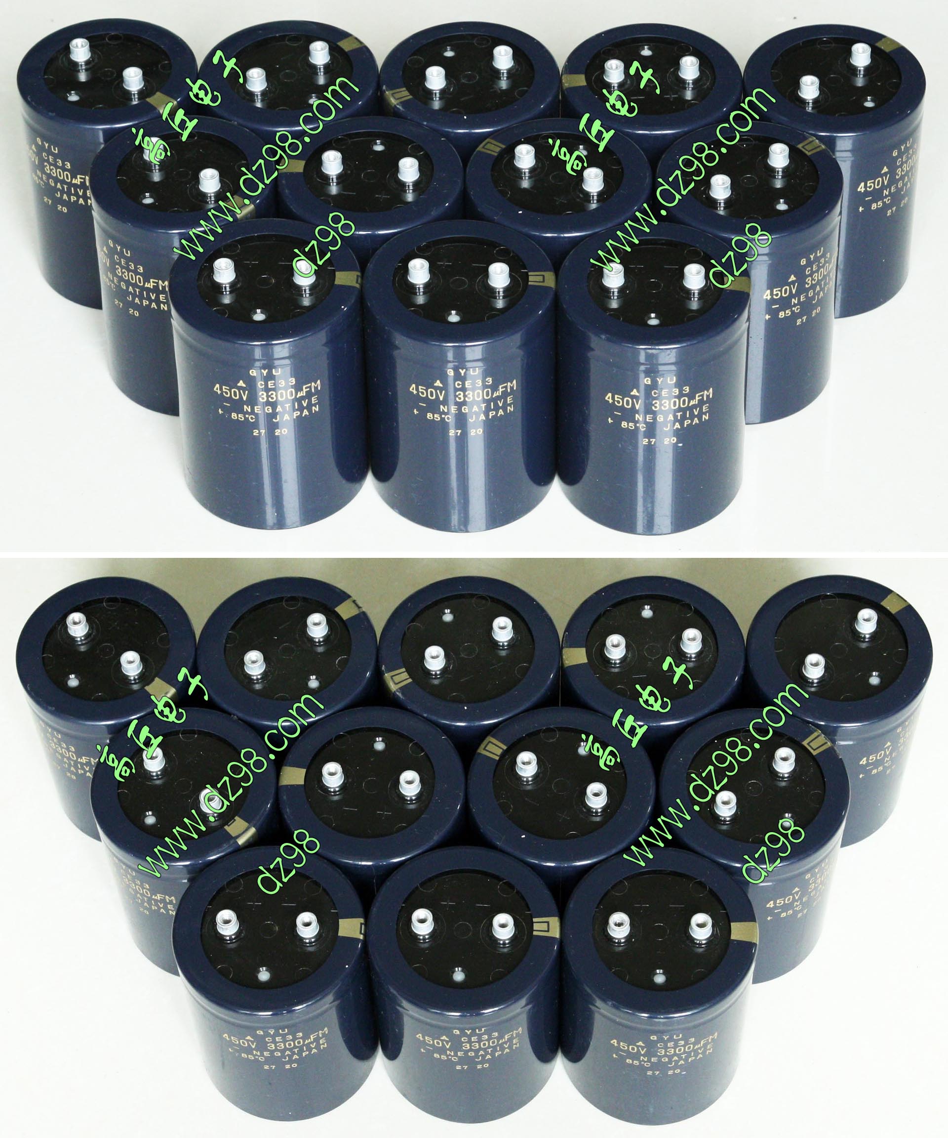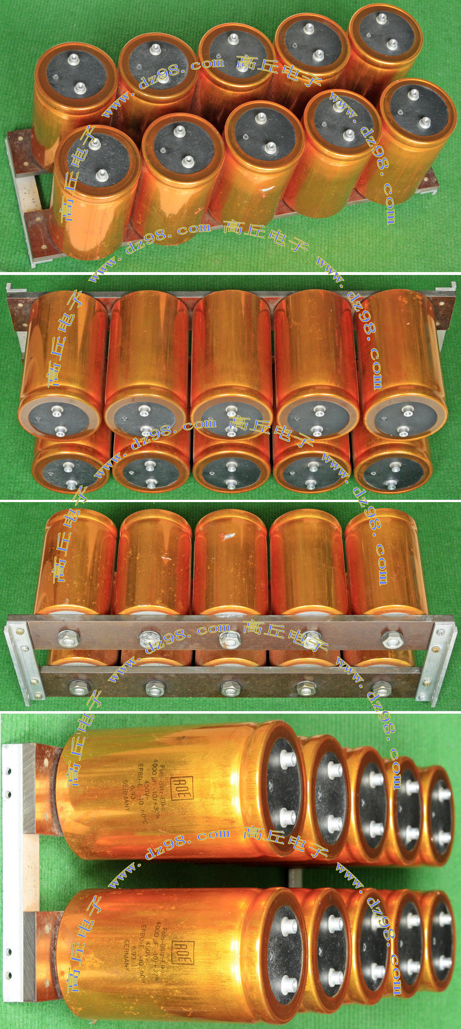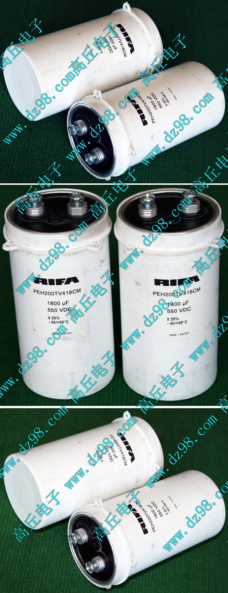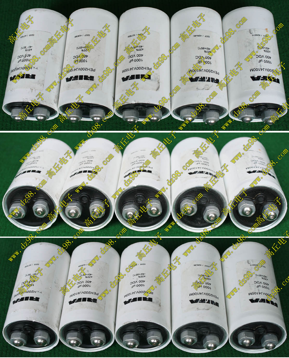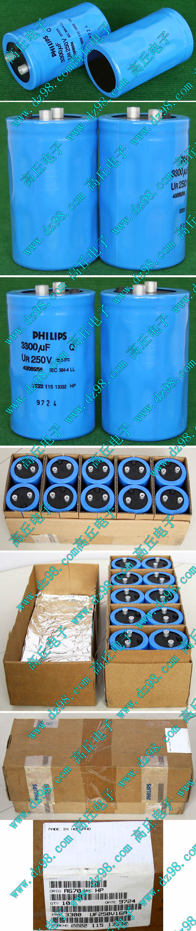 实物请看放大图片,每只电容直径35mm,高41mm。线路板尺寸175mm x 126mm,整体高度45mm。板上无其它元件,是一块由13只电容并联的滤波器板。