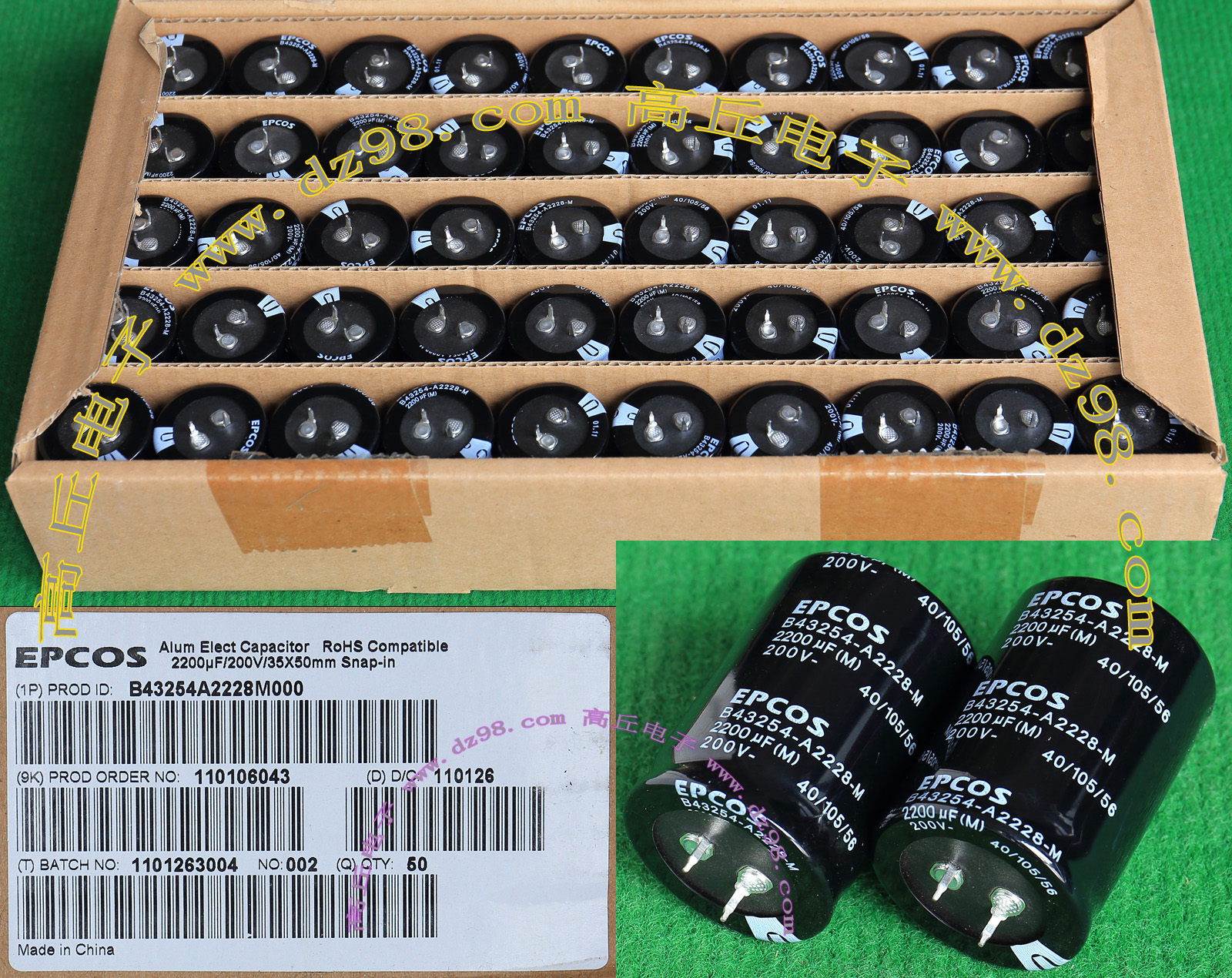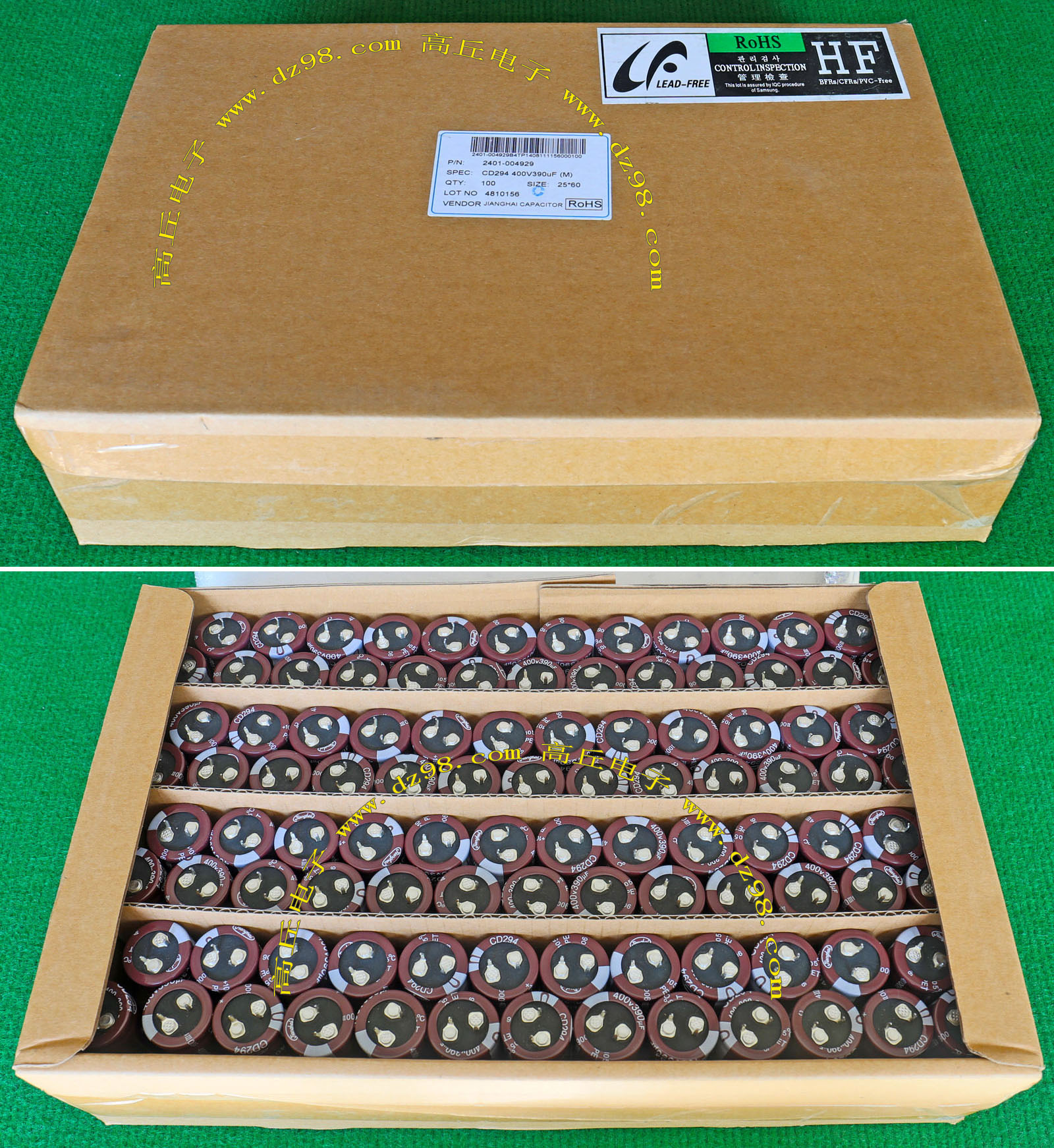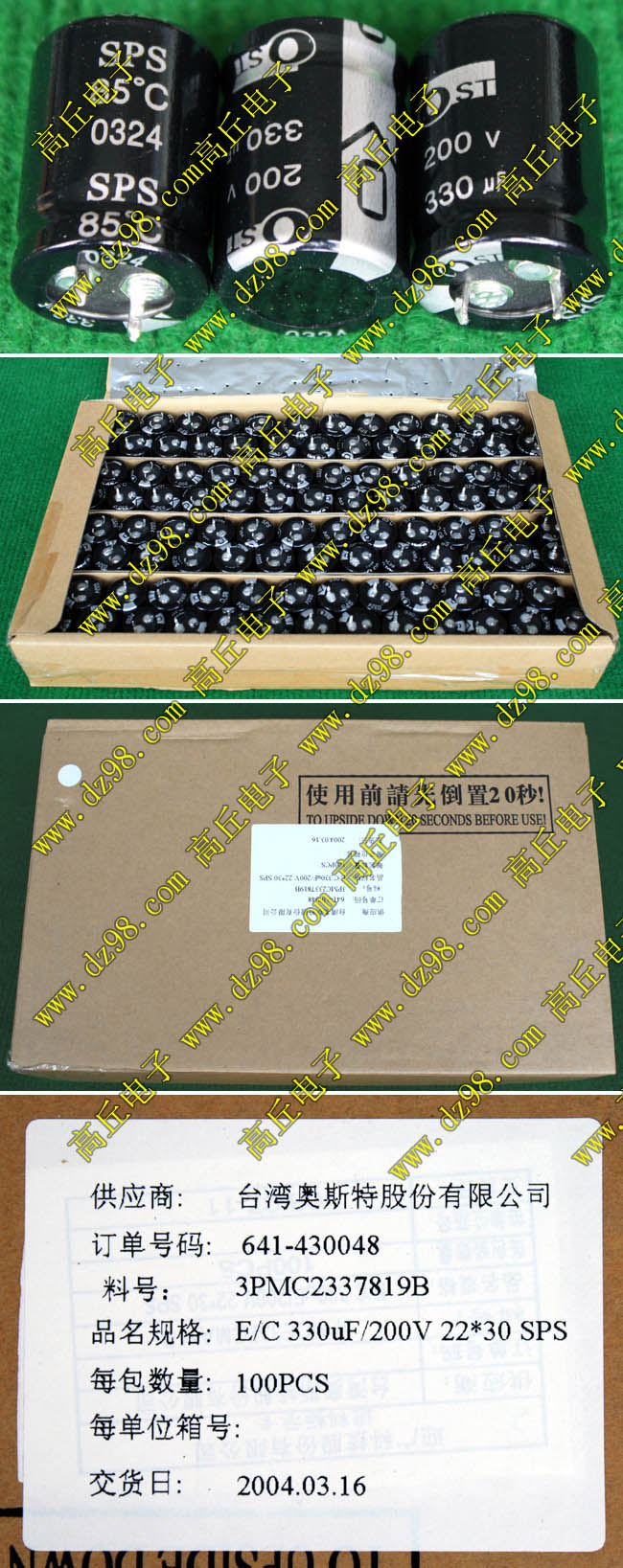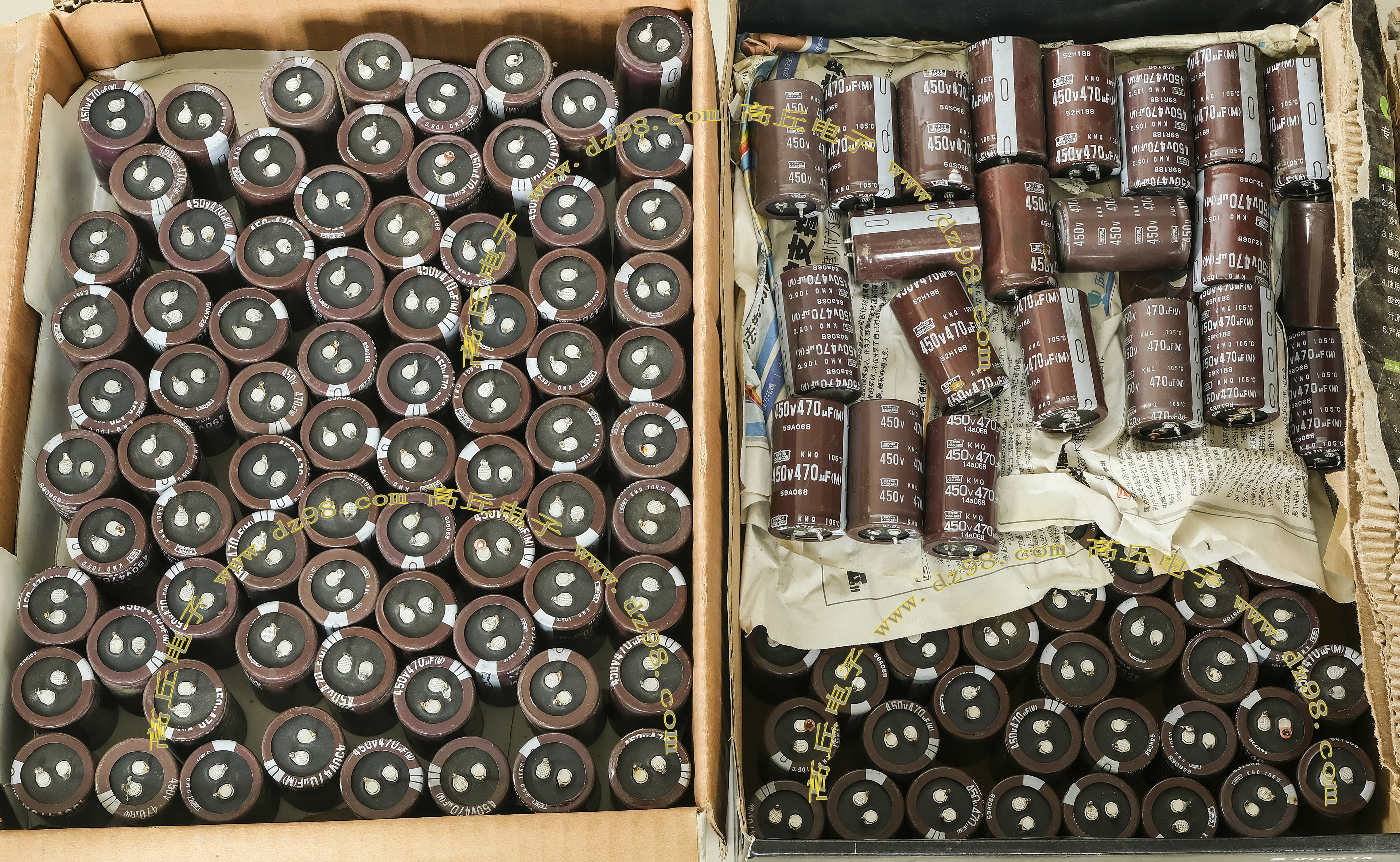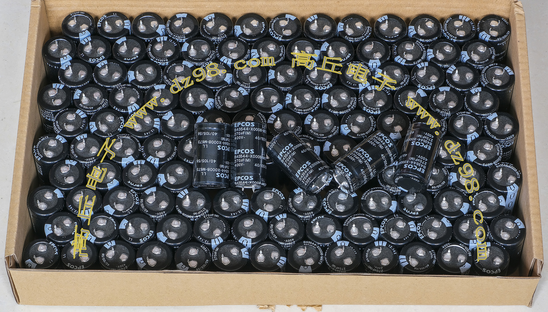全新原装,每盒包装数量80只,整盒带包装重量约4080克。电容直径30.3毫米,高度46.2毫米。