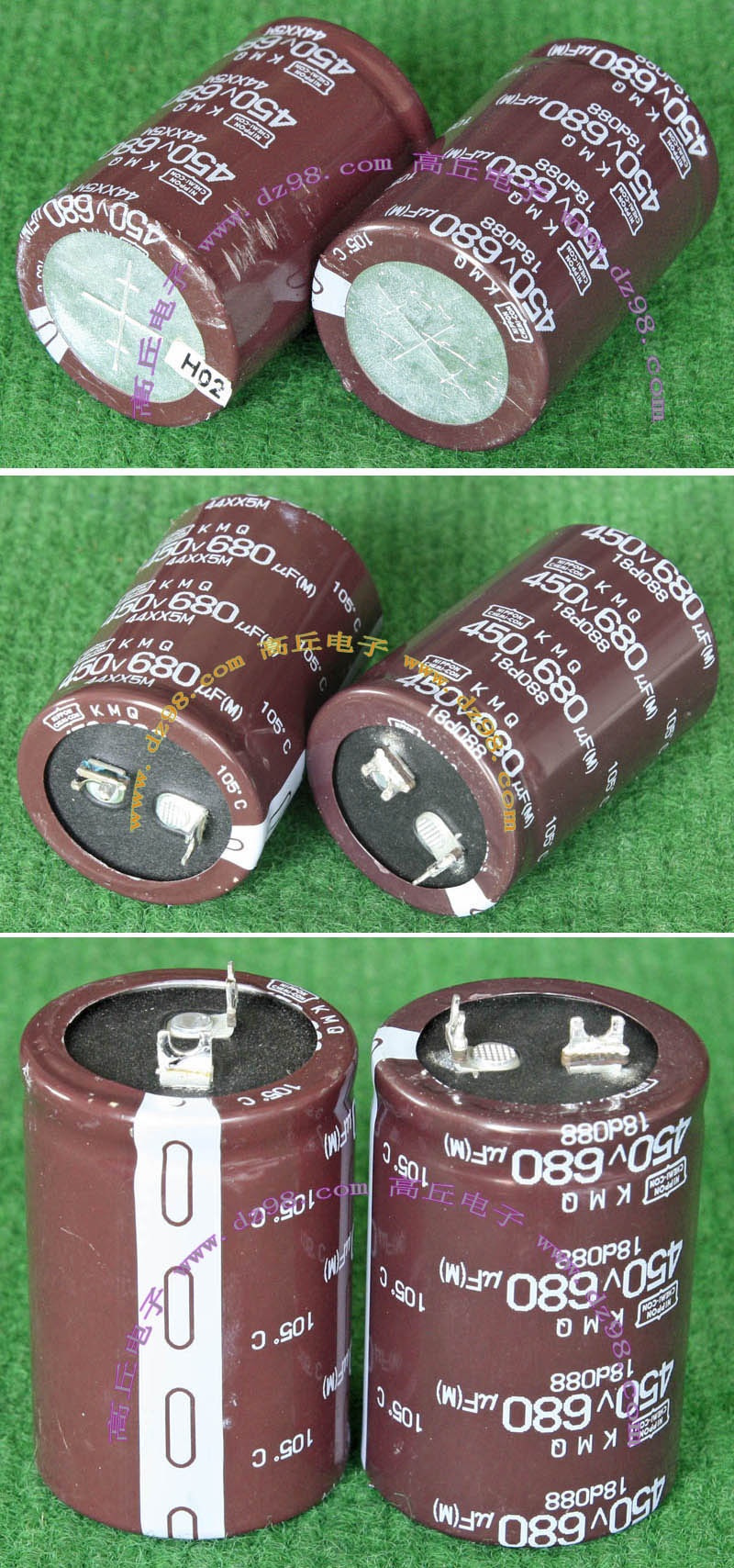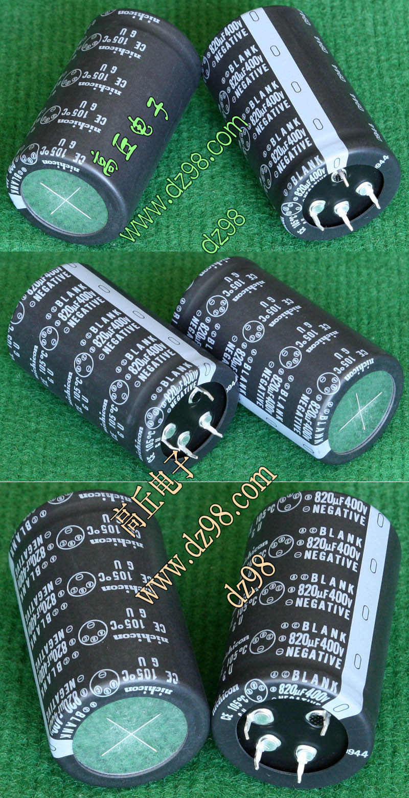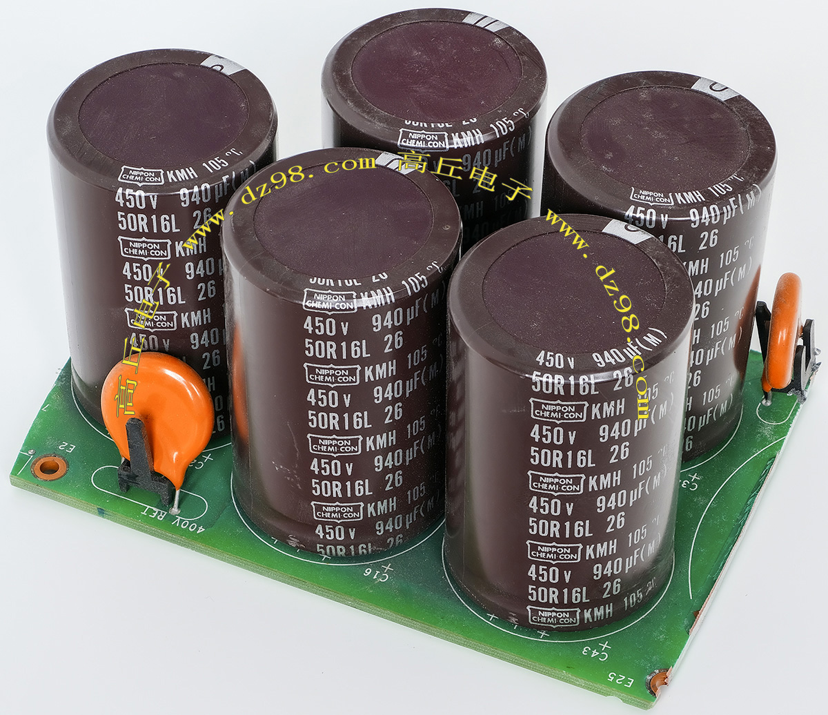 全新电源板切下连5只电容重量约480克,板上装配500V/470uF电容5只,电容直径35.5毫米,高度60毫米。带板发货送板上1只700V/1uF无极电容。