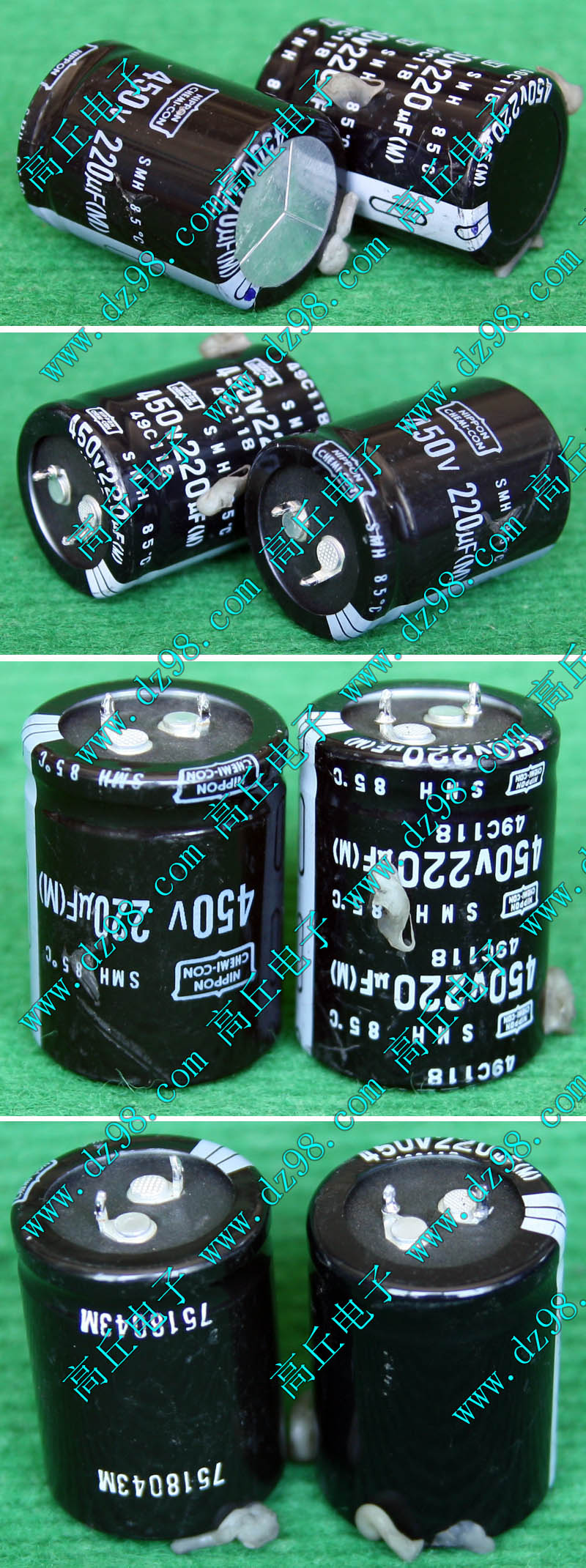 拆机件,电容直径30毫米,高度51毫米,每板4只电容,连板重量约225克。